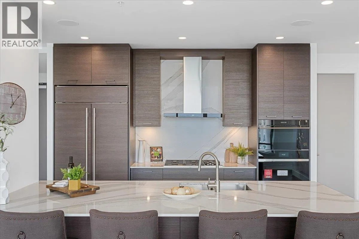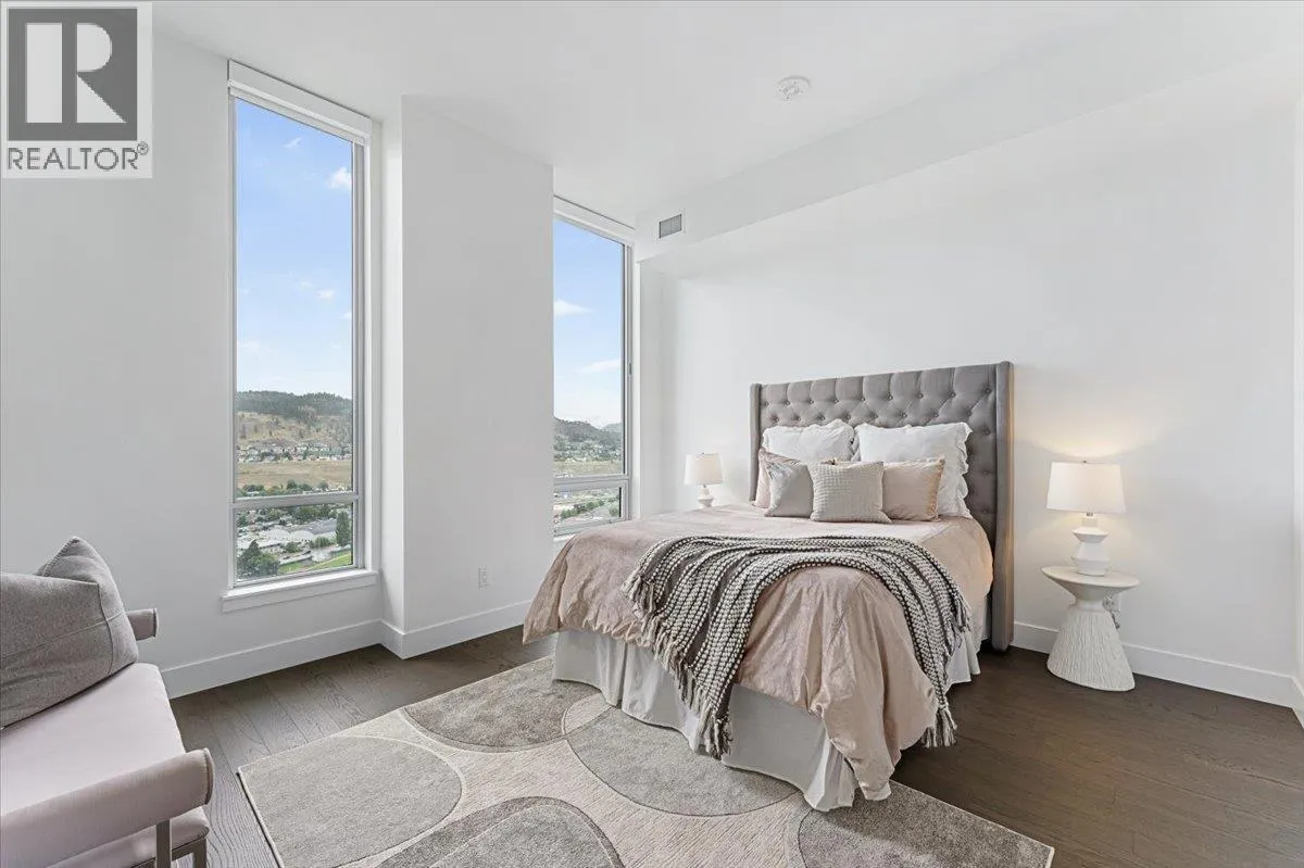 Live in luxury. This over 2600 sq. ft. sub-penthouse is situated within the prestigious ONE Water Street, a premier condo development in the heart of downtown Kelownaâs vibrant waterfront community. From the 28th floor of the West Tower enjoy panoramic vistas of Okanagan Lake and the City of Kelowna. Every turn of this 3 bed and 2.5 bath home is adorned with upscale finishes. The gourmet kitchen is a chefâs haven, offering top-of-the-line appliances including a Sub-Zero refrigerator and dual zoned wine cooler, Wolf cooktop and wall ovens. Step through the sliding glass doors to Indulge in the epitome of indoor-outdoor living on the over 800 sq. ft. wrap-around patio. From here bask in the natural beauty of the Okanagan and watch the sun glimmer on the lake. For added convenience the SMART home package allows for seamless control of audio, blinds and lights. Parking for two cars and a convenient storage locker. Residents of ONE Water Street enjoy exclusive access to The Bench, an unparalleled amenity space. Immerse yourself in the finest offerings, including two pools, a hot tub, an outdoor lounge with fire pits, a well-equipped gym with a yoga/pilates studio, lounge area, a business center, a pickleball court, a pet-friendly park, and guest suites for visiting friends and family. This is your opportunity to embrace a sophisticated and rewarding lifestyle in one of Kelowna's most coveted communities. (id:27476)