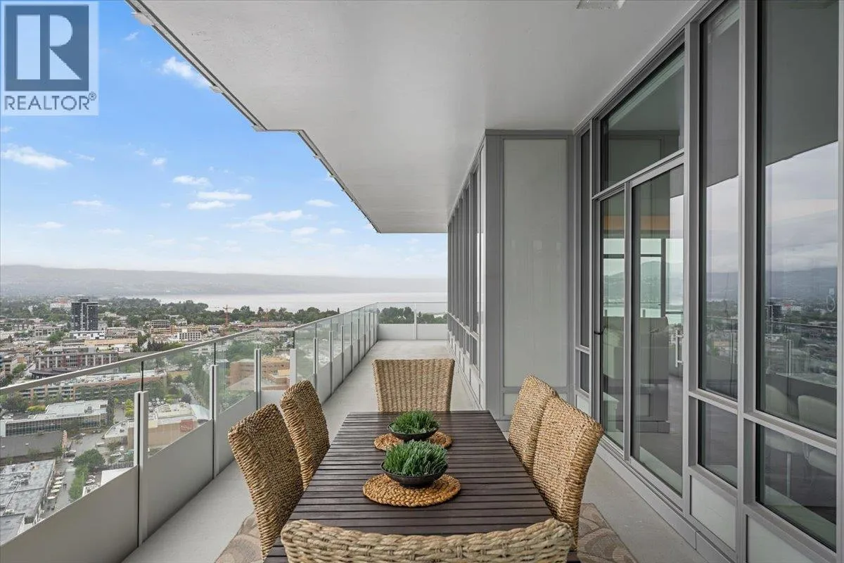 Live in luxury. This over 2600+ sq. ft. sub-penthouse is situated within the prestigious ONE Water Street, a premier condo development in the heart of downtown Kelownaâs vibrant waterfront community. From the 26th floor of the West Tower enjoy panoramic vistas of Okanagan Lake and the City of Kelowna. Every turn of this 3 bed and 2.5 bath home is adorned with upscale finishes. The gourmet kitchen is a chefâs haven, offering top-of-the-line appliances including a Sub-Zero refrigerator and dual zoned wine cooler, Wolf cooktop and wall ovens. Step through the sliding glass doors to Indulge in the epitome of indoor-outdoor living on the over 800+ sq. ft. wrap-around patio. (id:27476)