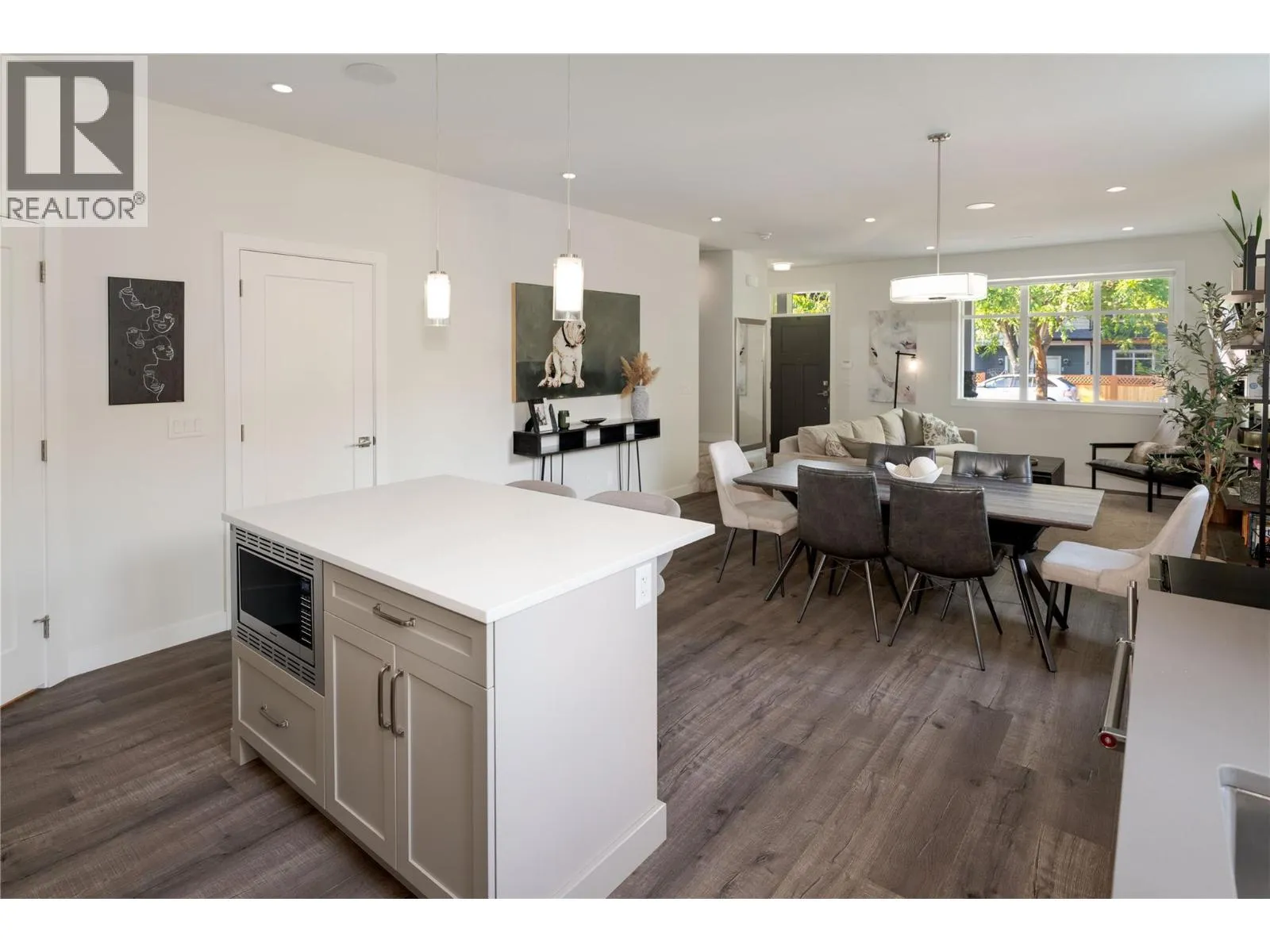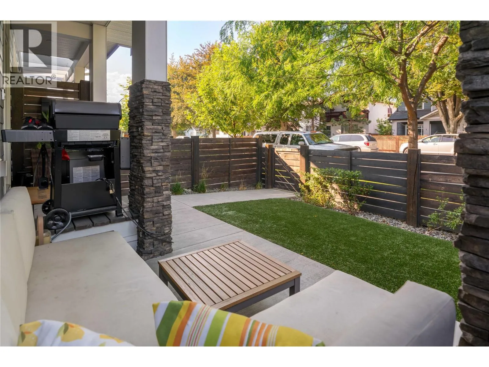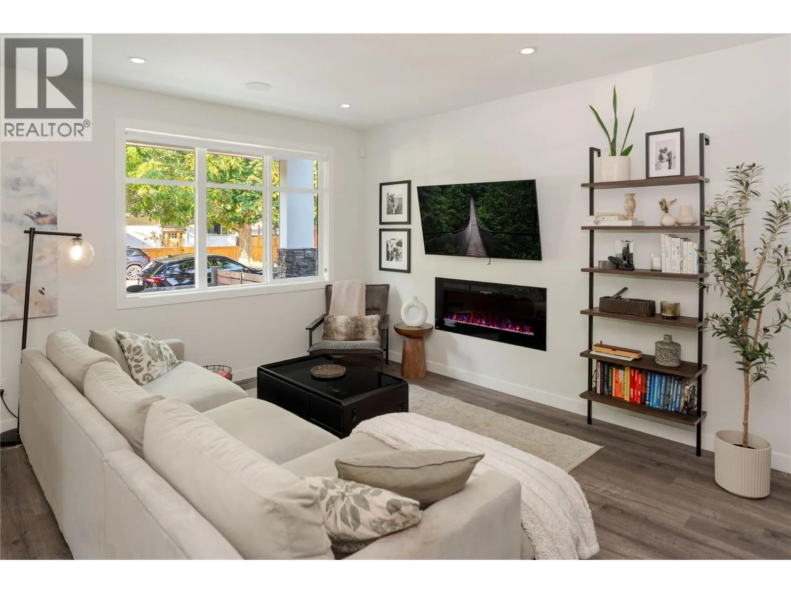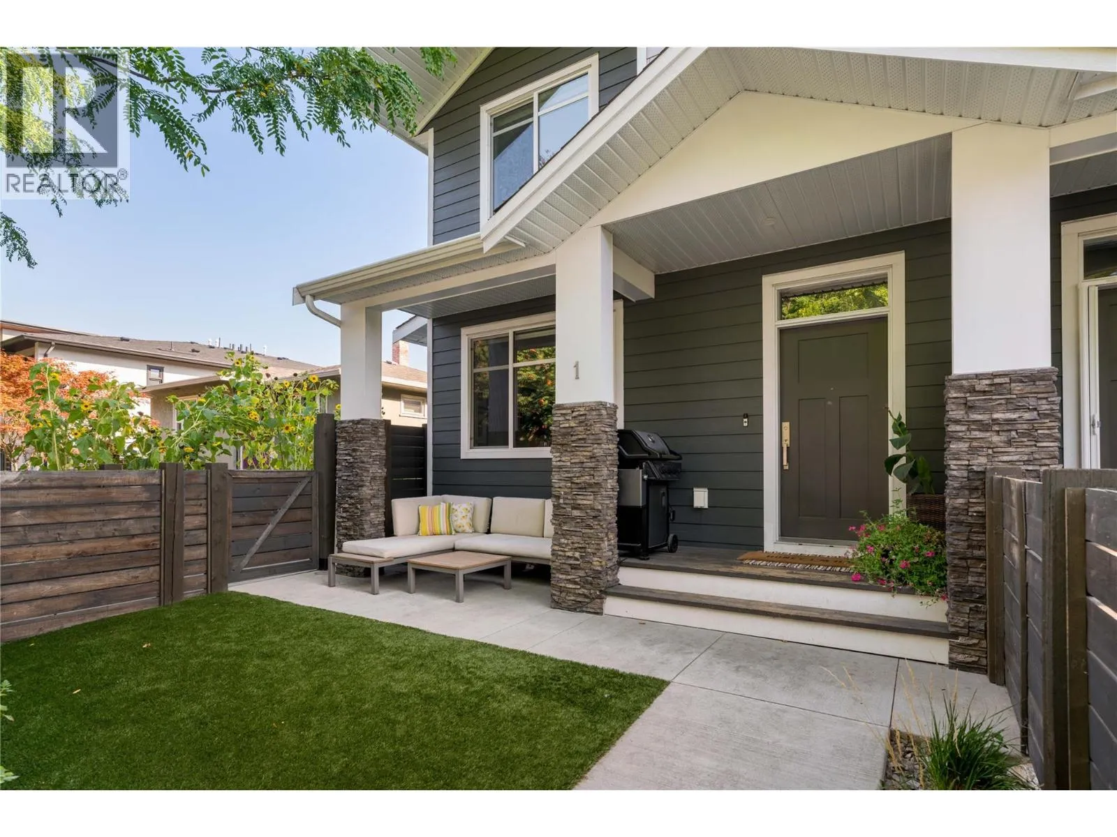 Like new and lovingly maintained by the original owners, this three-bedroom, three-bathroom townhome is the perfect blend of modern style and everyday practicality. Situated in an incredible downtown location, the home offers unbeatable walkability to coffee shops, dining, parks, and all the essentials of city living. Inside, the open-concept main floor is bright and functional with wide-plank flooring, a modern fireplace, and large windows that fill the space with natural light. The kitchen is thoughtfully designed with timeless white cabinetry, quartz countertops, stainless steel appliances, and a beverage centreâmaking both daily living and entertaining effortless. Upstairs, the primary suite includes a walk-in closet and private ensuite, while two additional bedrooms provide flexibility for family, guests, or a home office. A second full bathroom and convenient upstairs laundry complete this level. A 4 foot crawl space spans the footprint of the home for seasonal storage. With charming curb appeal, a fenced patio, and a detached garage, this home combines low-maintenance living with modern comfort. A fantastic opportunity to own a turn-key property in one of Kelownaâs most walkable and desirable neighbourhoods. (id:27476)