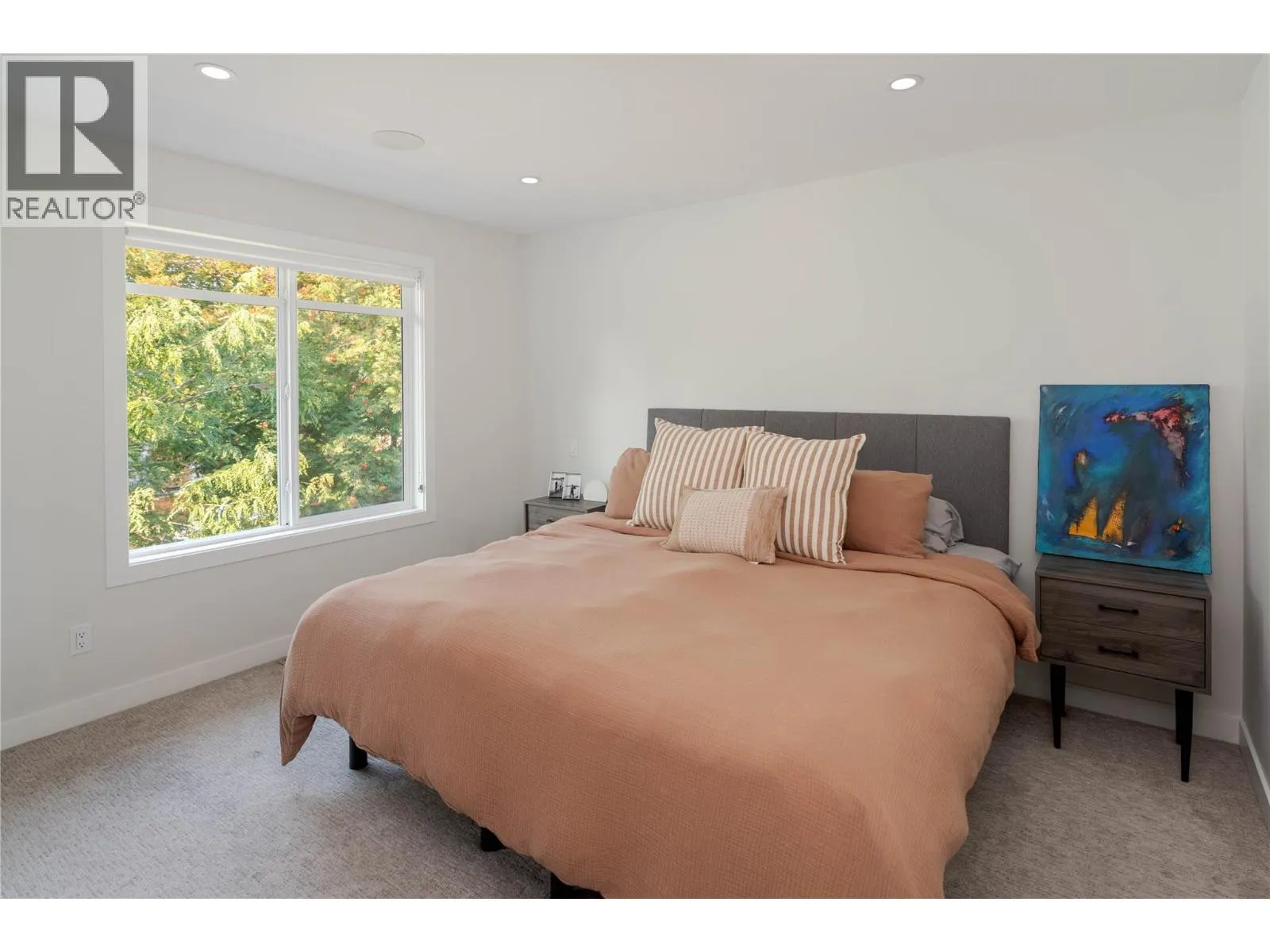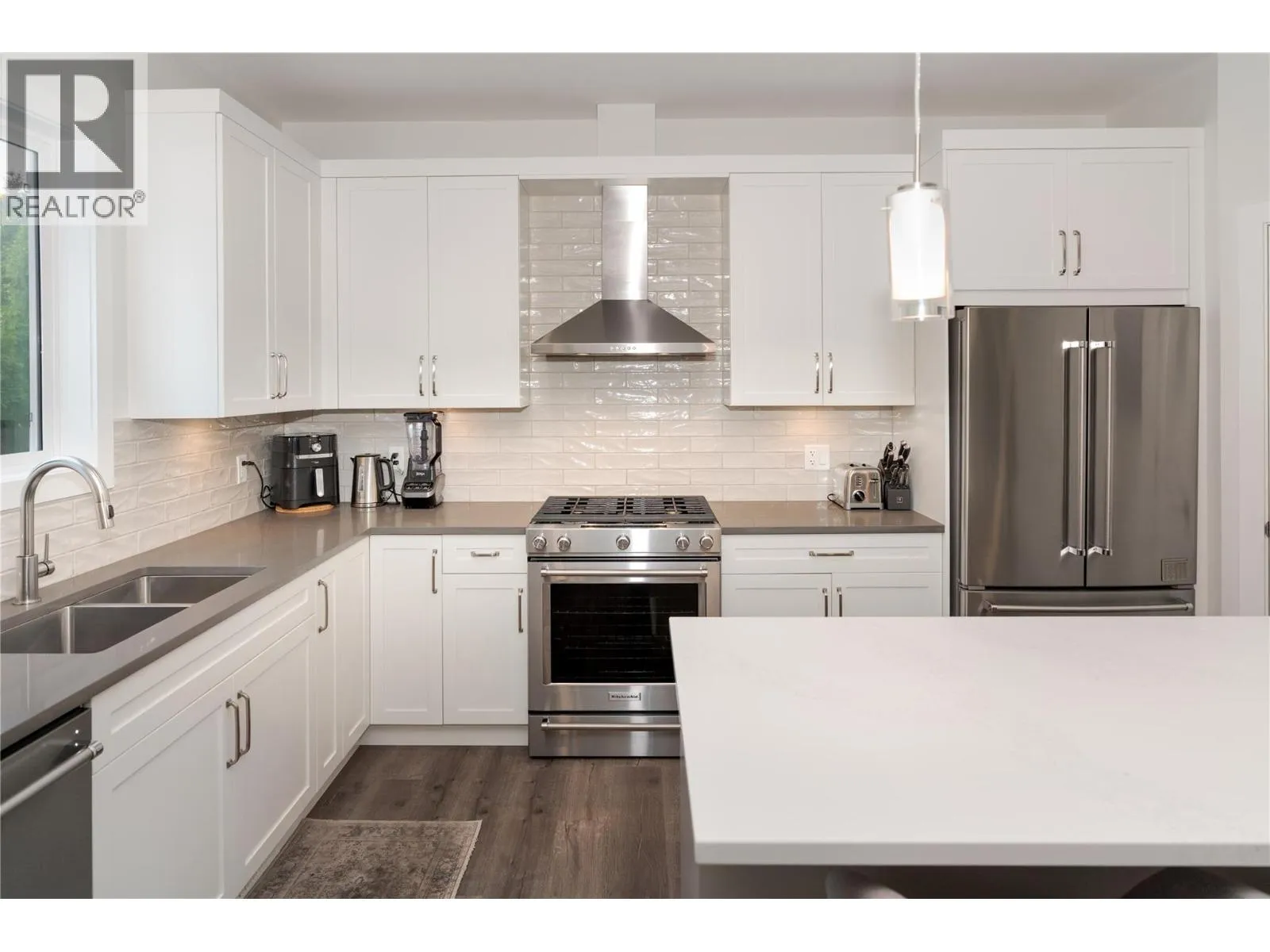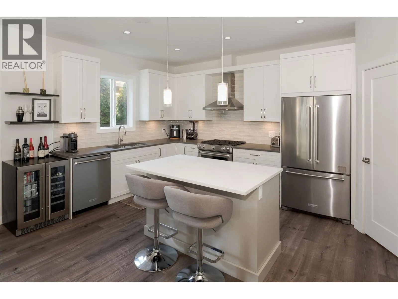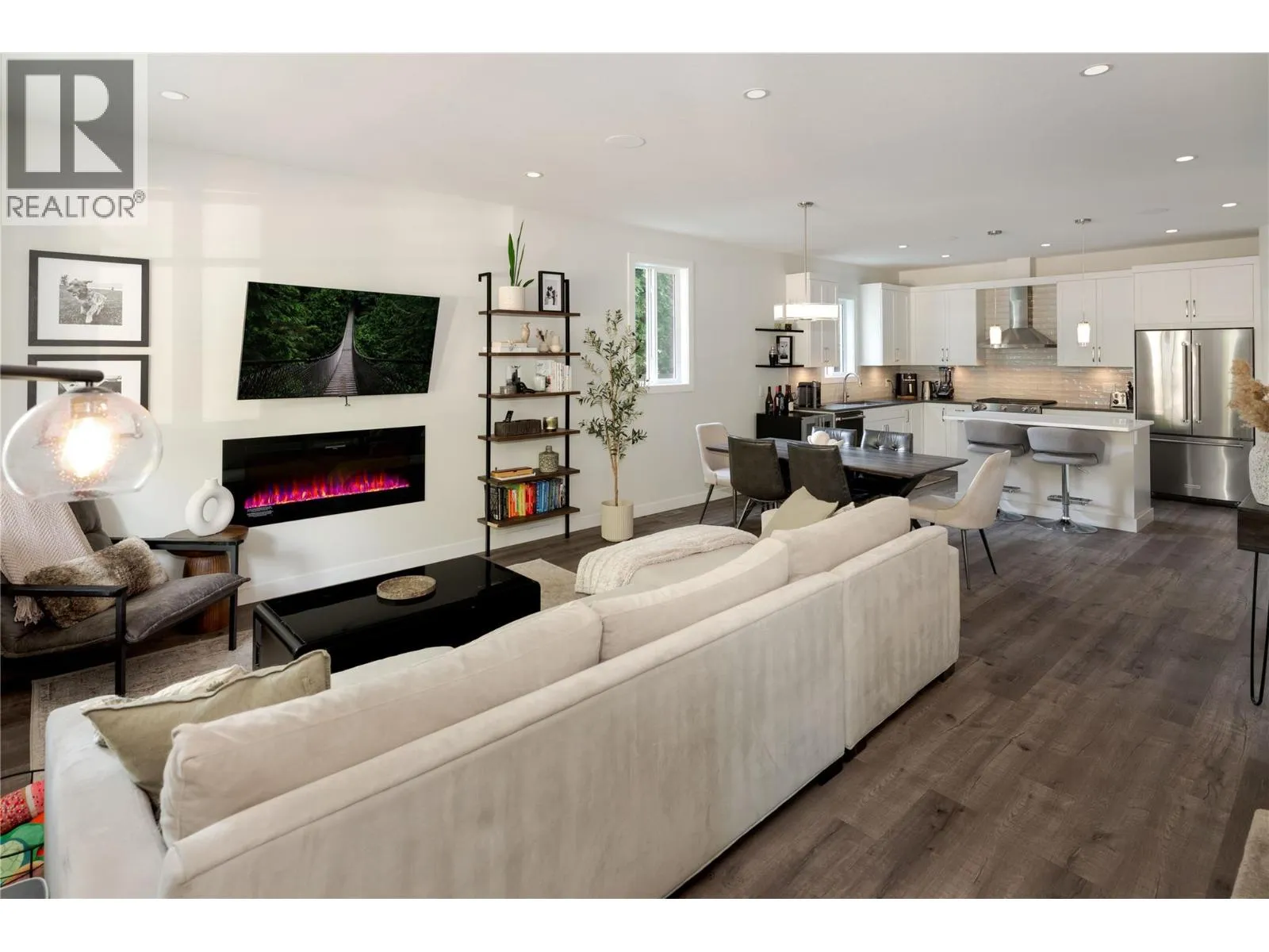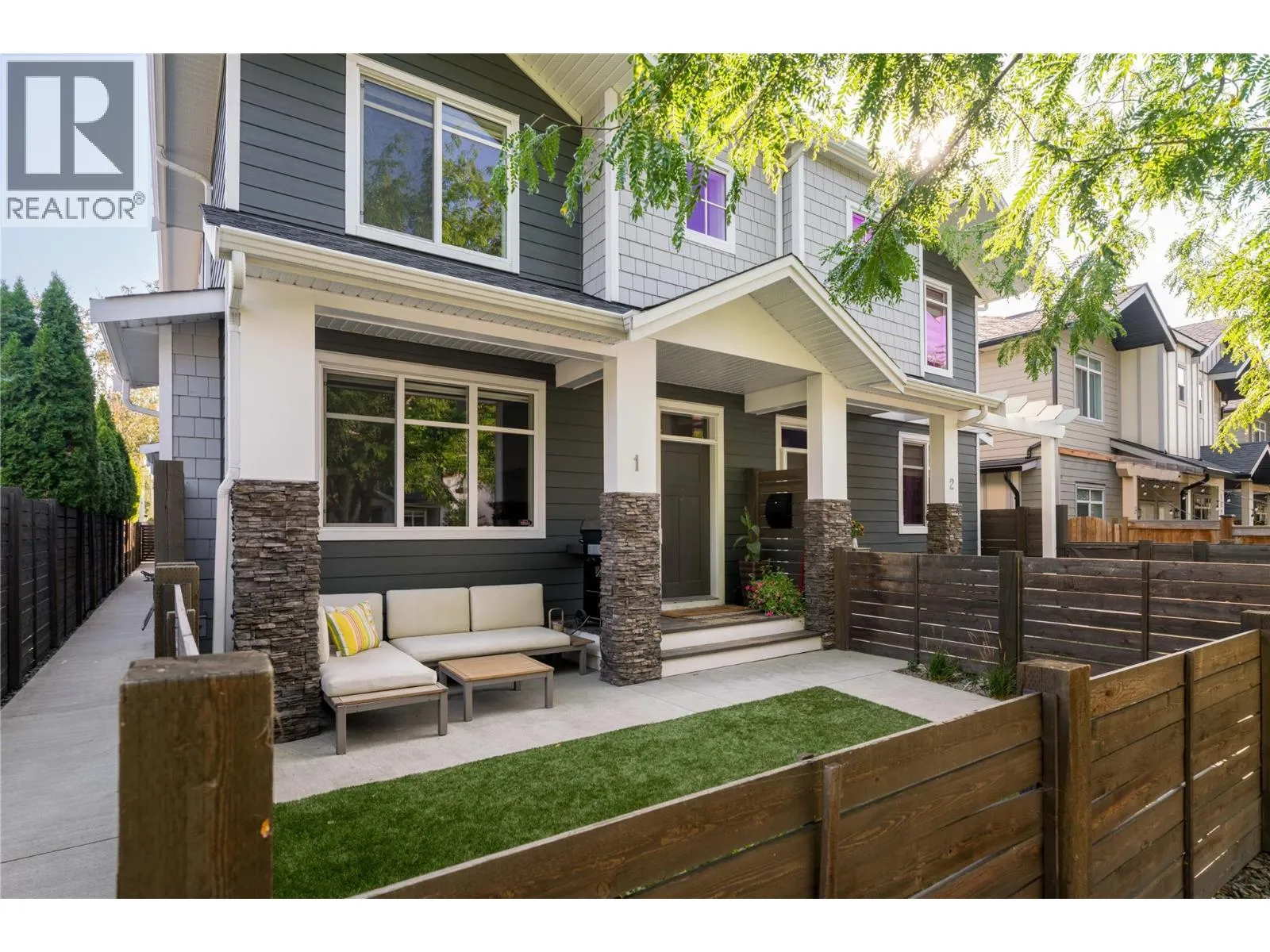 Like new and lovingly maintained by the original owners, this three-bedroom, three-bathroom townhome is the perfect blend of modern style and everyday practicality. Situated in an incredible downtown location, the home offers unbeatable walkability to coffee shops, dining, parks, and all the essentials of city living. Inside, the open-concept main floor is bright and functional with wide-plank flooring, a modern fireplace, and large windows that fill the space with natural light. The kitchen is thoughtfully designed with timeless white cabinetry, quartz countertops, stainless steel appliances, and a beverage centreâmaking both daily living and entertaining effortless. Upstairs, the primary suite includes a walk-in closet and private ensuite, while two additional bedrooms provide flexibility for family, guests, or a home office. A second full bathroom and convenient upstairs laundry complete this level. A 4 foot crawl space spans the footprint of the home for seasonal storage. With charming curb appeal, a fenced patio, and a detached garage, this home combines low-maintenance living with modern comfort. A fantastic opportunity to own a turn-key property in one of Kelownaâs most walkable and desirable neighbourhoods. (id:27476)