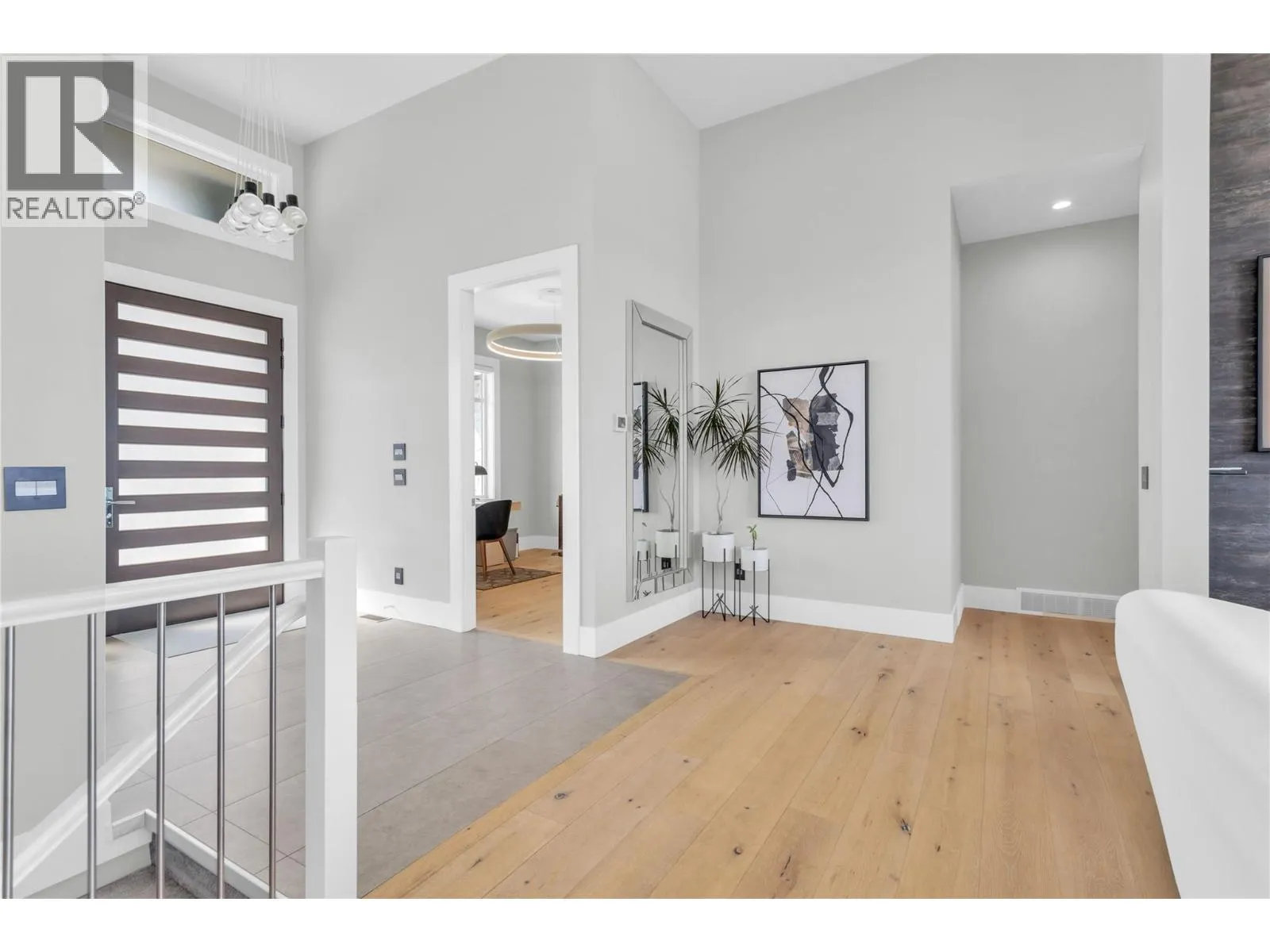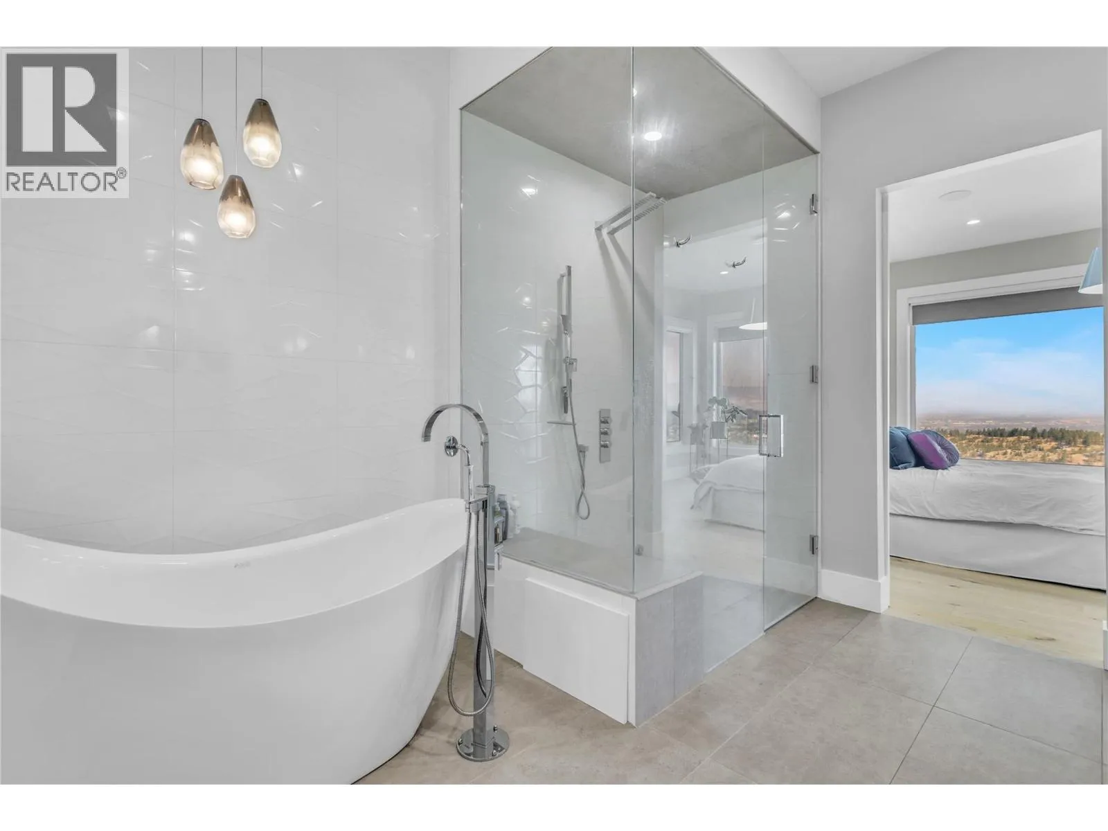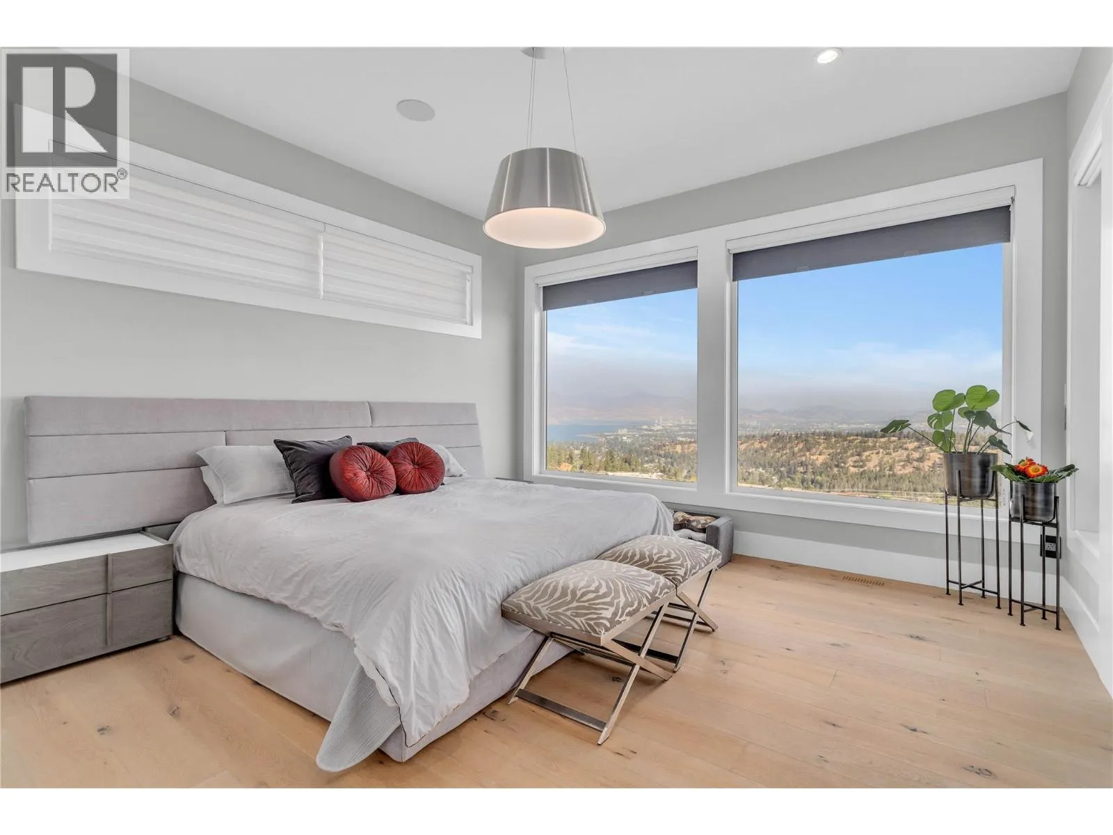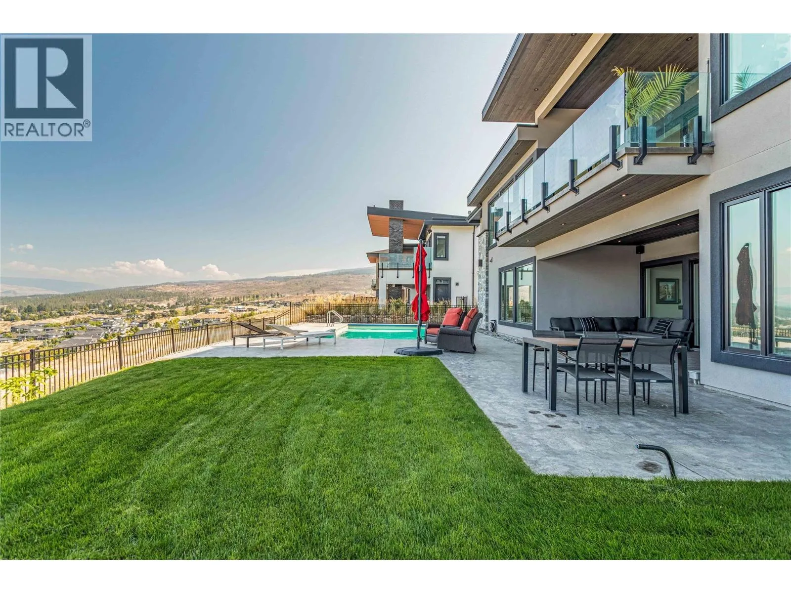 Welcome to this stunning Modern Mountainside walk out rancher that perfectly blends luxury and comfort. Perched above the valley and lake, the home captures breathtaking views through oversized windows and doors, filling every space with natural light. As you walk through the front door you are immediately drawn to the expansive view and the over sized covered front balcony, perfect for taking in the entire Lake and Valley Views. The chefâs kitchen boasts top-of-the-line appliances, while soaring ceilings create an airy elegance throughout the main level. The primary suite is a private retreat with a full spa-like ensuite, complete with a soaker tub, steam shower, and direct access to the deck. The lower level is designed for entertaining with three large bedrooms, one which is also set up as a theatre room, two full baths (including pool access), wet bar, fireplace, and a spacious games and living area. Expansive covered outdoor spaces and a 16x32 ft saltwater pool with auto-cover invite year-round enjoyment. Pre-wired for Hot tub. A 3-bay garage adds functionality, while the location offers unmatched convenience close to schools, trails, and shopping. This home is a rare opportunity to experience elevated living with comfort, privacy, and endless views. Measurements are approximate. (id:27476)