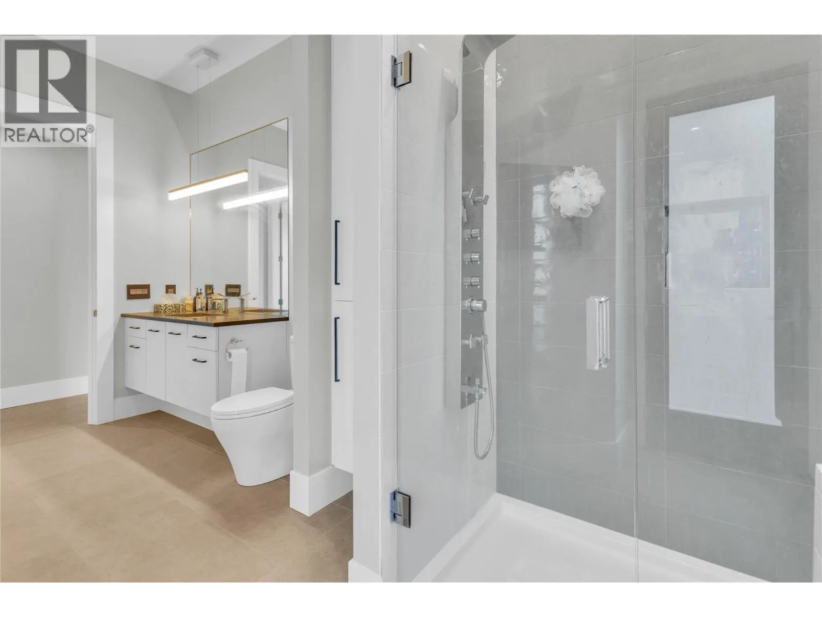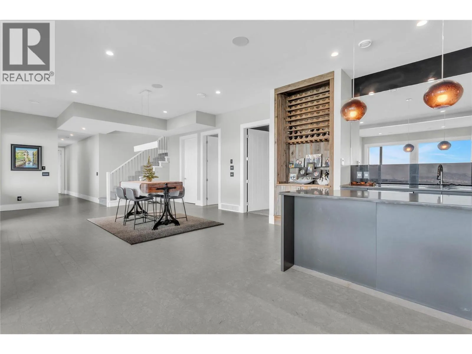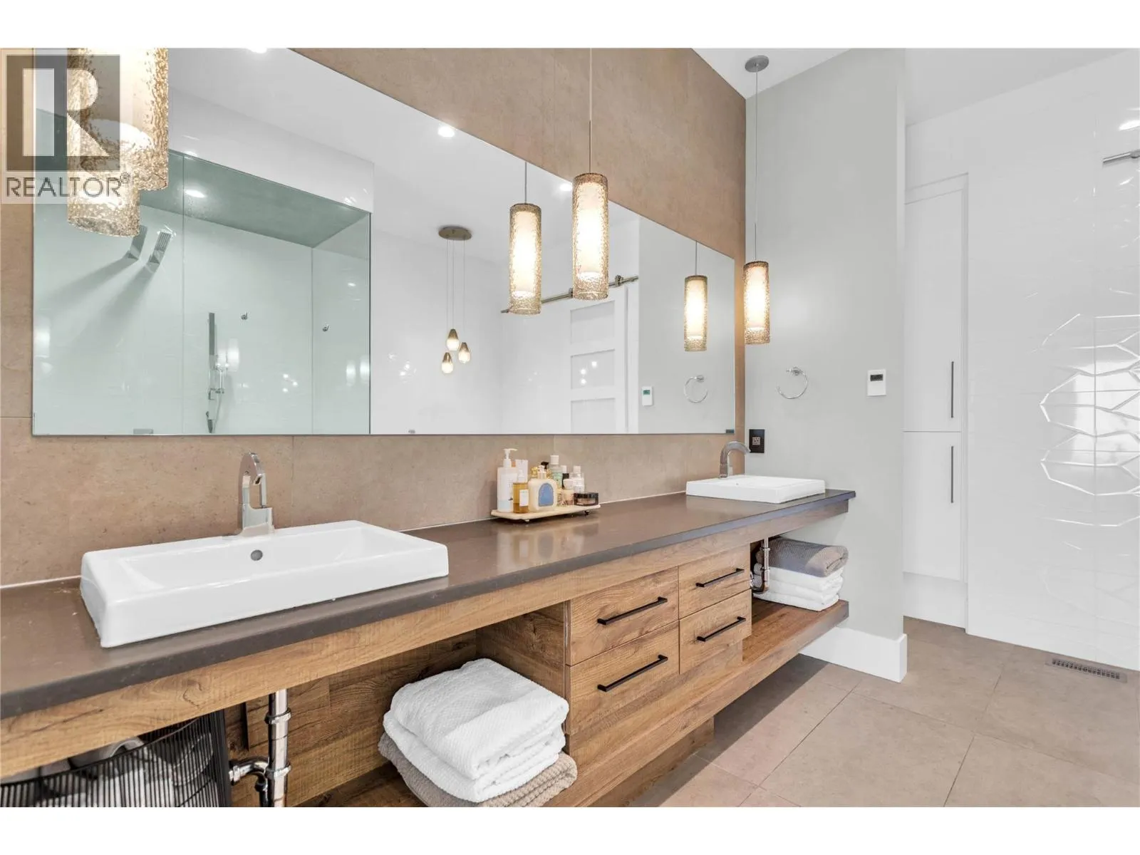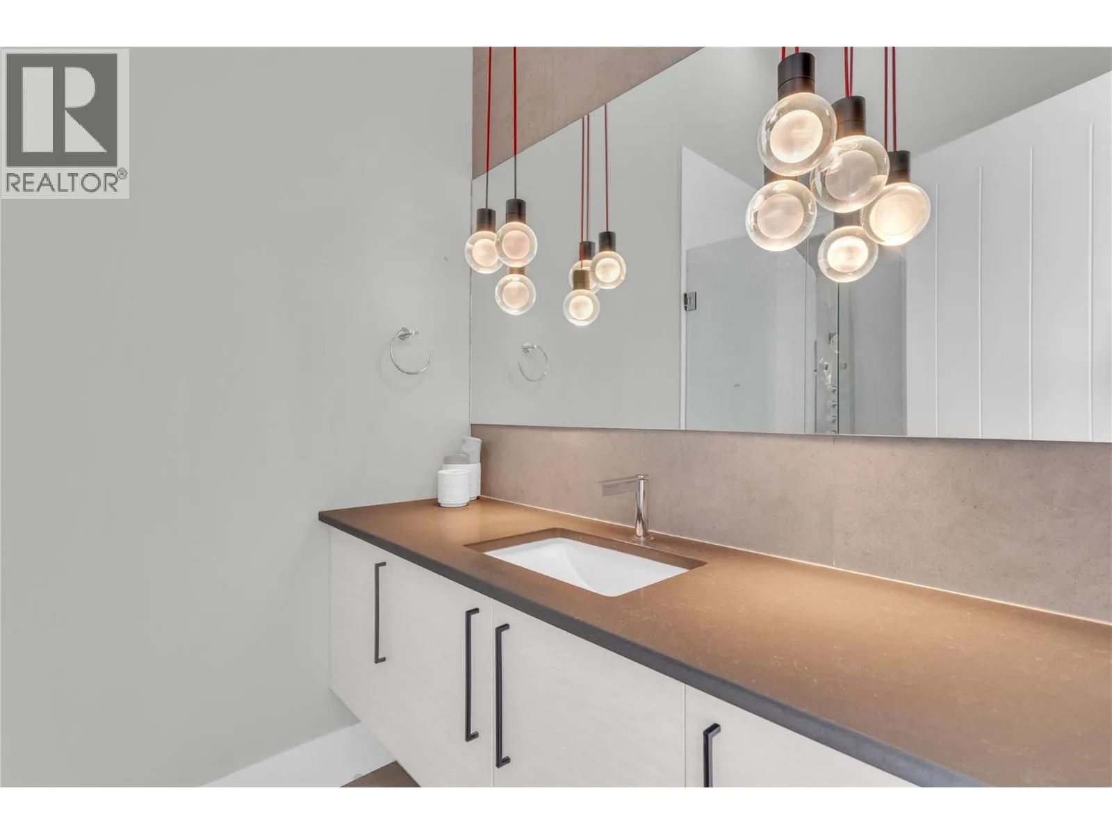 Welcome to this stunning Modern Mountainside walk out rancher that perfectly blends luxury and comfort. Perched above the valley and lake, the home captures breathtaking views through oversized windows and doors, filling every space with natural light. As you walk through the front door you are immediately drawn to the expansive view and the over sized covered front balcony, perfect for taking in the entire Lake and Valley Views. The chefâs kitchen boasts top-of-the-line appliances, while soaring ceilings create an airy elegance throughout the main level. The primary suite is a private retreat with a full spa-like ensuite, complete with a soaker tub, steam shower, and direct access to the deck. The lower level is designed for entertaining with three large bedrooms, one which is also set up as a theatre room, two full baths (including pool access), wet bar, fireplace, and a spacious games and living area. Expansive covered outdoor spaces and a 16x32 ft saltwater pool with auto-cover invite year-round enjoyment. Pre-wired for Hot tub. A 3-bay garage adds functionality, while the location offers unmatched convenience close to schools, trails, and shopping. This home is a rare opportunity to experience elevated living with comfort, privacy, and endless views. Measurements are approximate. (id:27476)