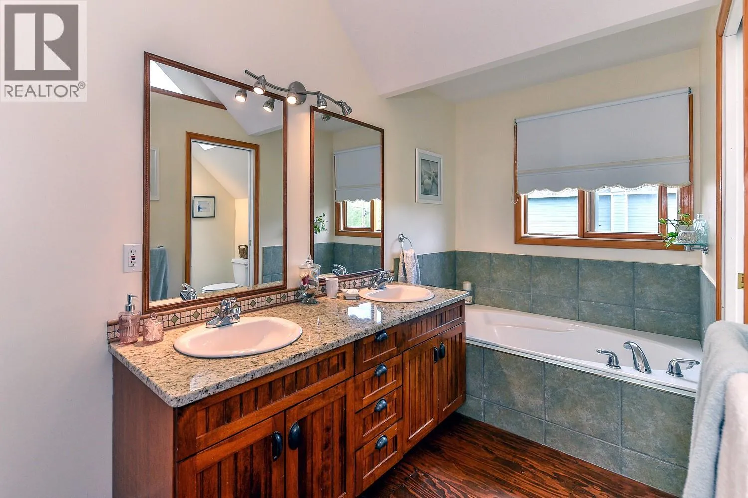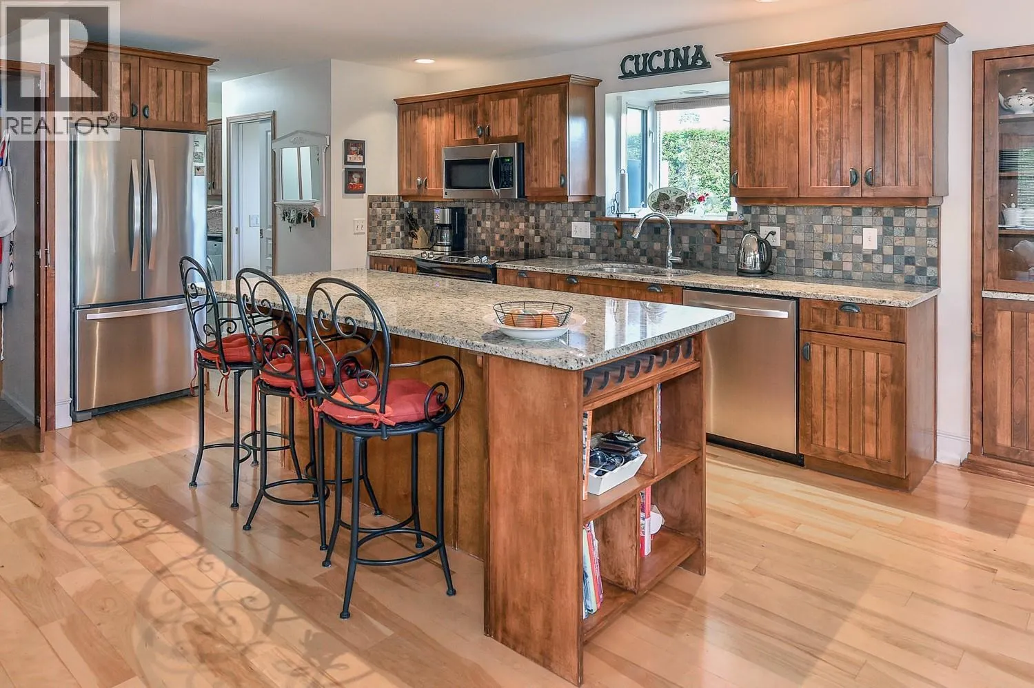 OPEN HOUSE SEPT 28! Discover the perfect blend of tranquility and convenience at this charming Cape Cod-style home. Tucked beside the stunning Fintry Provincial Park, this property offers the ultimate lakeside lifestyle. It's just a 5-minute drive from daily essentials and conveniently situated between Vernon and Kelowna on the breathtaking westside of Okanagan Lake. Step inside to a warm and welcoming interior. You'll love the comfort of the heated wood floors and the cozy ambiance created by the gas fireplace. The upgraded kitchen is a chef's delight, boasting sleek granite countertops, a spacious pantry, and a seamless flow into the office/den, laundry area, and a convenient powder room with garage access. Upstairs, custom inlay flooring leads the way to a peaceful primary bedroom with easy access to a full bath. Two more bedrooms are connected by a charming loft, perfect for family or guests. A versatile fourth bedroom or flex room offers a great space for a home gym, studio, or whatever you need. Outside, the property is a true sanctuary. The English cottage-style gardens are a quiet retreat, and a spacious paver patio with a charming arbor and trellis is the perfect spot for outdoor dining or relaxing by the fire. The double garage provides ample parking for vehicles and toys, while the fenced yard with underground irrigation and a soothing hot tub ensures you can unwind in style. Ready to experience this exceptional lakeside home for yourself? Book your viewing today! (id:27476)