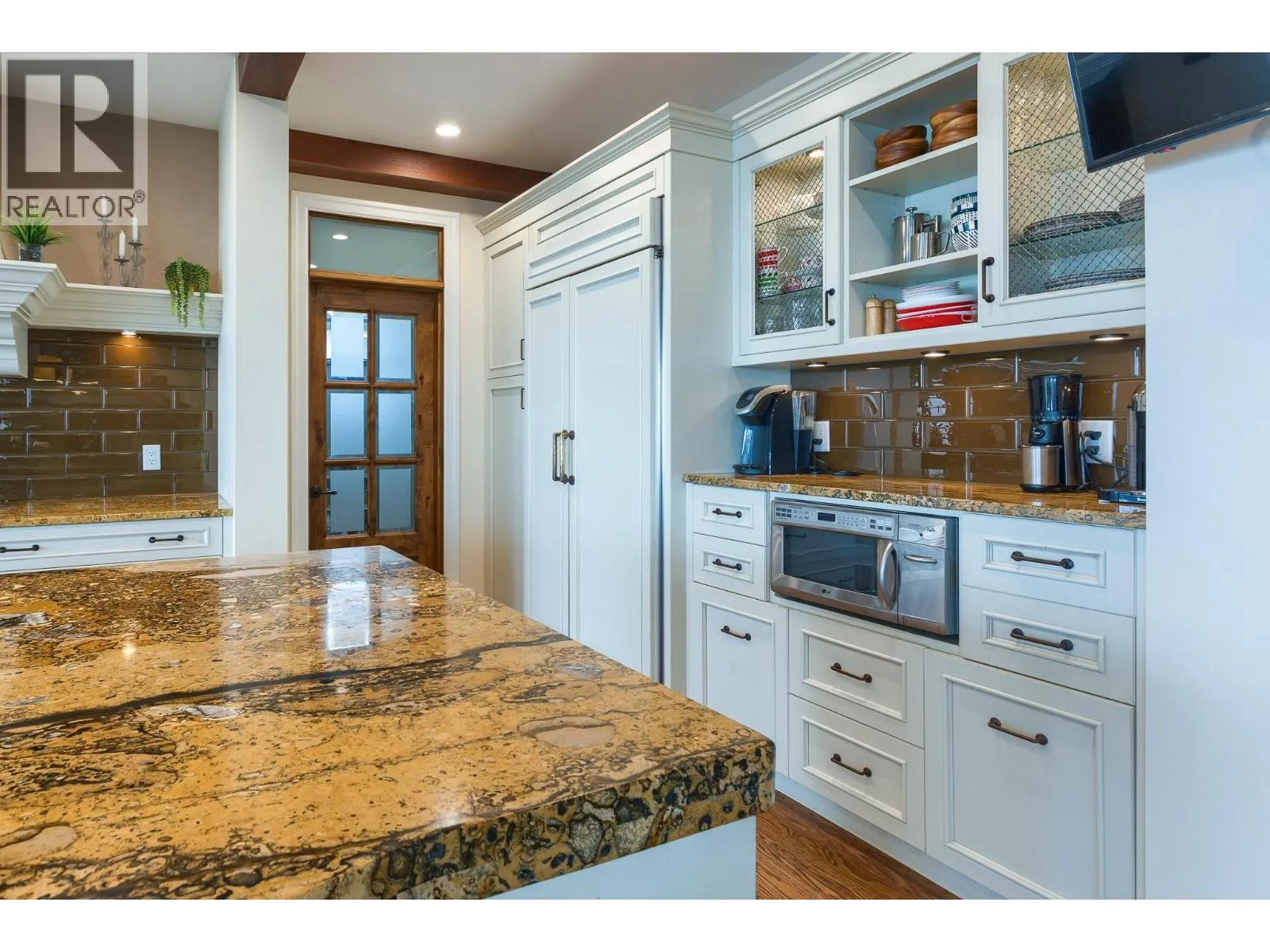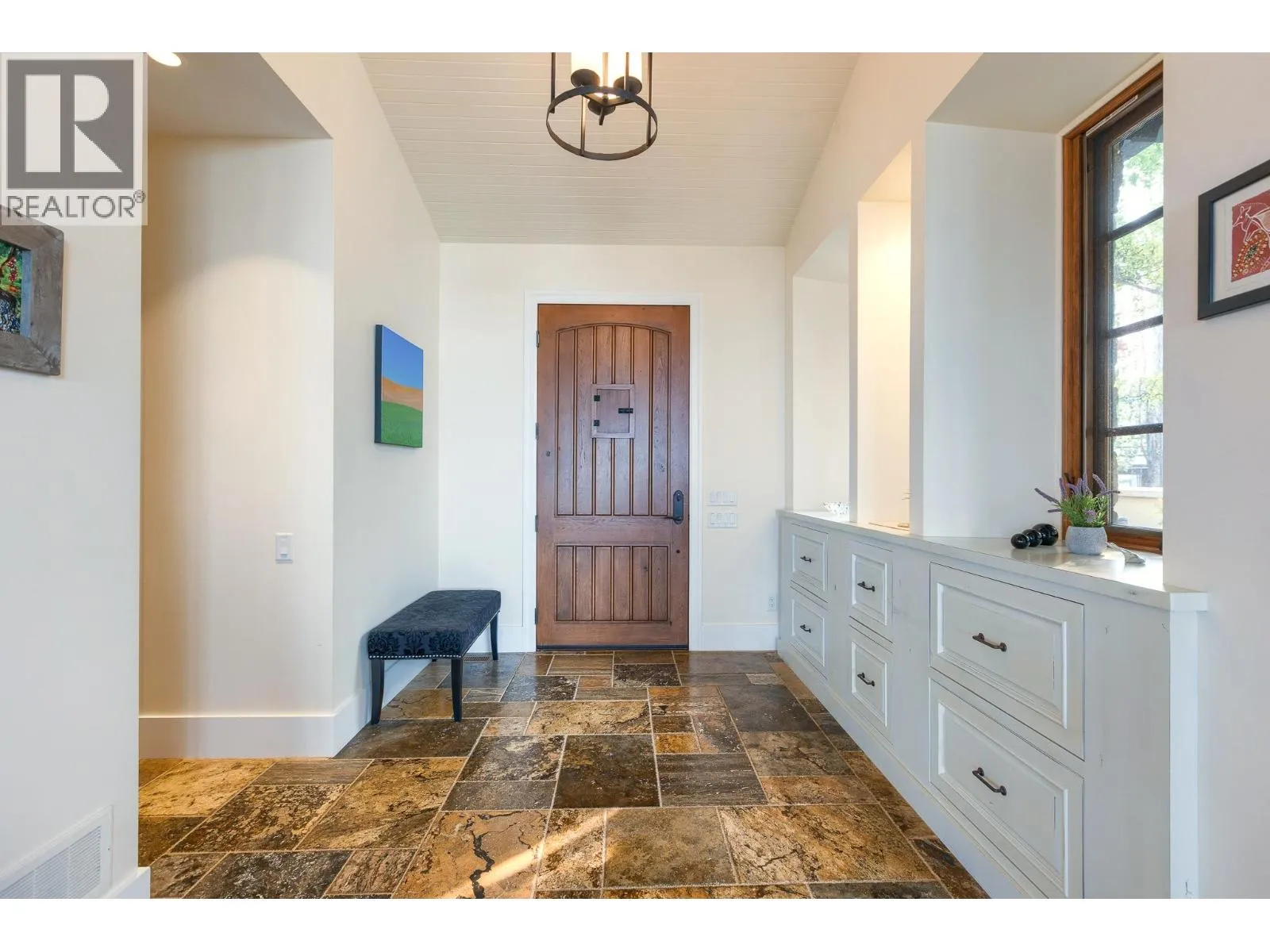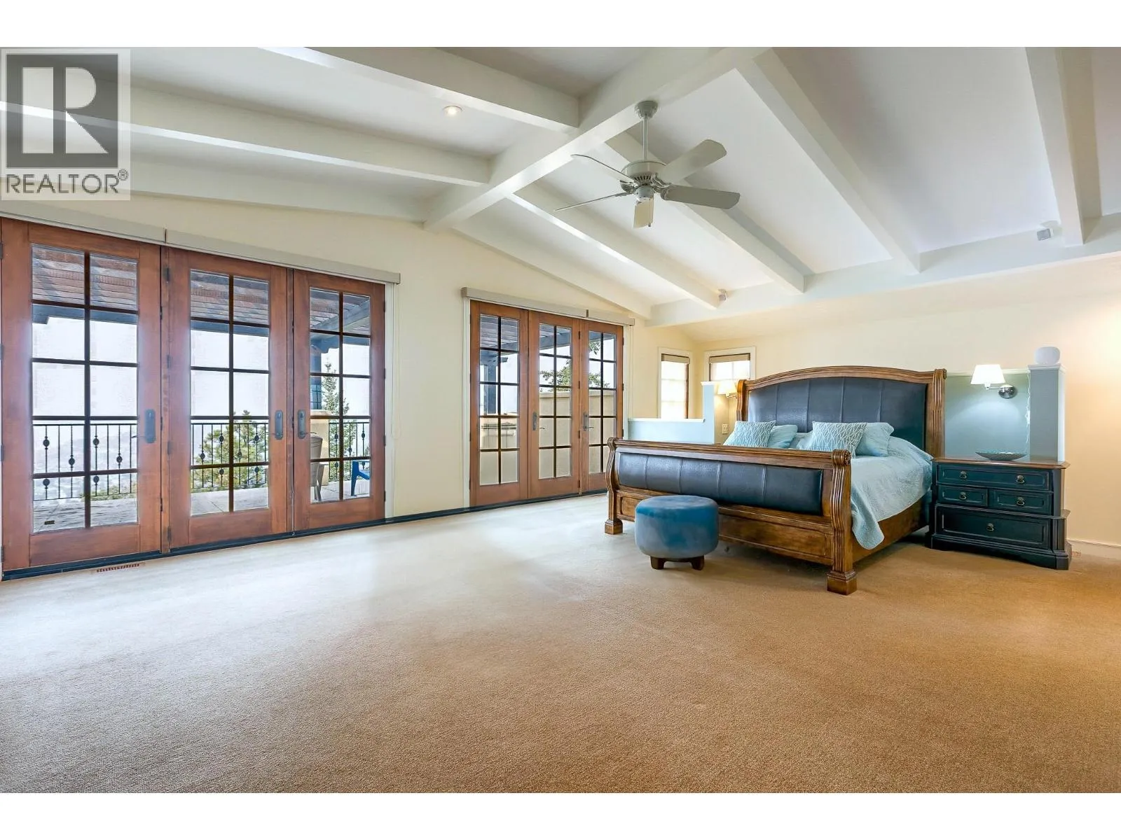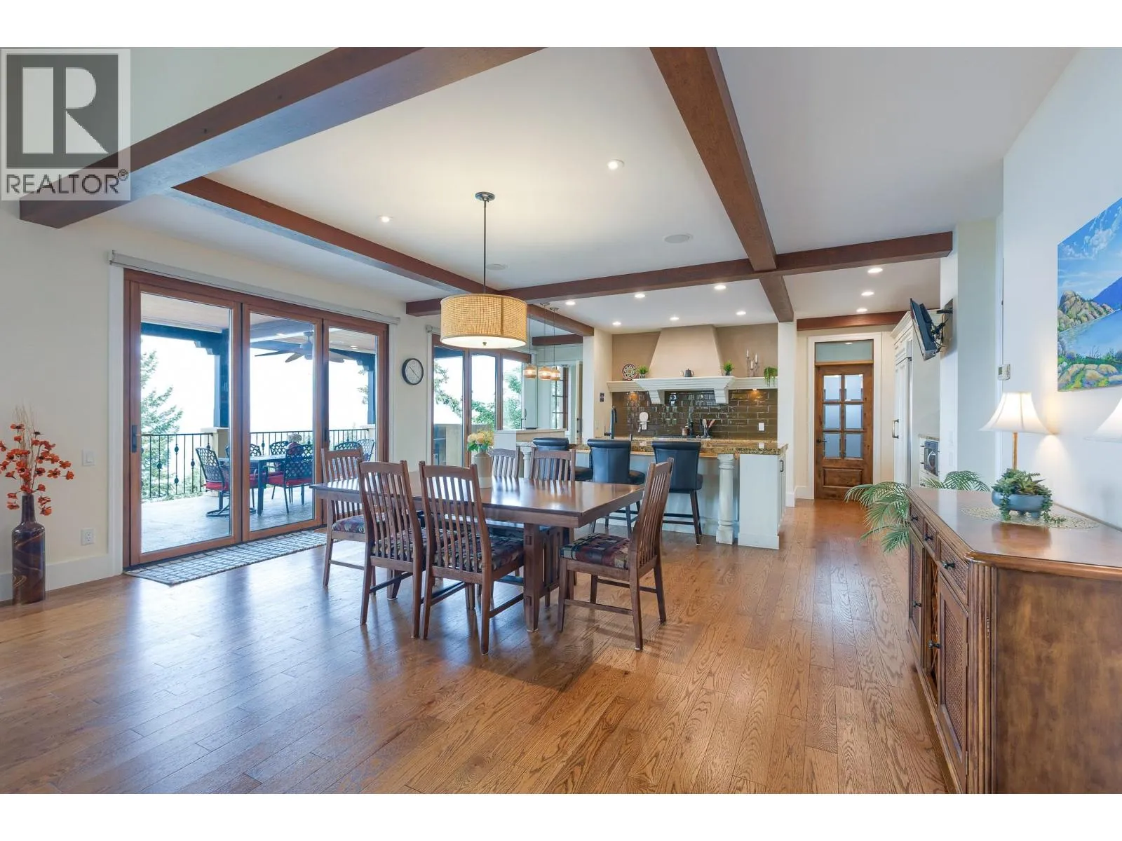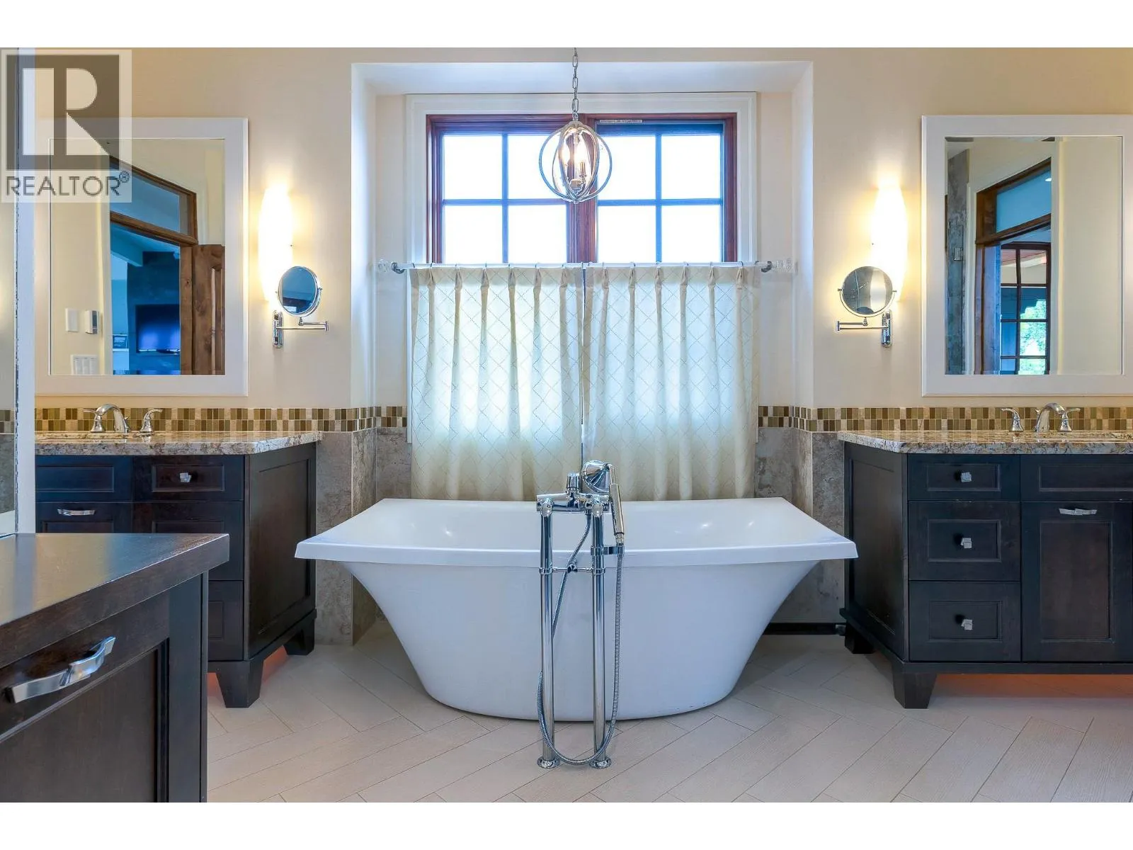 This extraordinary home on Dilworth Mountain is perfectly positioned to capture breathtaking panoramic lake, city, and mountain views. Arrive through the gated, private courtyard, where a tranquil water fountain sets the tone for the elegance within. Designed for both entertaining and everyday comfort, the home seamlessly blends indoor-outdoor living with soaring vaulted ceilings, expansive nano glass doors leading to a large deck, bringing the outdoors in. The gourmet kitchen is appointed with top-of-the-line appliances, granite counters, alder cabinetry, travertine finishes, and a pantry providing additional storage. The great room exudes warmth and relaxation with its floor-to-ceiling fireplace, exposed beams, and rich hardwood floors. Upstairs, the lavish primary suite is a sanctuary unto itself, featuring a lounge area with fireplace and French doors to a deck showing off the spectacular city and lake views. The fully equipped ensuite offers a double shower and stand-alone tub, complemented by an oversized walk-in closet, dressing room, and private laundry. A flex room off the ensuite provides space for an office/nursery and has its own private and shaded deck. The lower level boasts three bedrooms and two bathrooms, along with a cozy living room that flows directly to the pool deck. This level also includes a wet bar, fireplace, and secondary laundry. Outdoors, soak in the stunning views from any of the 5 decks/sitting areas, the sparkling pool, or by the stone fireplace. The yard is framed by lush landscaping and fruit trees, creating a private and peaceful retreat. Completing this exceptional property is a spacious double garage, offering ample room for vehicles and storage. (id:27476)