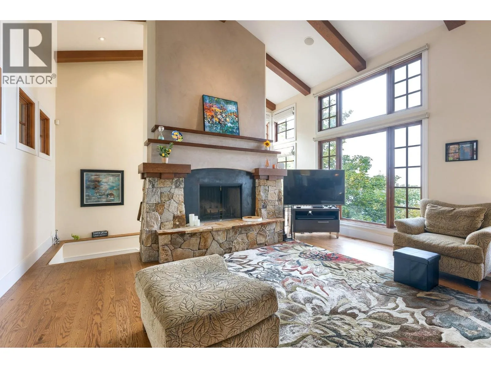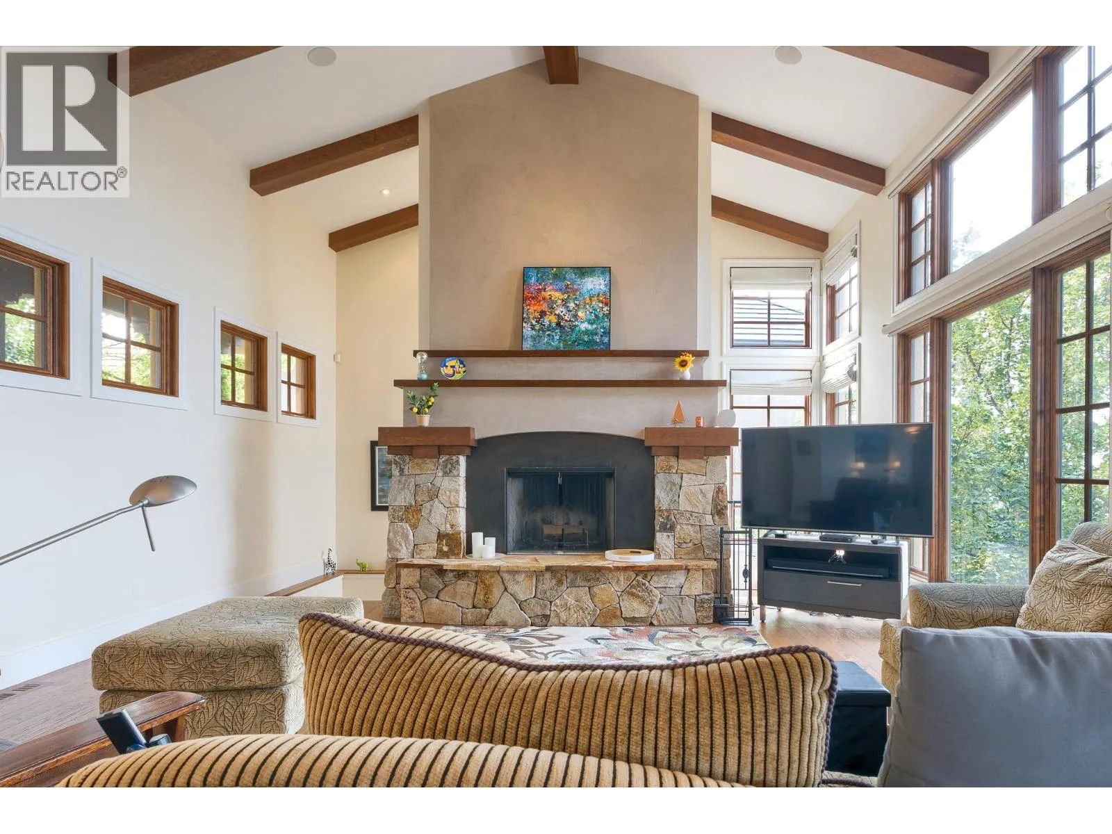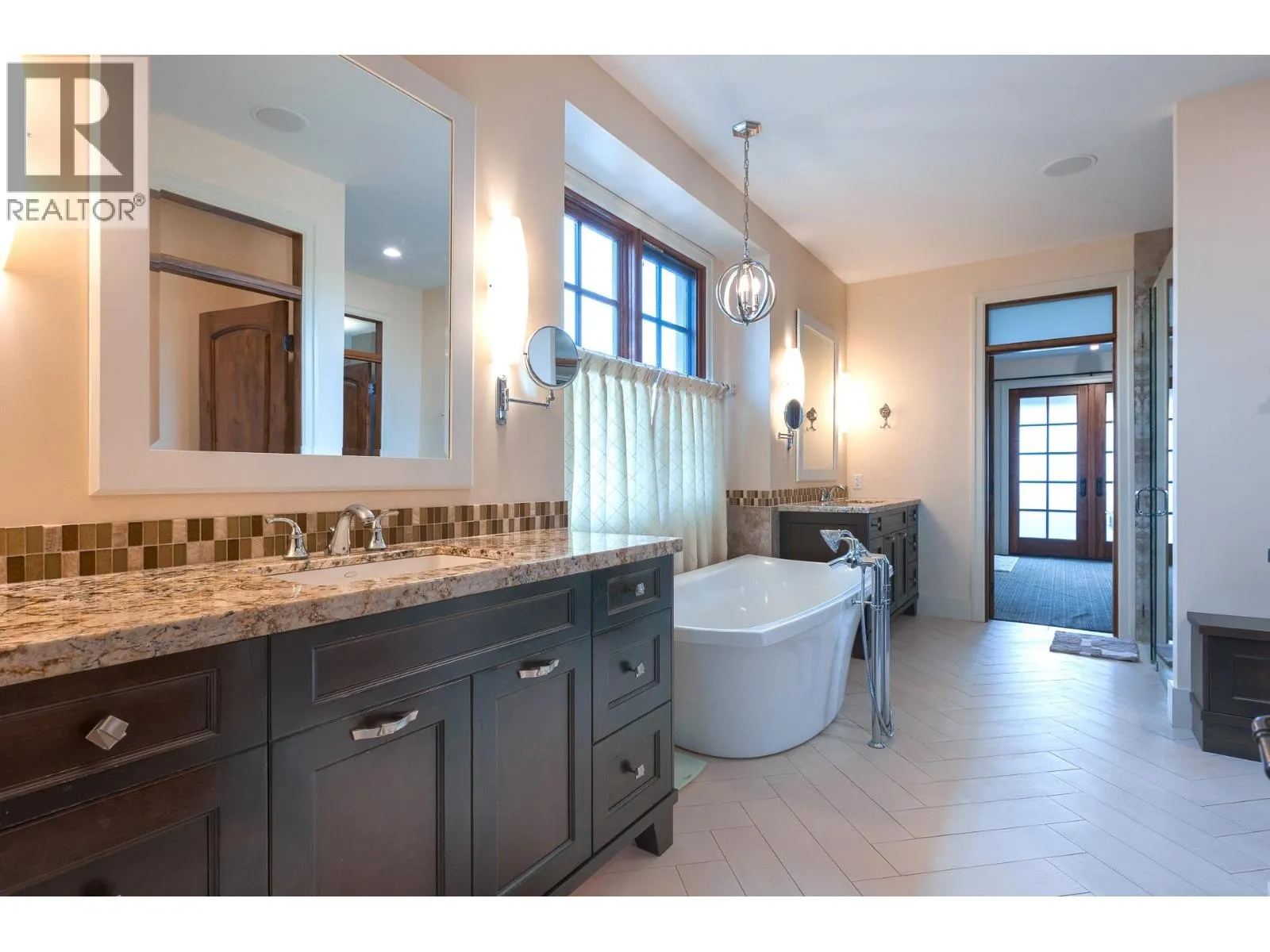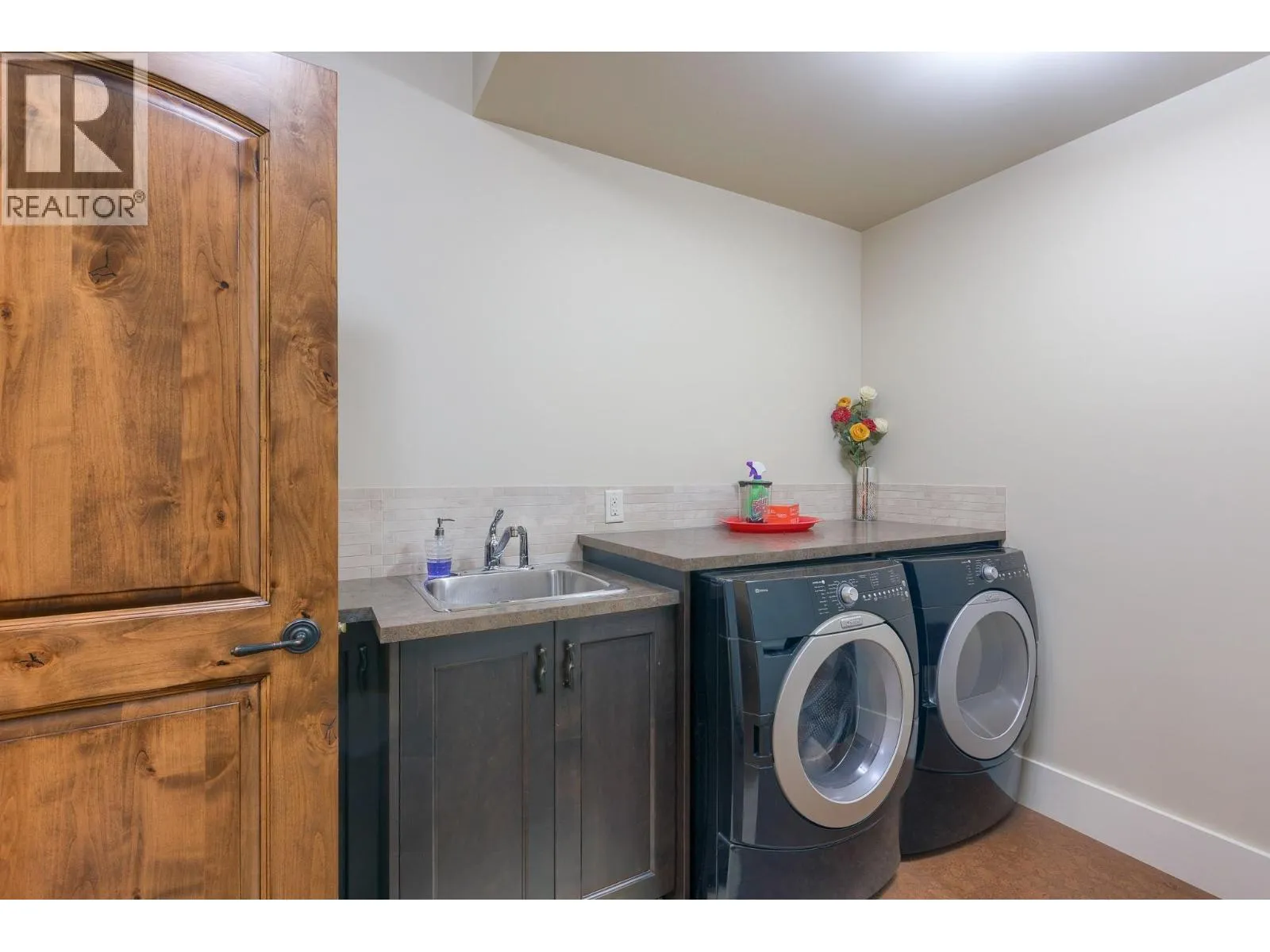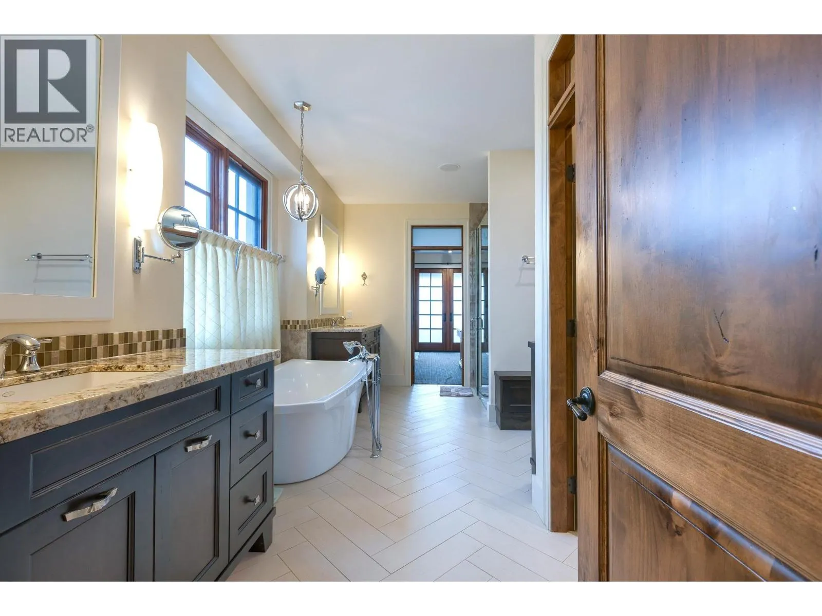 This extraordinary home on Dilworth Mountain is perfectly positioned to capture breathtaking panoramic lake, city, and mountain views. Arrive through the gated, private courtyard, where a tranquil water fountain sets the tone for the elegance within. Designed for both entertaining and everyday comfort, the home seamlessly blends indoor-outdoor living with soaring vaulted ceilings, expansive nano glass doors leading to a large deck, bringing the outdoors in. The gourmet kitchen is appointed with top-of-the-line appliances, granite counters, alder cabinetry, travertine finishes, and a pantry providing additional storage. The great room exudes warmth and relaxation with its floor-to-ceiling fireplace, exposed beams, and rich hardwood floors. Upstairs, the lavish primary suite is a sanctuary unto itself, featuring a lounge area with fireplace and French doors to a deck showing off the spectacular city and lake views. The fully equipped ensuite offers a double shower and stand-alone tub, complemented by an oversized walk-in closet, dressing room, and private laundry. A flex room off the ensuite provides space for an office/nursery and has its own private and shaded deck. The lower level boasts three bedrooms and two bathrooms, along with a cozy living room that flows directly to the pool deck. This level also includes a wet bar, fireplace, and secondary laundry. Outdoors, soak in the stunning views from any of the 5 decks/sitting areas, the sparkling pool, or by the stone fireplace. The yard is framed by lush landscaping and fruit trees, creating a private and peaceful retreat. Completing this exceptional property is a spacious double garage, offering ample room for vehicles and storage. (id:27476)
