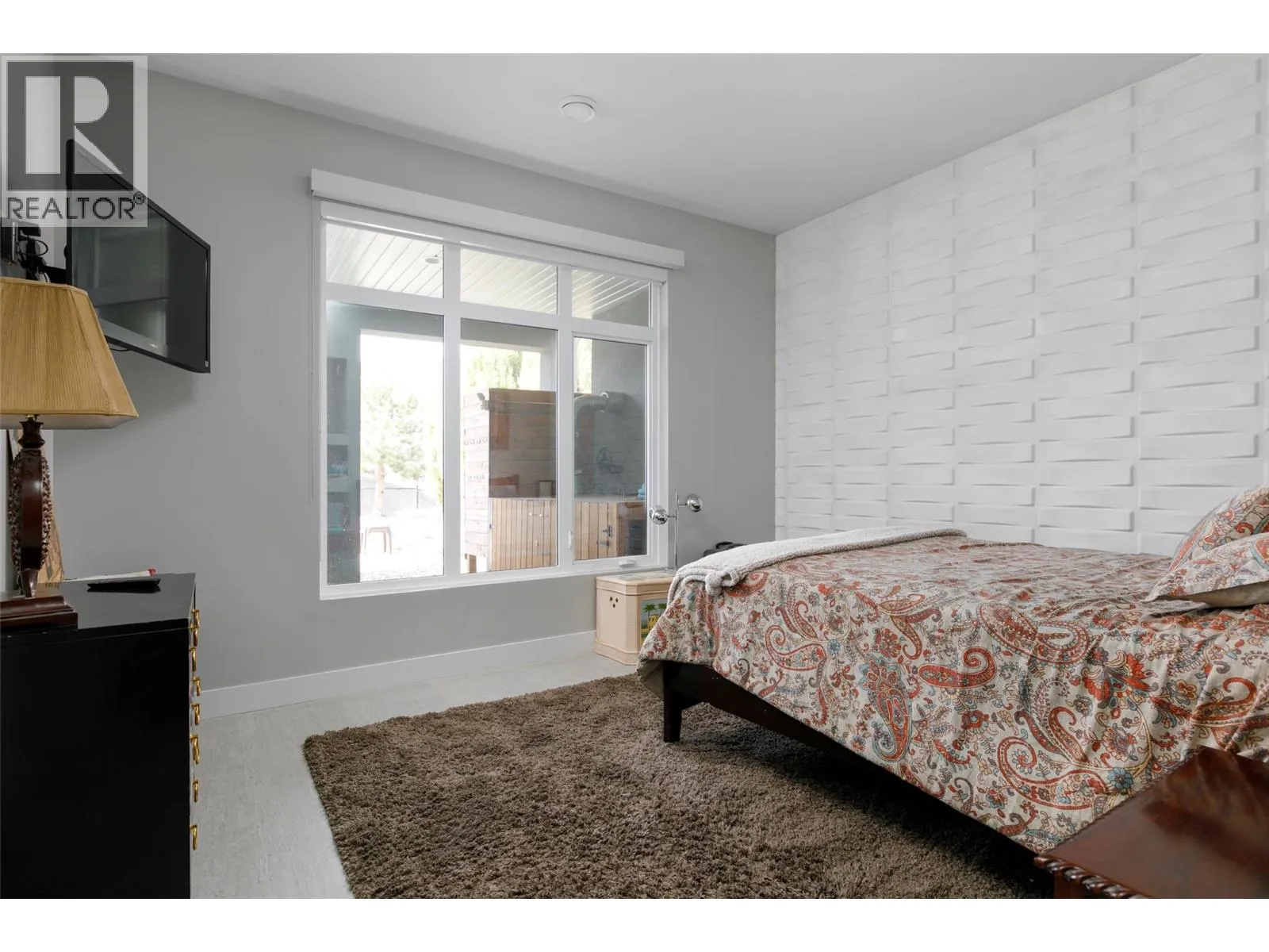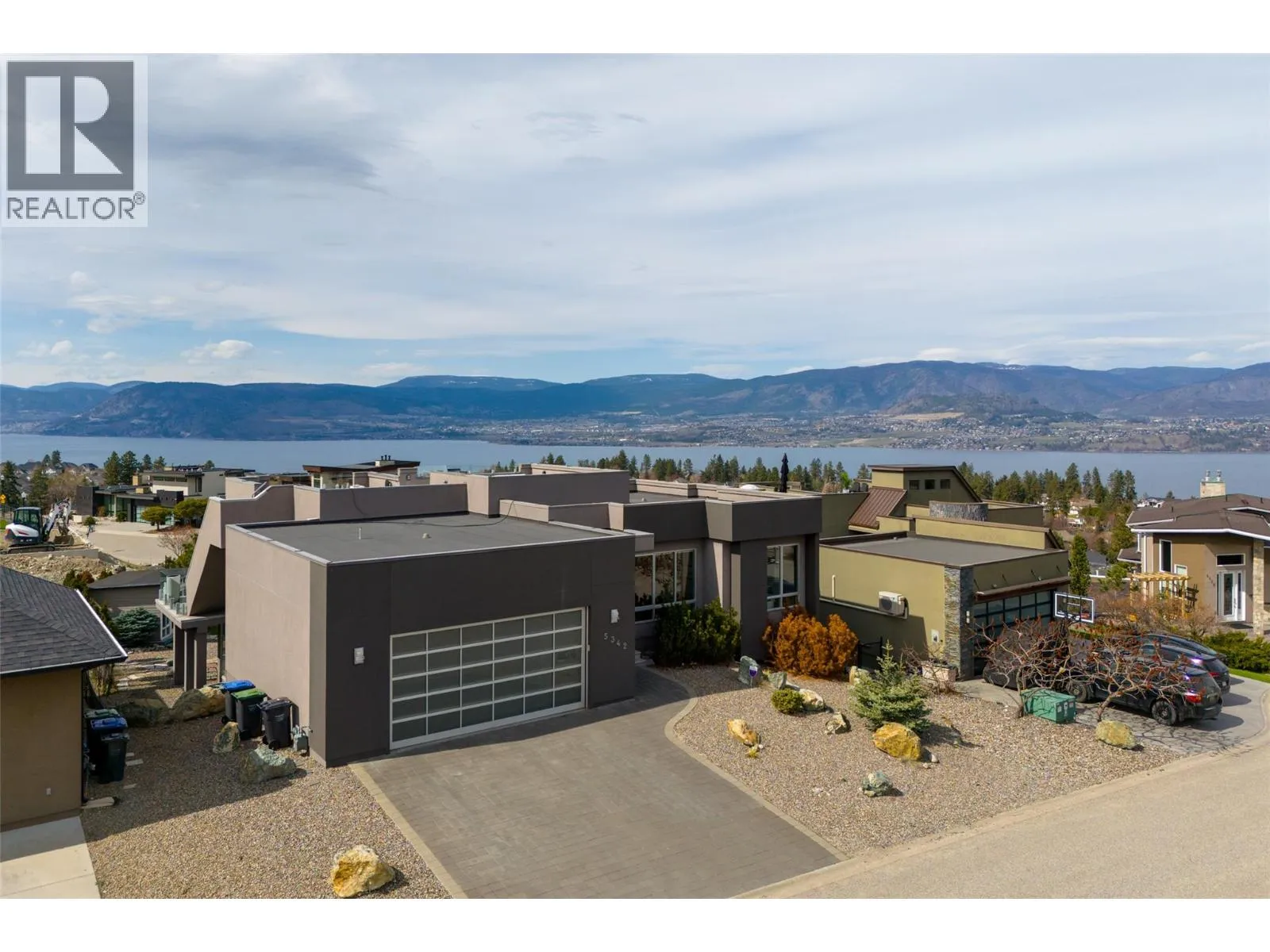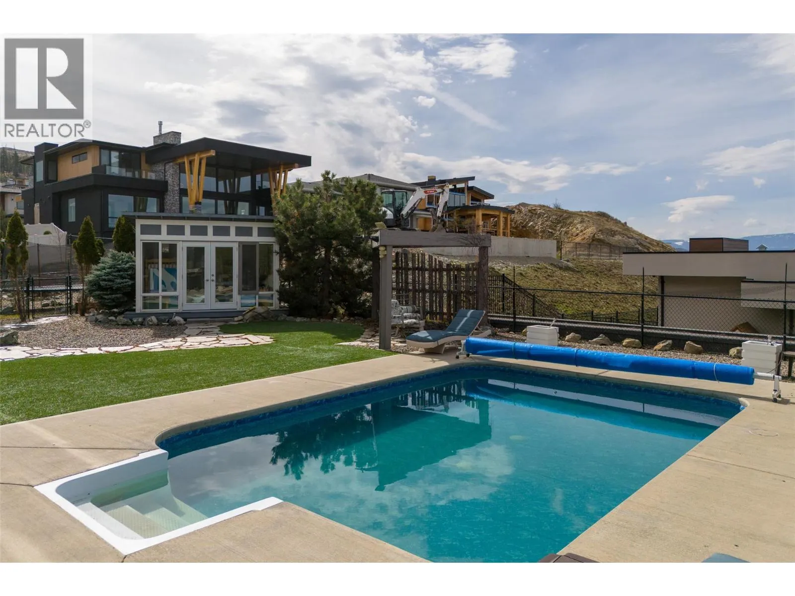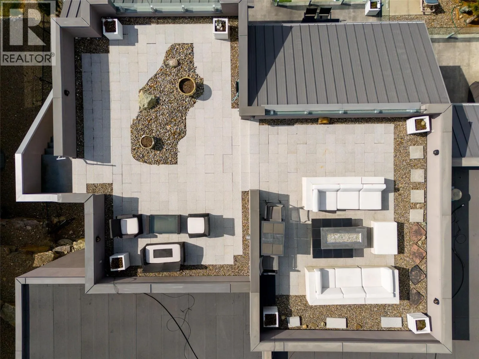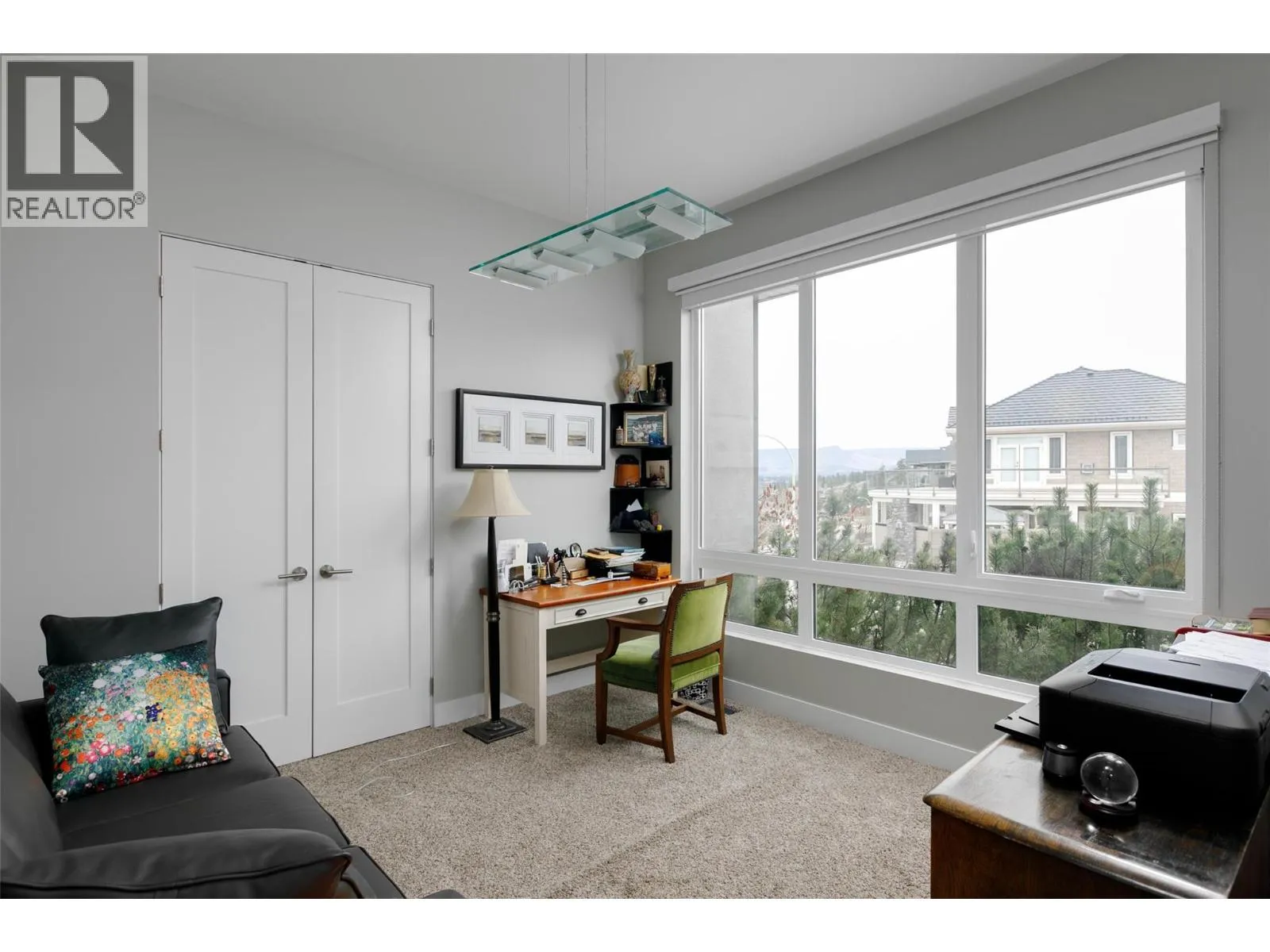 Stunning lake & mountain views, walls of windows, and crisp modern architecture come together in this exceptional Upper Mission walkout with rooftop patio overlooking your pool, the lake and city beyond! Impeccable finishings, open-concept living, and a quiet, upscale location make this home ideal for both entertaining and relaxing. The gourmet island kitchen flows seamlessly to a wraparound sundeck with panoramic southerly views overlooking the pool and lake. The main floor features a front office and a luxurious principal suite with spa-inspired ensuite. Downstairs offers spacious bedrooms, a large games/family room, media room, wine room, and steam shower bathâall with direct access to the sun-drenched pool & hot tub area and has suite potential. A detached backyard garden cottage shed provides potential for a summer guesthouse experience or utilize as you see fit! Additional features include: epoxied heated garage with 14â ceilings & built-in storage (boat-ready), 10â & 11â ceilings, granite & glass finishes throughout, xeriscaped landscaping, walk-through pantry, and a rare 1,000 sq ft rooftop patio with breathtaking lake & mountain viewsâperfect for Okanagan evenings. Located in the prestigious Kettle Valley neighborhood, close to parks, schools, and the new Ponds shopping district. Move-in ready to enjoy the best of the Okanagan lifestyle. (id:27476)