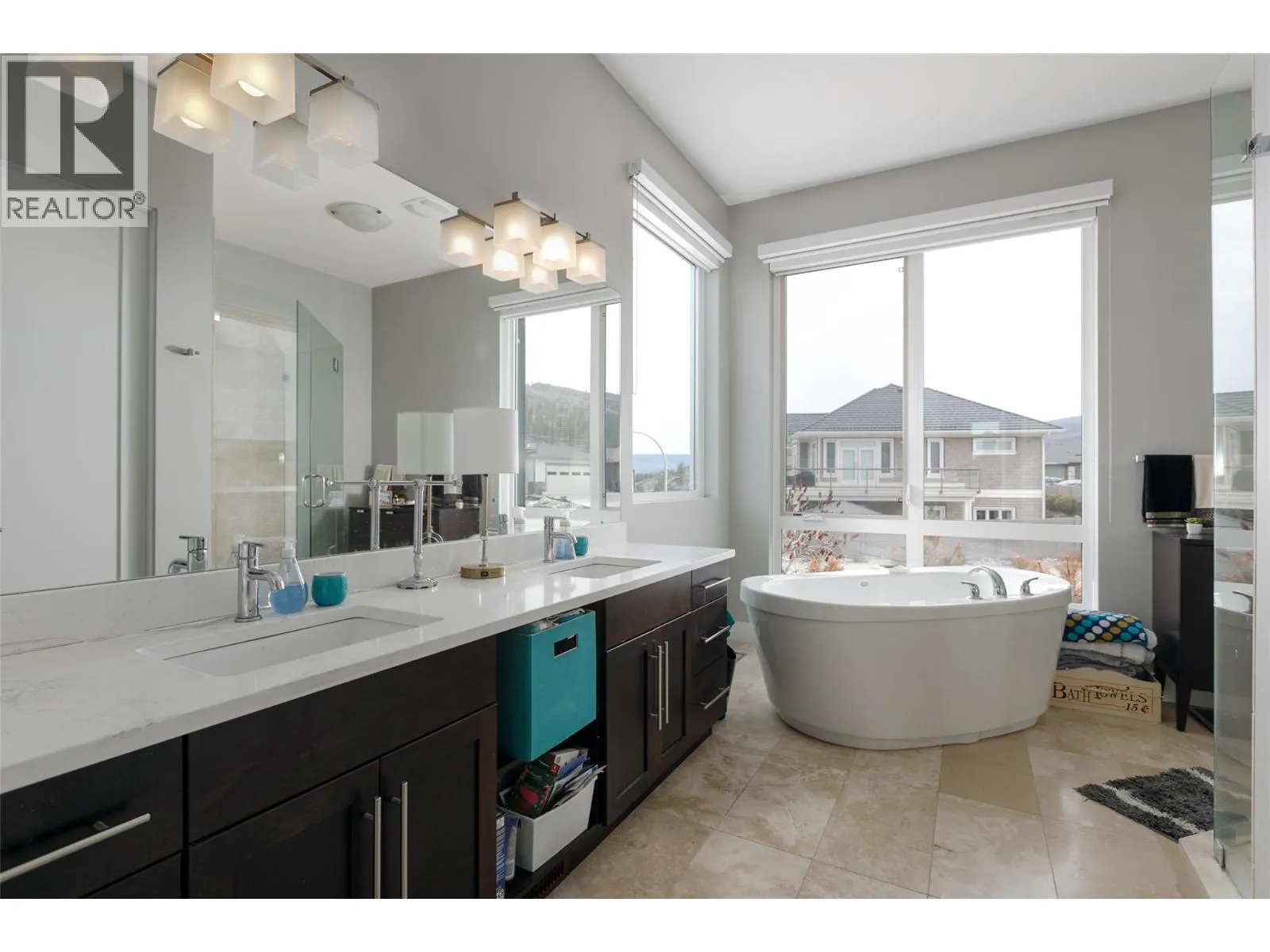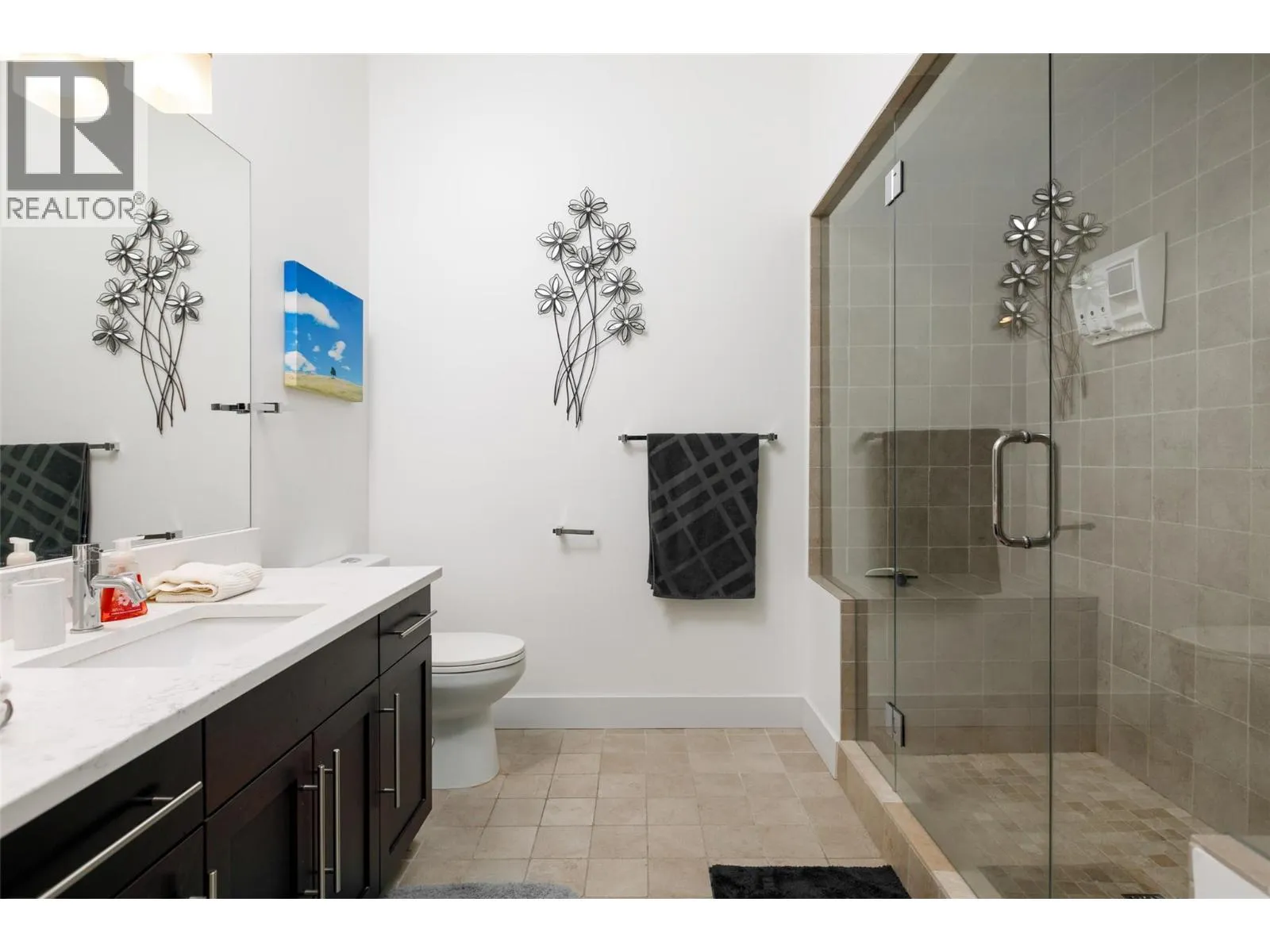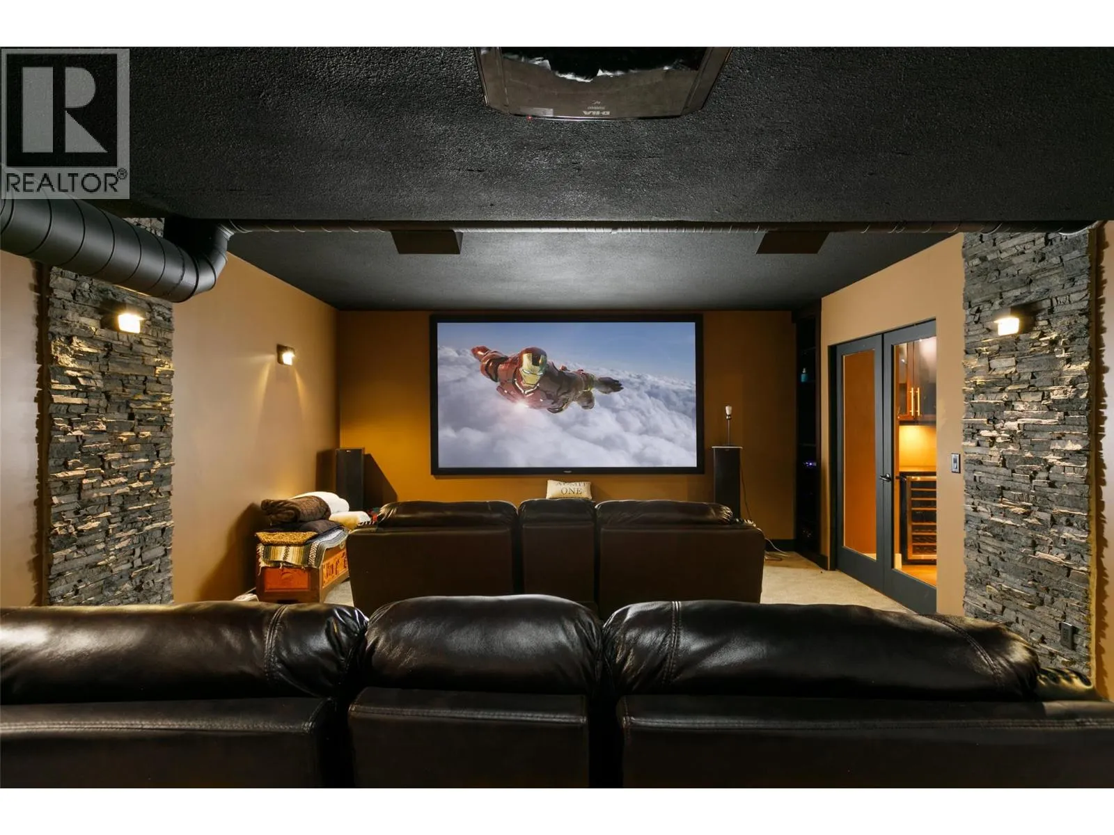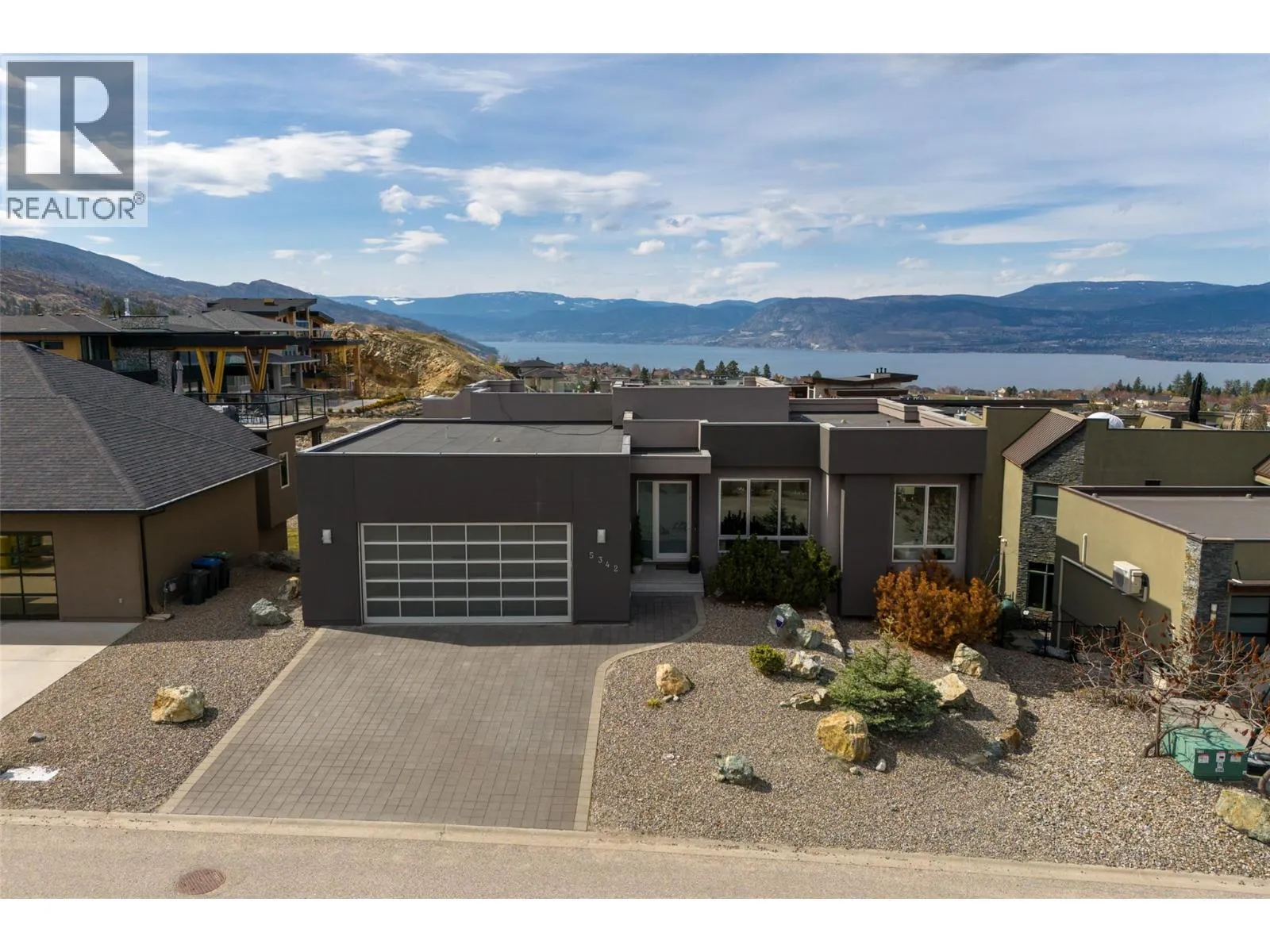 Stunning lake & mountain views, walls of windows, and crisp modern architecture come together in this exceptional Upper Mission walkout with rooftop patio overlooking your pool, the lake and city beyond! Impeccable finishings, open-concept living, and a quiet, upscale location make this home ideal for both entertaining and relaxing. The gourmet island kitchen flows seamlessly to a wraparound sundeck with panoramic southerly views overlooking the pool and lake. The main floor features a front office and a luxurious principal suite with spa-inspired ensuite. Downstairs offers spacious bedrooms, a large games/family room, media room, wine room, and steam shower bathâall with direct access to the sun-drenched pool & hot tub area and has suite potential. A detached backyard garden cottage shed provides potential for a summer guesthouse experience or utilize as you see fit! Additional features include: epoxied heated garage with 14â ceilings & built-in storage (boat-ready), 10â & 11â ceilings, granite & glass finishes throughout, xeriscaped landscaping, walk-through pantry, and a rare 1,000 sq ft rooftop patio with breathtaking lake & mountain viewsâperfect for Okanagan evenings. Located in the prestigious Kettle Valley neighborhood, close to parks, schools, and the new Ponds shopping district. Move-in ready to enjoy the best of the Okanagan lifestyle. (id:27476)