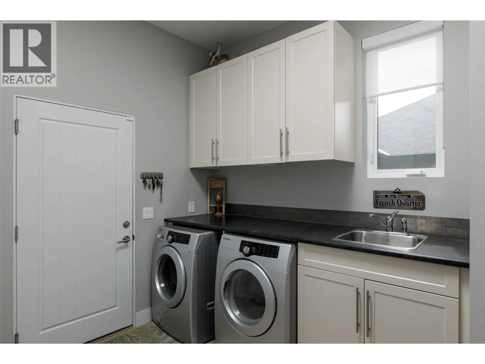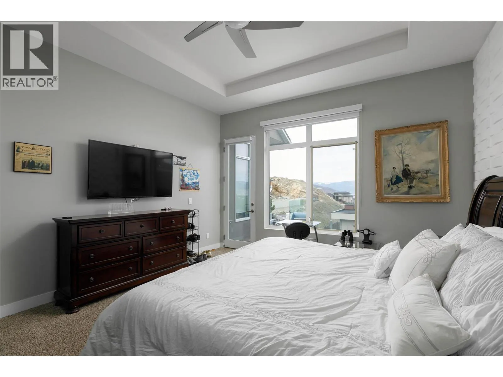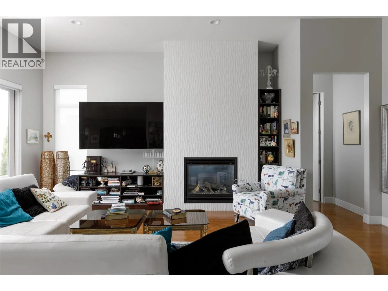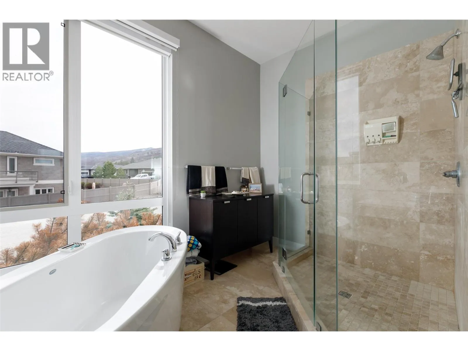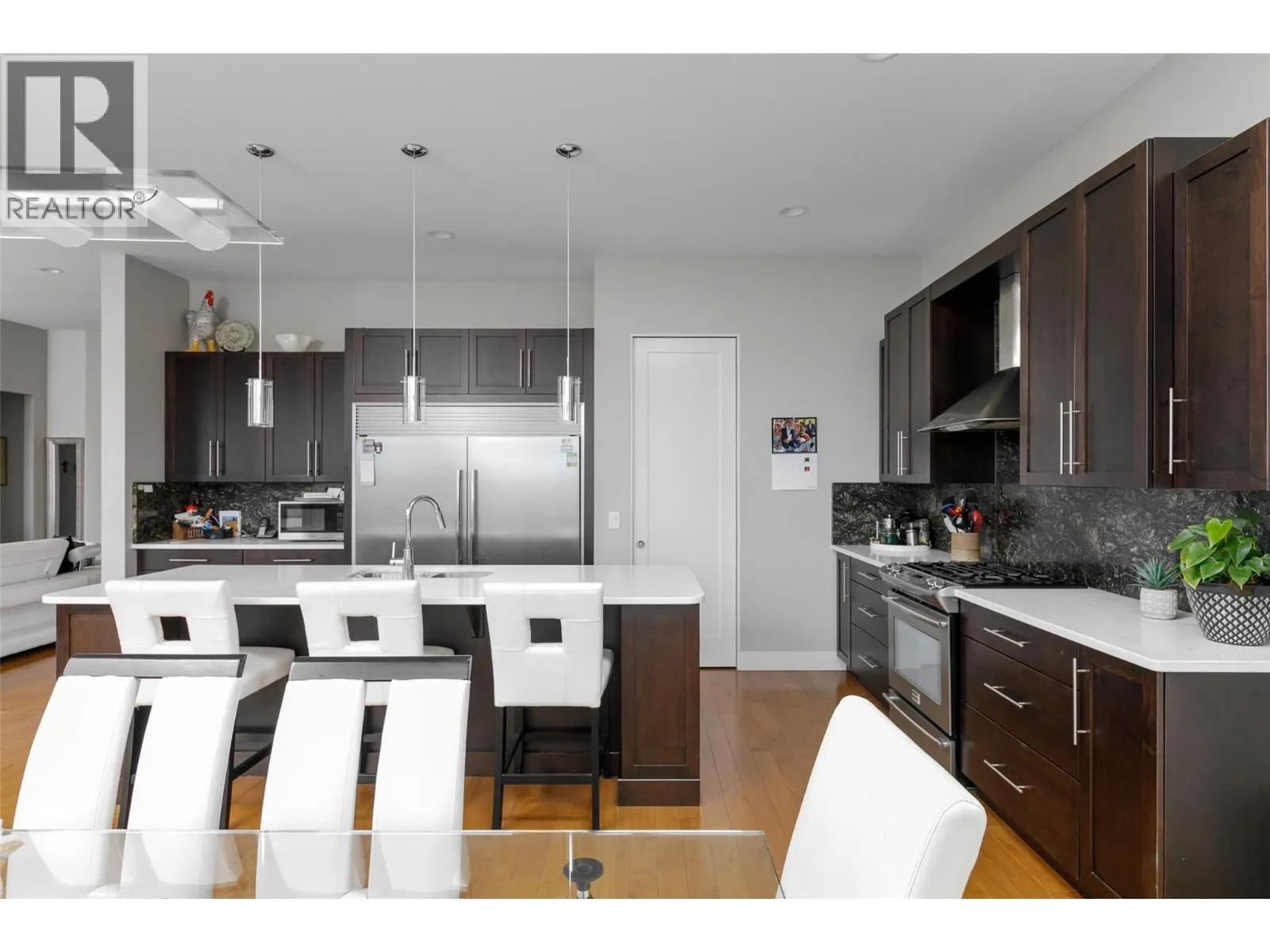Stunning lake & mountain views, walls of windows, and crisp modern architecture come together in this exceptional Upper Mission walkout with rooftop patio overlooking your pool, the lake and city beyond! Impeccable finishings, open-concept living, and a quiet, upscale location make this home ideal for both entertaining and relaxing. The gourmet island kitchen flows seamlessly to a wraparound sundeck with panoramic southerly views overlooking the pool and lake. The main floor features a front office and a luxurious principal suite with spa-inspired ensuite. Downstairs offers spacious bedrooms, a large games/family room, media room, wine room, and steam shower bathâall with direct access to the sun-drenched pool & hot tub area and has suite potential. A detached backyard garden cottage shed provides potential for a summer guesthouse experience or utilize as you see fit! Additional features include: epoxied heated garage with 14â ceilings & built-in storage (boat-ready), 10â & 11â ceilings, granite & glass finishes throughout, xeriscaped landscaping, walk-through pantry, and a rare 1,000 sq ft rooftop patio with breathtaking lake & mountain viewsâperfect for Okanagan evenings. Located in the prestigious Kettle Valley neighborhood, close to parks, schools, and the new Ponds shopping district. Move-in ready to enjoy the best of the Okanagan lifestyle. (id:27476)