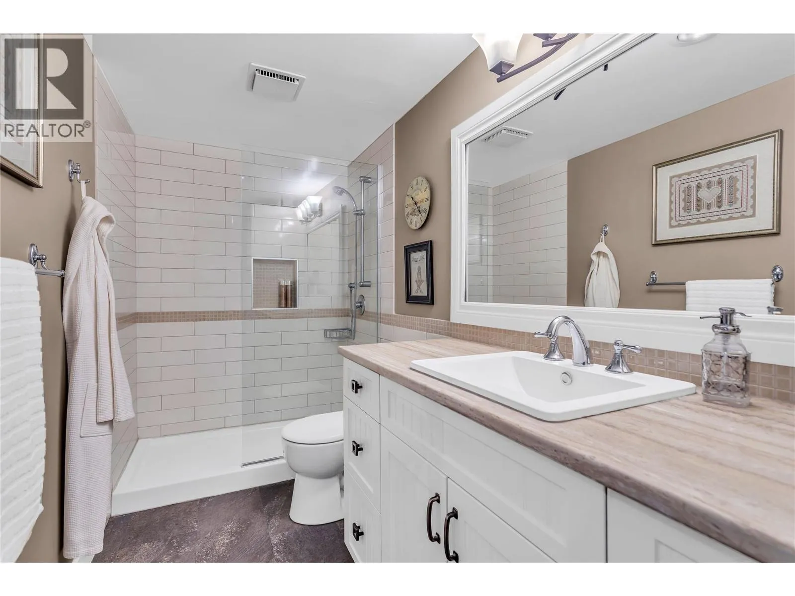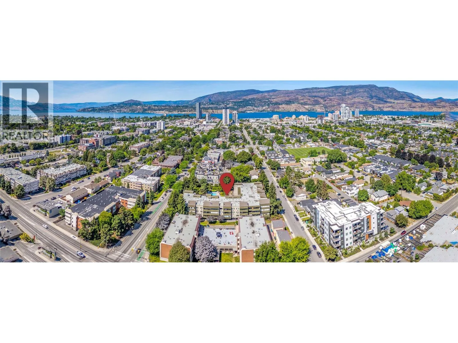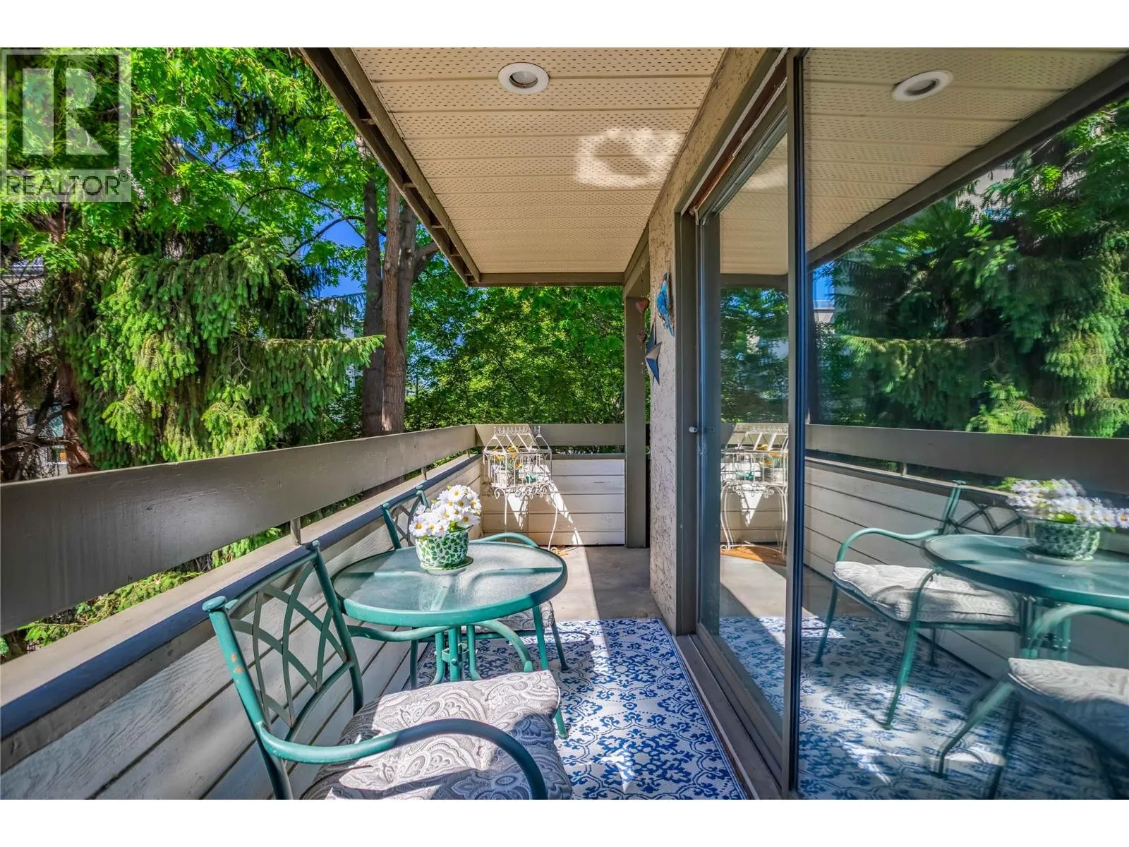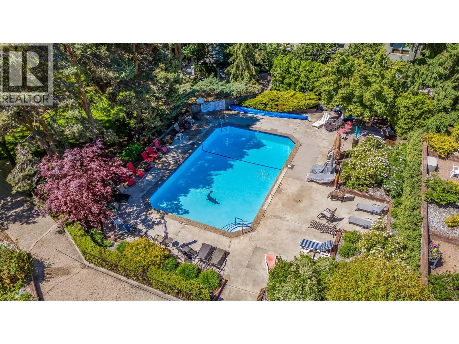 WELCOME TO #216-1056 BERNARD AVENUE! LARGEST IN THE COMPLEX AT 1314 SF. This Beautifully UPDATED 2 Bedroom 2 Bathroom QUIET CORNER UNIT in a 55+ community features a private WRAP AROUND DECK with SW EXPOSURE and LOVELY views overlooking the POOL and LUSH COURTYARD. Updates include: vinyl flooring throughout, a stylish professionally designed kitchen with quartz countertops, stainless steel appliances (double oven), pantry, sit-up breakfast bar plus a full main bath renovation. The spacious primary bedroom easily accommodates a king-size bed & features ""his & her"" closets and a full ensuite. Updated wall A/C units, in-suite laundry, and convenient pantry/storage room off kitchen. Bonus flex space with built-in shelving is perfect for a den or extended living room. Workshop and storage unit in secured parking garage. 1 parking stall with potential option to rent a second. Enjoy RESORT STYLE AMENITIES: Outdoor pool, indoor hot tub and saunas! PET FRIENDLY! (2 dogs/cats or 1 of each, dogs not to exceed 12kg & 24â at shoulder). IDEALLY LOCATED across from grocery stores, pharmacy, restaurants and medical services-just a short walk to downtown and the beachâ¦Move in and embrace the Okanagan Lifestyle at 1056 Bernard! (id:27476)