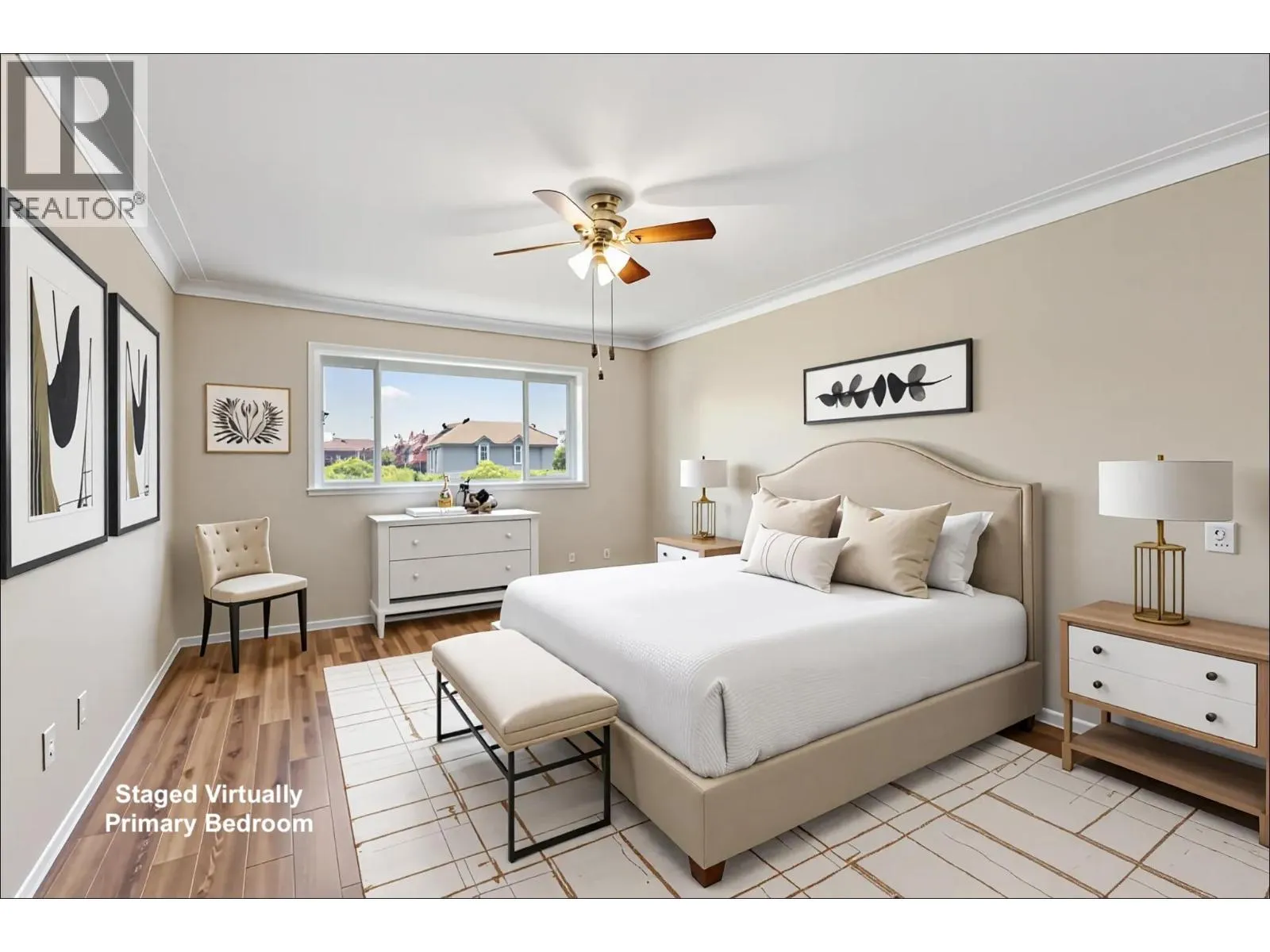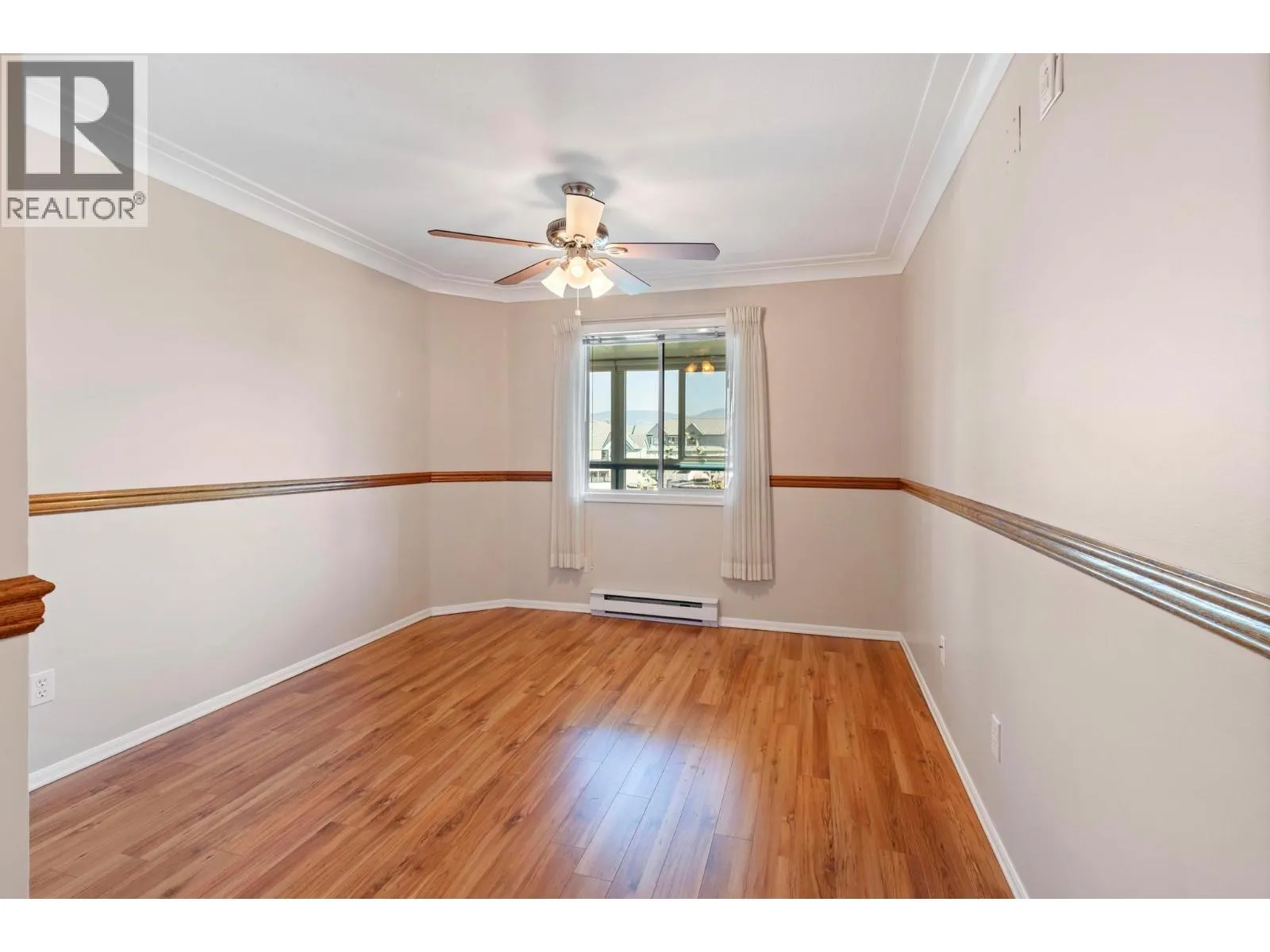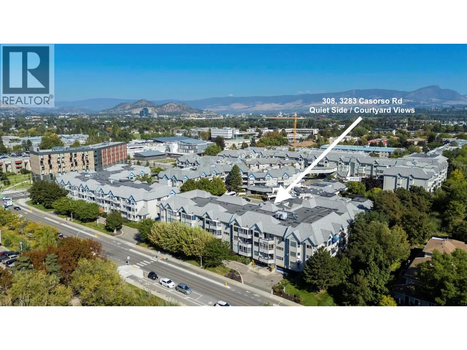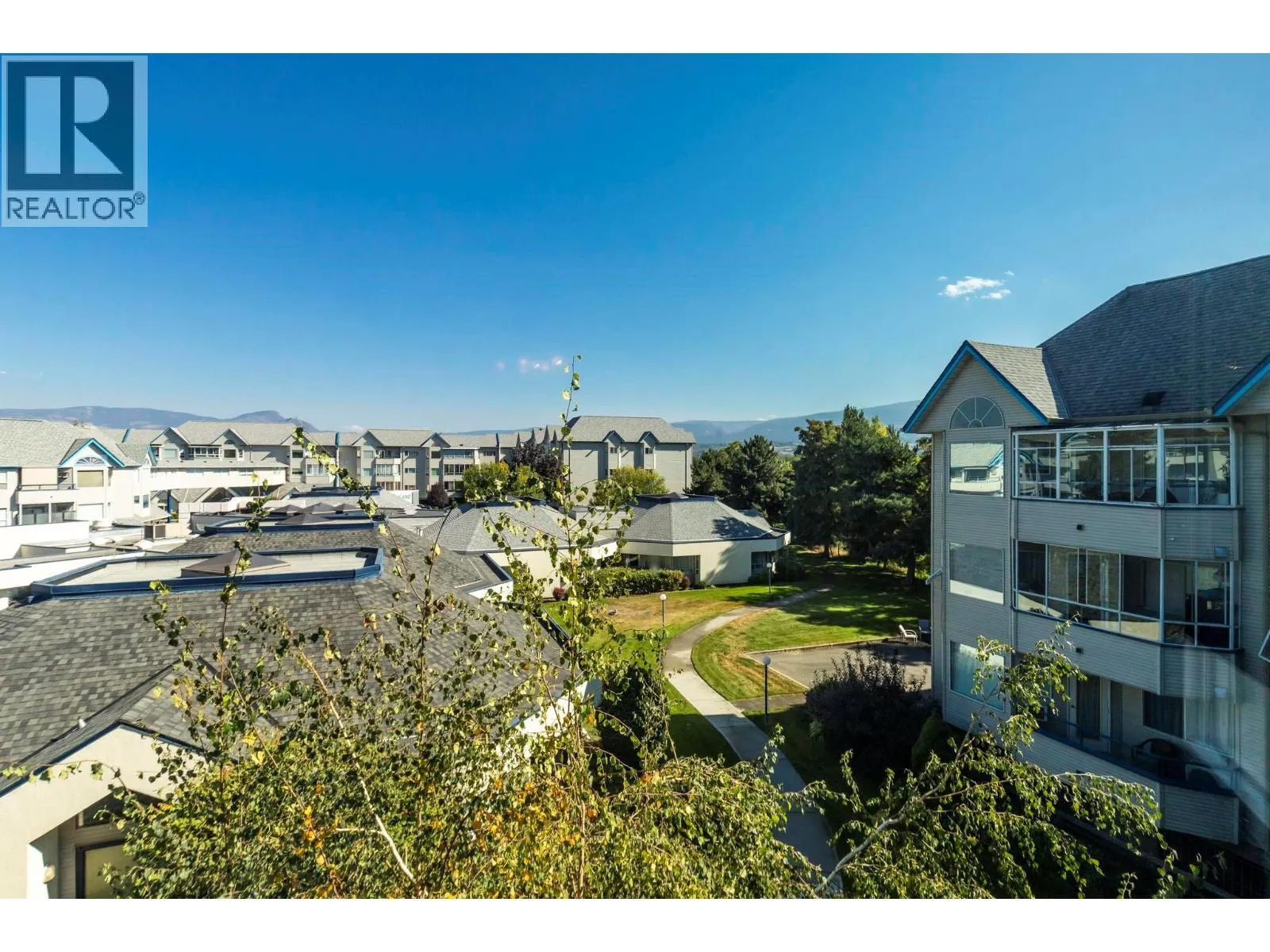 Available immediately - Immaculate bright and open Top floor Vaulted 2 Bed 2 Bath condo with stylish contemporary updates in this sought after 55+ complex! Ideally located in Kelowna's best neighborhood - South Pandosy - walk to beaches, shopping, dining, health care, or simply stroll across the courtyard for an afternoon swim or workout! This home will impress immediately walking through the door as the East facing windows cast brilliant sunlight throughout. With generous size rooms, a Primary (Master) with spacious his & her closets and a convenient large walk in shower in the ensuite bathroom. You'll find a cheerful and bright interior with no carpets, soaring vaulted living room ceiling and crown moldings throughout. From the generous U-shaped Kitchen with newer stainless appliances and pass-through, the family sized dining, and living room large enough to host family gatherings, you can downsize without sacrifice! Add to that each of the 2 spacious bedrooms offer peaceful mountain views to the East/South-east. This home shows pride of ownership and has been well cared for! Move in ready and offers a large separate pantry off the kitchen. Hawthorn Condos are part of a 55+ community that offers many amenities to choose from with access to Hawthorn Park for a low $45/m Resort Fee, and easy transition to Assisted Living if desired. $75/night Guest Rooms are also available. The unit is vacant and Available for Quick possession! (some photos staged) Call before it's sold! (id:27476)