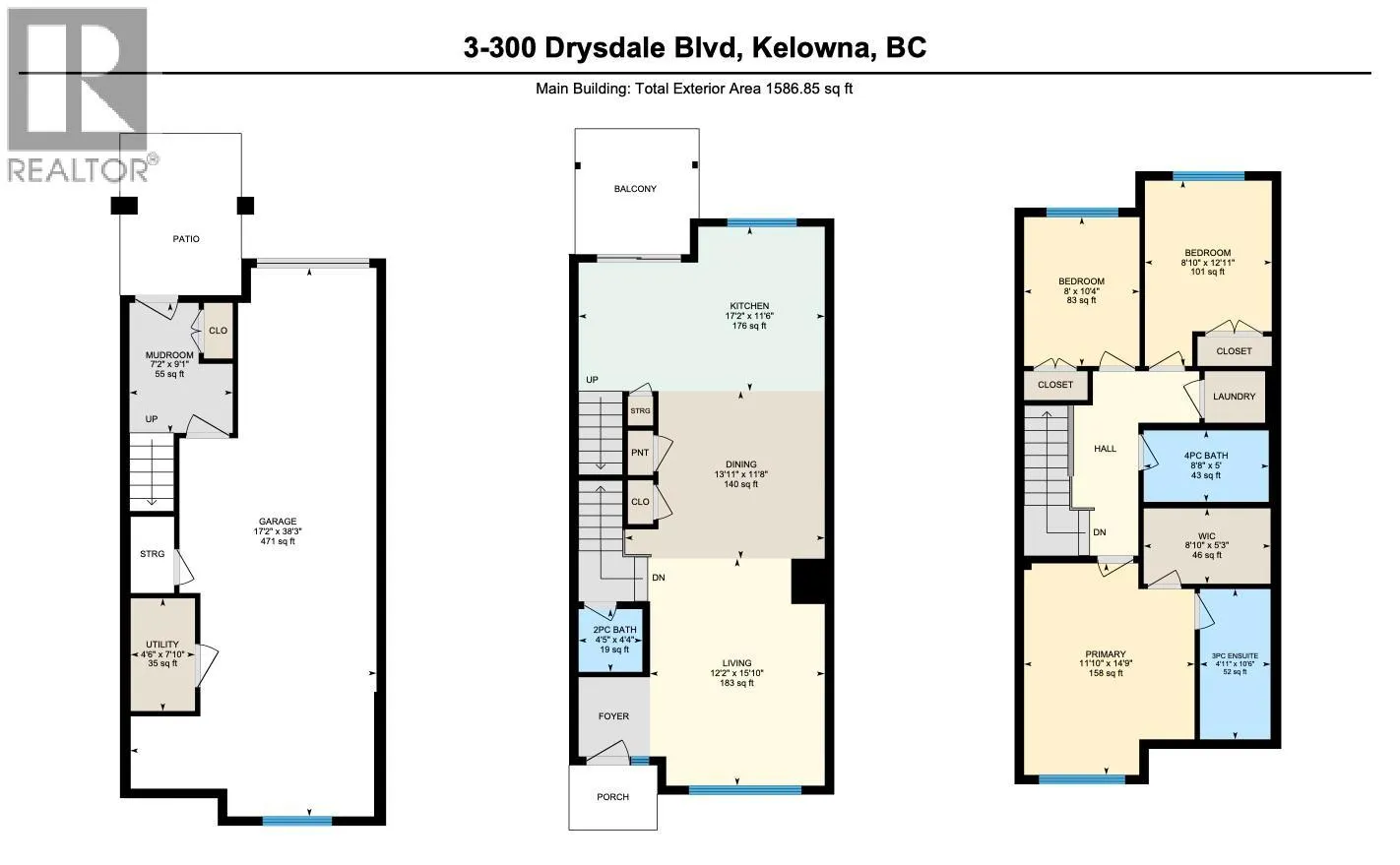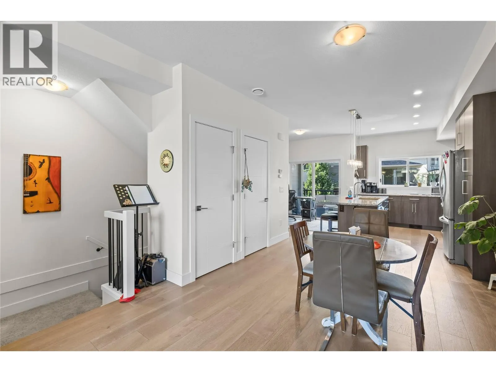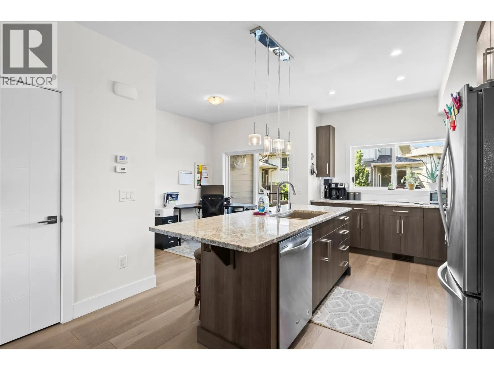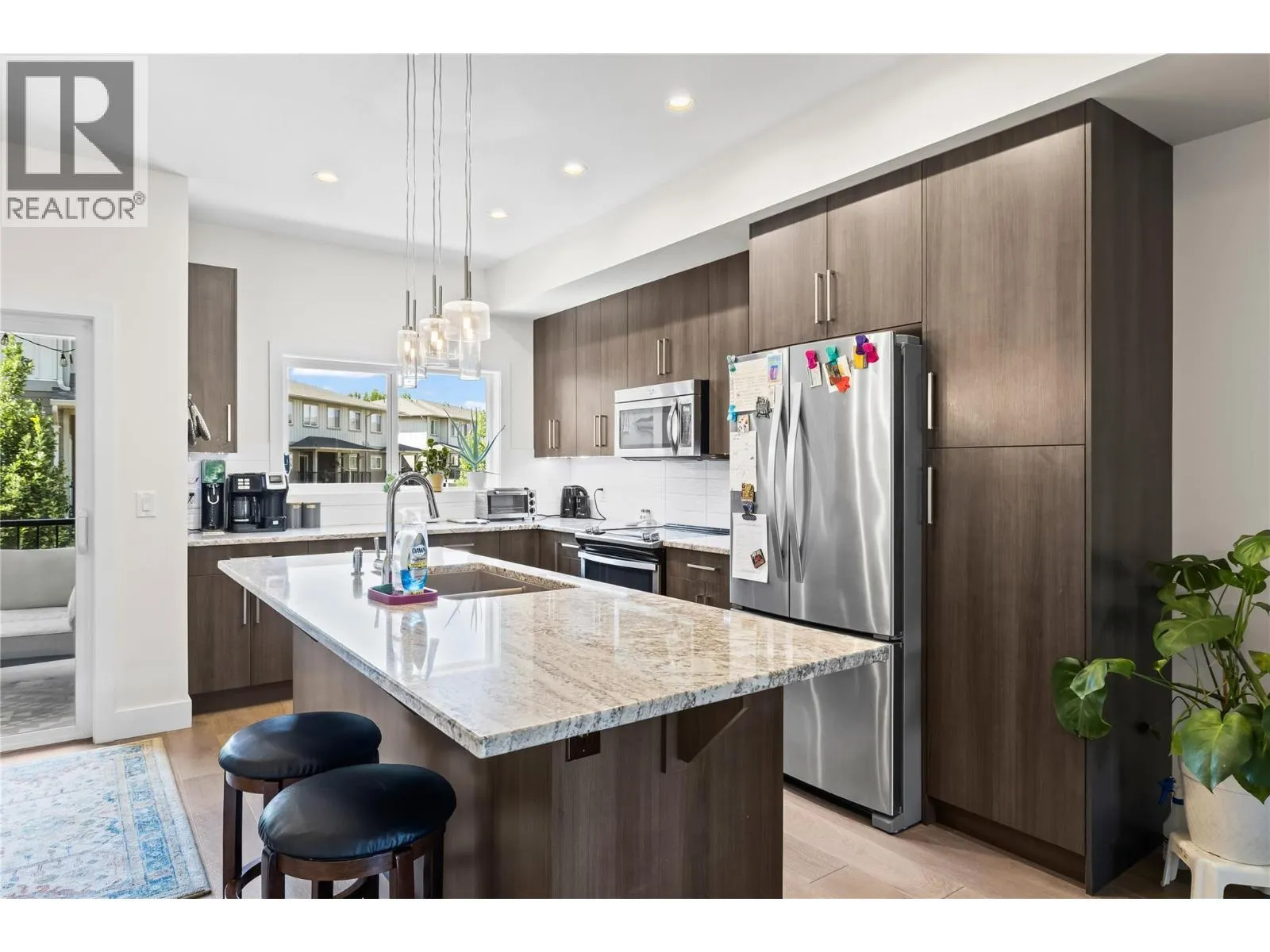Welcome to The Grove, a well-maintained townhome community in the heart of family-friendly North Glenmore. This 1,587 sq. ft. 3 bed, 3 bath home is move-in ready and features an open-concept floor plan, perfect for modern living. The spacious kitchen offers a large island, stainless steel appliances, and direct access to a covered balcony ideal for outdoor dining. The main level also includes a generous front patio, great for morning coffee or entertaining. You'll appreciate the built-in vacuum system and ample storage throughout the home. Upstairs, youâll find three bedrooms and a full bathroom. The primary suite features a walk-in shower and a large walk-in closet with built-in organizers. The ground level includes a double tandem garage with potential space for a home gym, office, or flex room. Conveniently located just steps from Save-On-Foods, IGA Marketplace, and public transit, and only a 2-minute drive to École Dr. Knox Middle School. UBCO and Kelowna International Airport are just 10 minutes away. The Grove is pet-friendly with no height, weight, or breed restrictions for dogs; plus there is an off-leash dog park nearby. This is the perfect blend of comfort, convenience, and community. **AVAILABLE FOR QUICK POSSESSION** (id:27476)