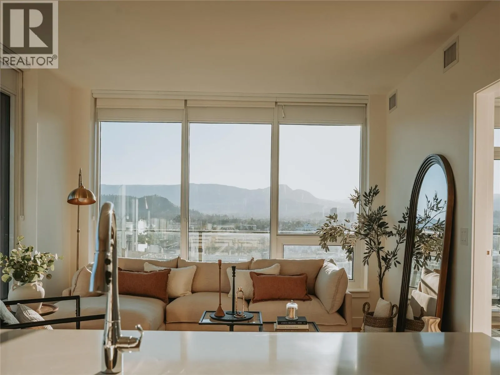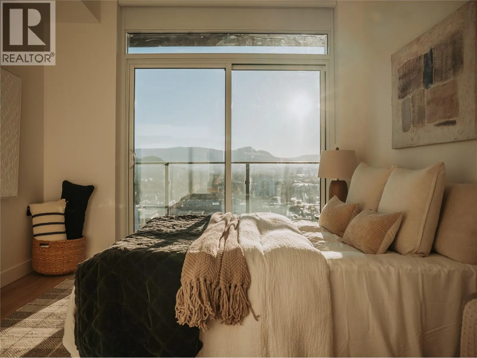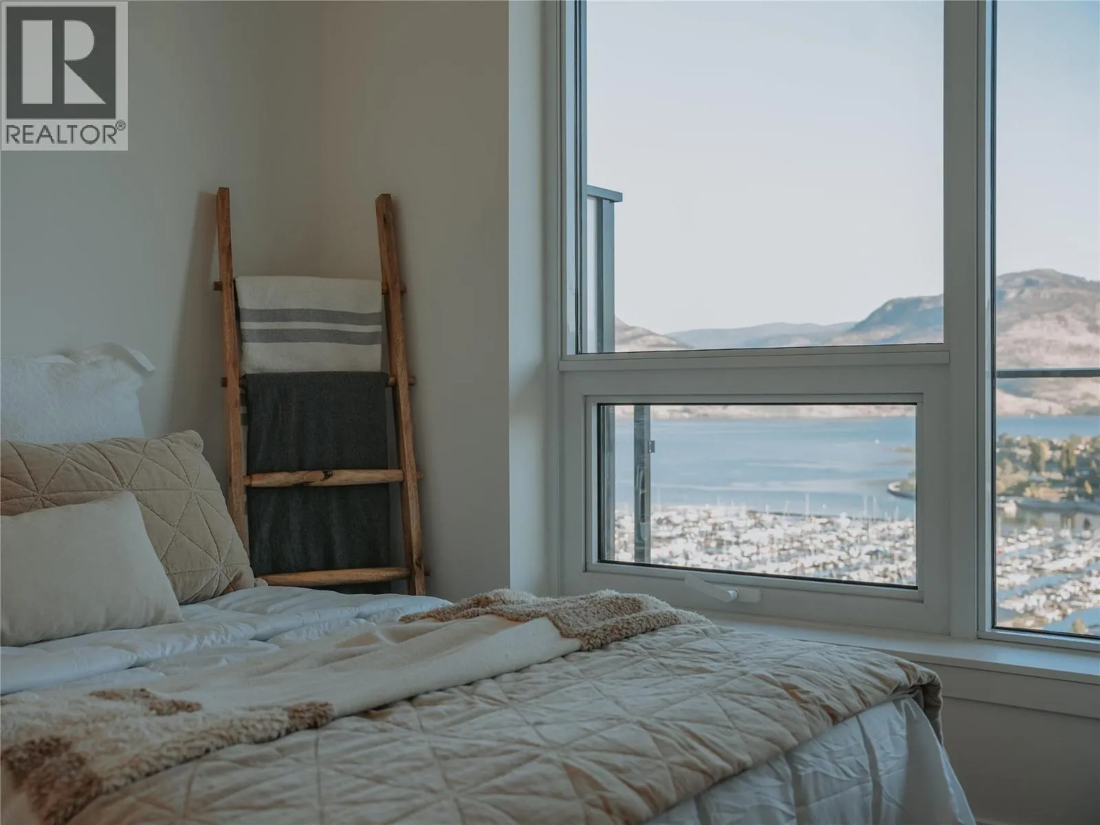 Priced at Seller's Loss for a Quick Sale! Exceptional opportunity awaits for you at Water Street by the Park. Situated on Northeast corner on the 17th floor of the 42 storey Eli Tower, this two bedroom, two bathroom home offers the perfect height and perspective to enjoy breath taking lake, marina, city and mountain valley views. With 870 square feet of indoor living plus 348 square feet of wrap around patio, the vibrant city scene or the morning sun will have you basking in your own space. Clean lines, and a light airy colour scheme offer an ideal canvas for you to make this your home. Feeling social? Kelowna's newest downtown towers boast amenities rivalling all others. The sixth floor podium that separates the two towers hosts an outdoor pool with an abundance of lounging spots, firepits, hot tubs, dog park, putting green and bocce ball. An indoor games room has an arcade, billiards, chess, golf simulator, and lounge. With a craft room, spin room and a steam room post a workout in the fitness centre, you can cap the eve in a spacious lounge and theatre. You are a half block stroll to the beach or coffee shops, restaurants and entertainment venues. This is a pet friendly community and there are no short term rentals permitted. Gas BBQ outlet on your patio for personal convenience. Plenty of visitor parking, full time security and onsite concierge. This home is staged and the seller is welcoming a quick possession! (id:27476)