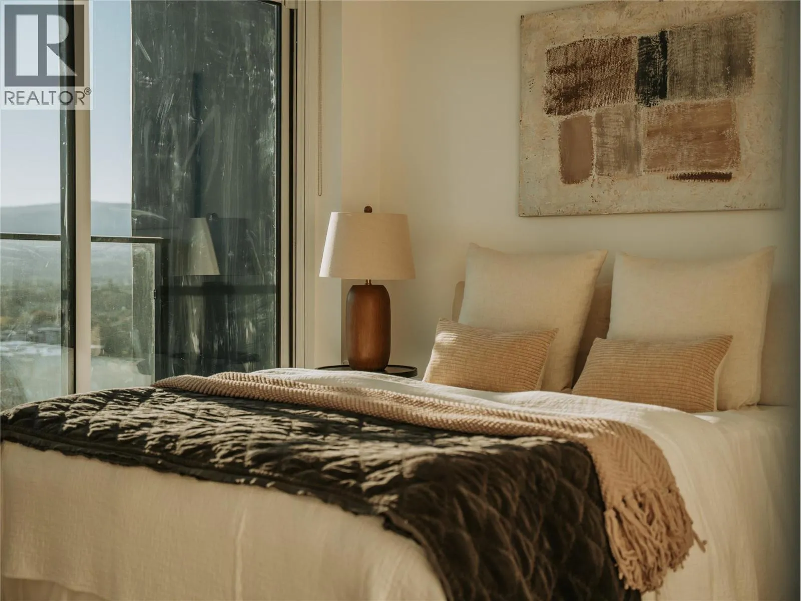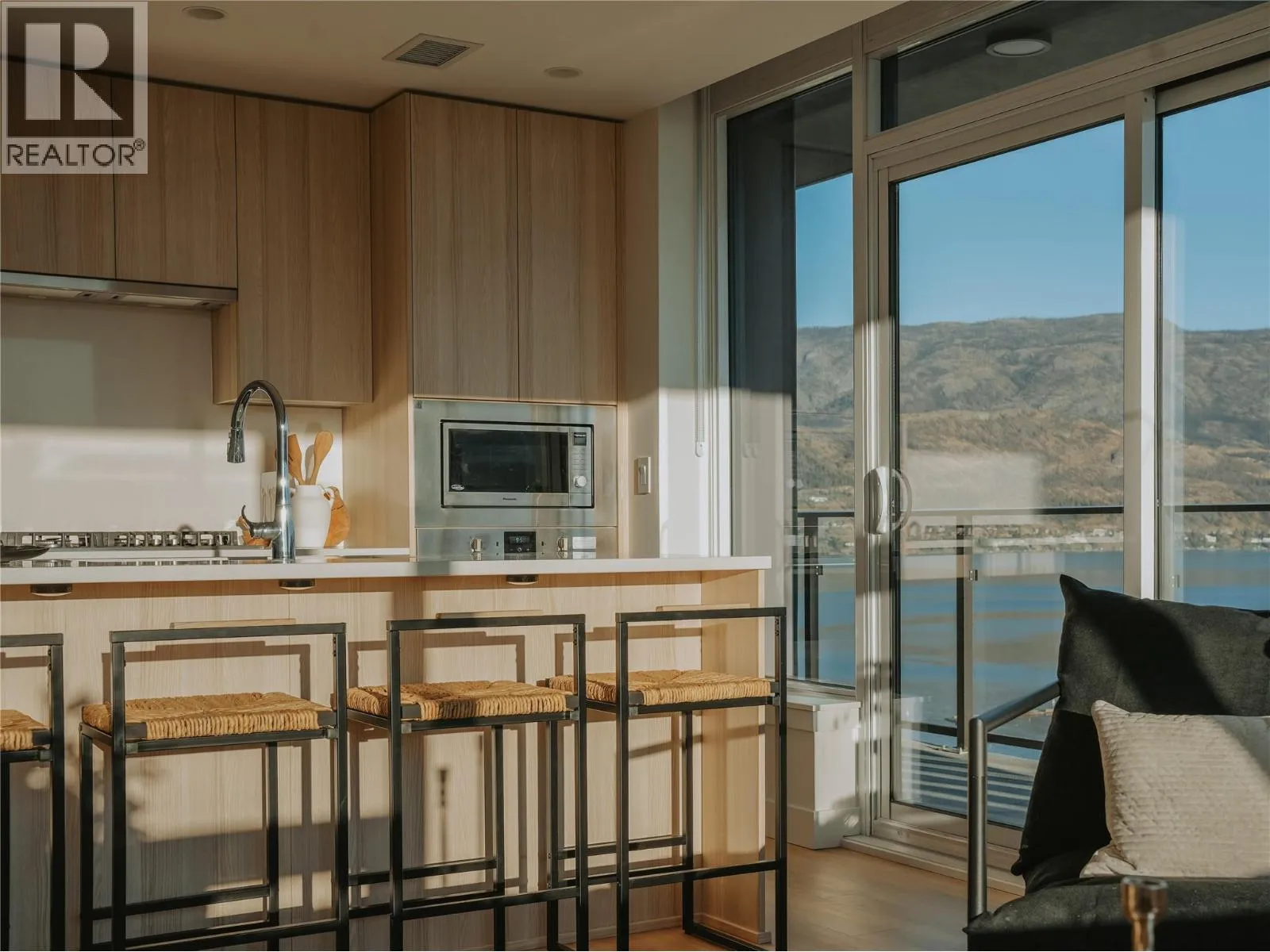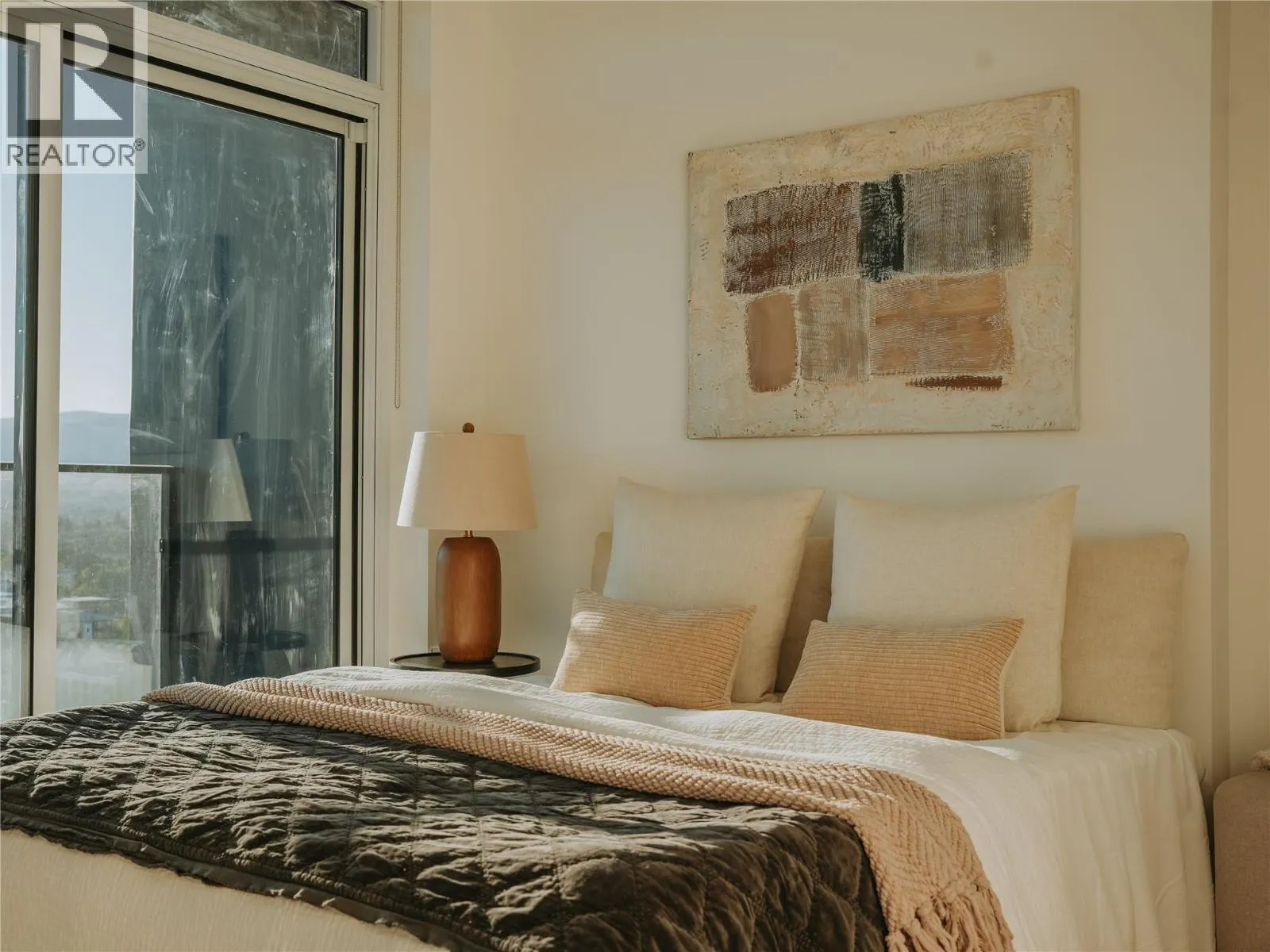 Priced at Seller's Loss for a Quick Sale! Exceptional opportunity awaits for you at Water Street by the Park. Situated on Northeast corner on the 17th floor of the 42 storey Eli Tower, this two bedroom, two bathroom home offers the perfect height and perspective to enjoy breath taking lake, marina, city and mountain valley views. With 870 square feet of indoor living plus 348 square feet of wrap around patio, the vibrant city scene or the morning sun will have you basking in your own space. Clean lines, and a light airy colour scheme offer an ideal canvas for you to make this your home. Feeling social? Kelowna's newest downtown towers boast amenities rivalling all others. The sixth floor podium that separates the two towers hosts an outdoor pool with an abundance of lounging spots, firepits, hot tubs, dog park, putting green and bocce ball. An indoor games room has an arcade, billiards, chess, golf simulator, and lounge. With a craft room, spin room and a steam room post a workout in the fitness centre, you can cap the eve in a spacious lounge and theatre. You are a half block stroll to the beach or coffee shops, restaurants and entertainment venues. This is a pet friendly community and there are no short term rentals permitted. Gas BBQ outlet on your patio for personal convenience. Plenty of visitor parking, full time security and onsite concierge. This home is staged and the seller is welcoming a quick possession! (id:27476)