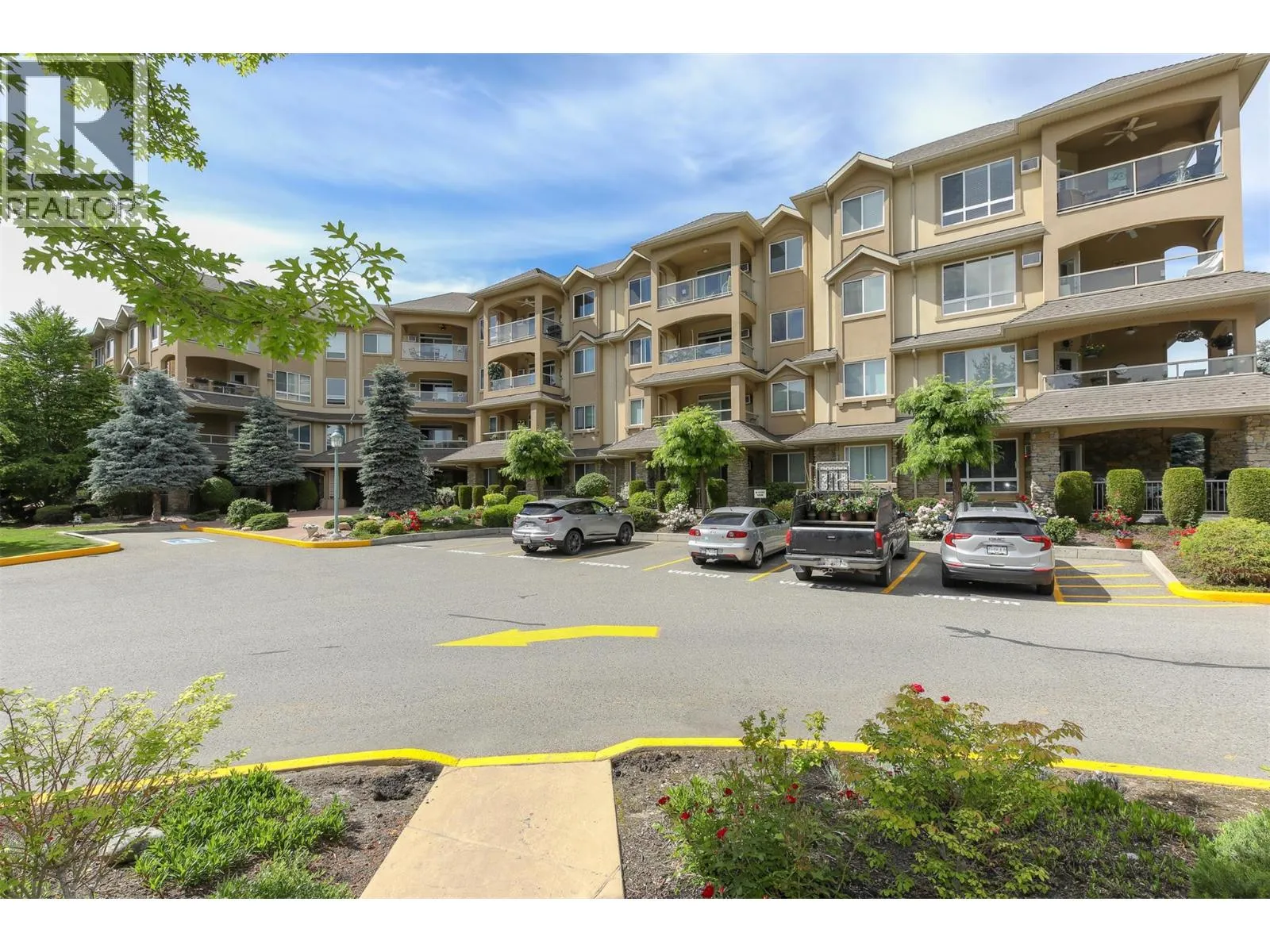 TOP FLOOR! Enjoy beautiful views of the pool and mountains from your covered balcony. The perfect spot for your morning coffee in the sunshine. This 2-bedroom, 2-bathroom condo offers a desirable split-bedroom layout for added privacy. The kitchen and bathrooms feature granite countertops, complemented by fresh paint throughout and a newer A/C unit. The spacious primary bedroom includes a full ensuite with double closets. Cozy up to the warmth of your gas fireplace in the winter or host endless barbeques in the summer, with gas conveniently included in your strata fees. Additional perks include a storage locker located just down the hall and a dedicated bicycle/tire storage room in the underground parkade. Meadowbrook is sought after for its resort feel. Whether you like lounging poolside in the sun or having some laughs over a game of pool with friends in the newly remodelled clubhouse, it's a perfect place to call home. Amongst the amenities are 3 guests suites with low nightly rates. Meadowbrook is centrally located, just a stoneâs throw away from transit, shopping, recreation & the rail trail. (id:27476)
