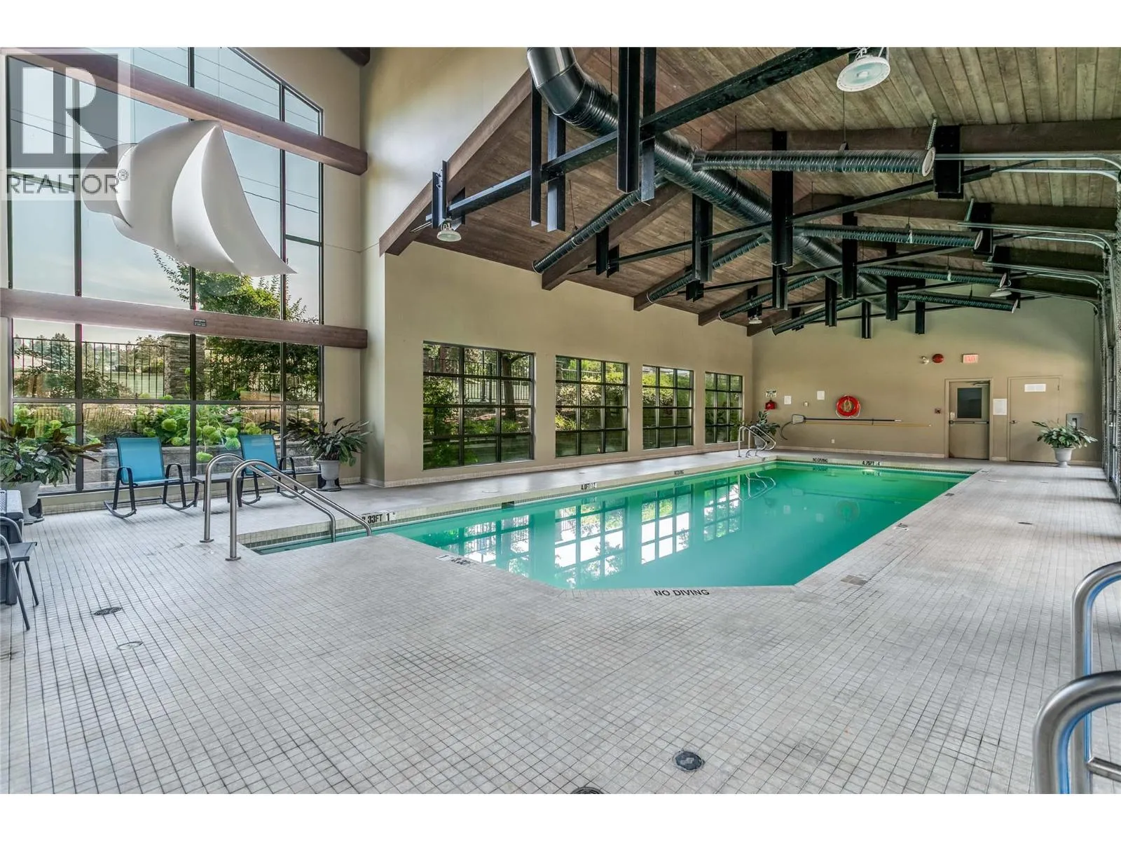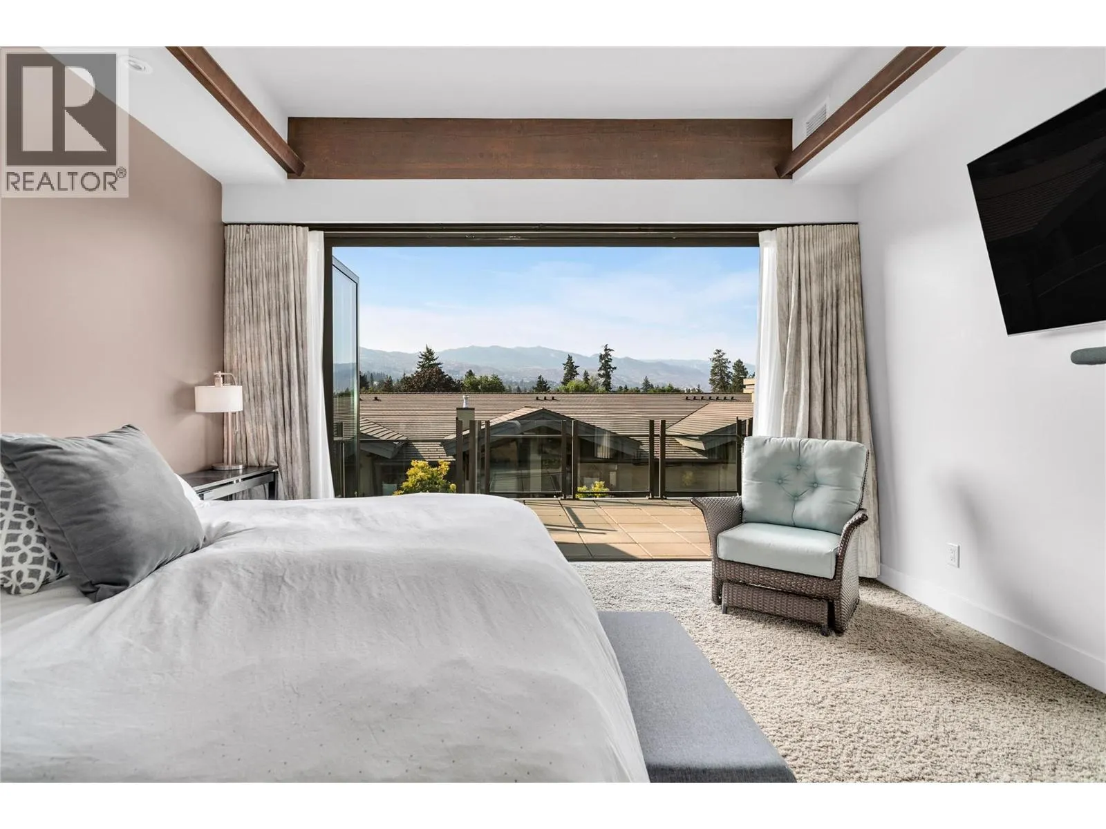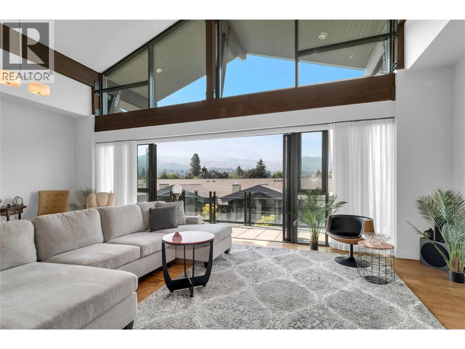 Discover refined living in the heart of Kelownaâs sought-after Lower Mission. This top floor unit is 1,536 sq. ft. 2-bedroom, 2-bathroom penthouse Boasting 18-foot vaulted ceilings and an impressive 25-foot Nano Wall, the open-concept living space seamlessly expands onto a stunning 500 sq. ft. balcony. Surrounded by mountain views and peaceful greenery, itâs the perfect place to entertain or unwind. Inside, tasteful design is evident throughout with granite countertops, Jenn Air appliances, and abundant natural light creating a bright, spacious atmosphere. The primary suite is a true retreat with its own Nano Wall opening to the patio, a spa-inspired ensuite featuring a steam shower, and a generous walk-in closet. Two secure indoor parking stalls and a storage locker add convenience, while the well-groomed Southward at Sarsons community offers manicured gardens and a tranquil setting. Located within walking distance to Sarsons Beach, scenic parks, and boutique shopping, this home blends upscale comfort with everyday practicality. A rare opportunity to own an elegant, light-filled penthouse in a premier Kelowna neighbourhood. (id:27476)