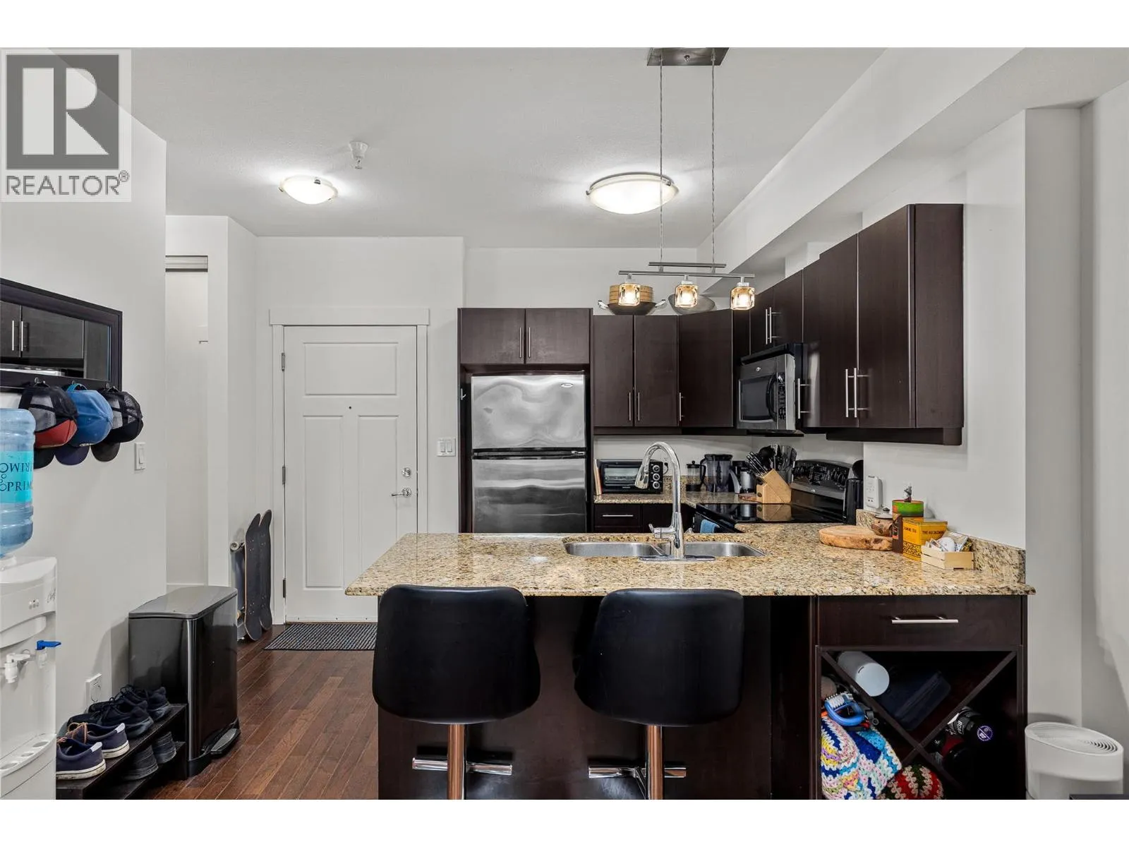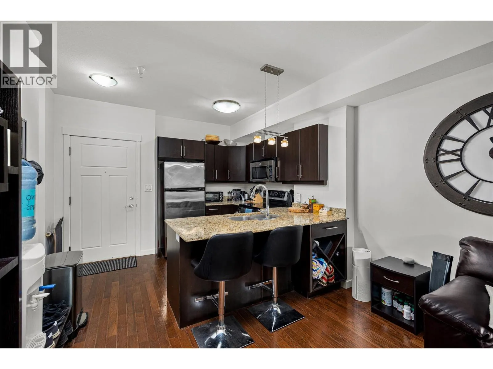 Are you looking for a stylish and secure home that is cost-effective? Look no furtherâyou may have found your perfect match! Imagine living right in the heart of Kelowna's fastest-growing urban hub, just minutes from the University and 10 minutes from downtown or the lake. The Mosaic is a highly sought-after building known for its quality construction and design. The very reasonable condo fees include use of the gym, and the design and décor of the building make it a desirable destination. This charming 1 bedroom unit is well-built and well laid out, situated off the ground floor for additional security and safety. This home has many thoughtful touches and all the hallmarks of practical design. It offers a functional floor plan and a living space you will be proud to show your friends. The balcony is a wonderful place for morning coffee, or you can walk to Starbucks, Tim Hortons, McDonald's, or the famous neighborhood hub, Brandt's Creek. There are also boutique restaurants and stores close by. No matter how far you wander in the local park areas, you will always yearn to be home, enjoying the relaxed elegance of your beautiful living space. If you are ready to call the most prestigious building in this highly sought-after neighborhood home, book a viewing today and set aside some time to explore the area on foot while you are thereâyou will not be disappointed! (id:27476)
