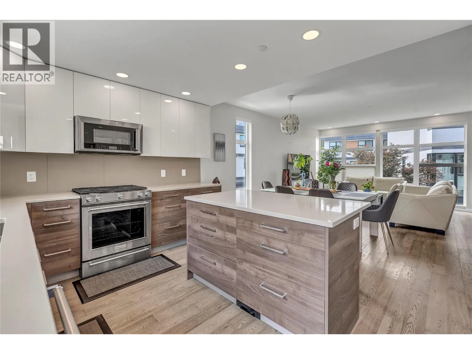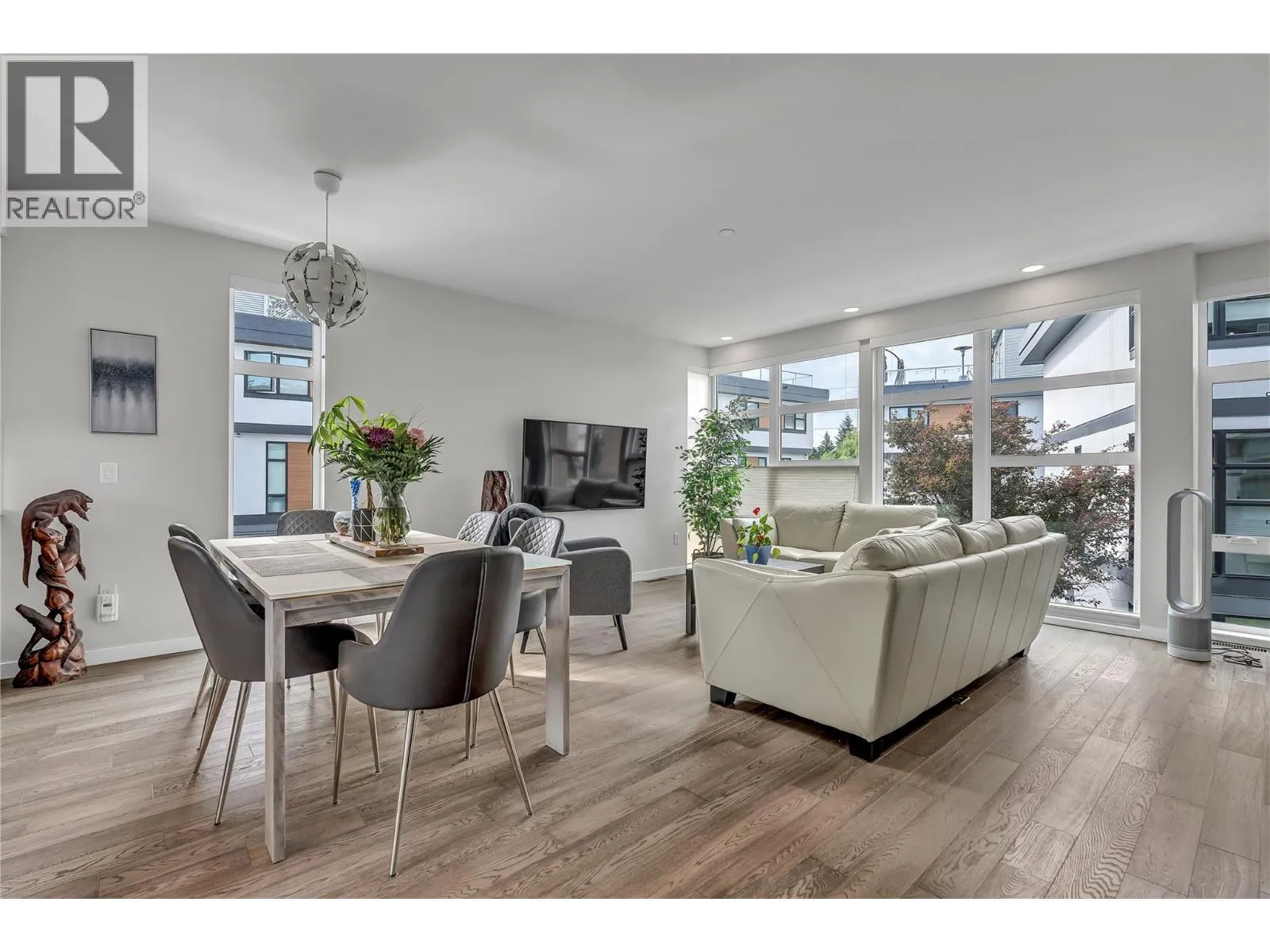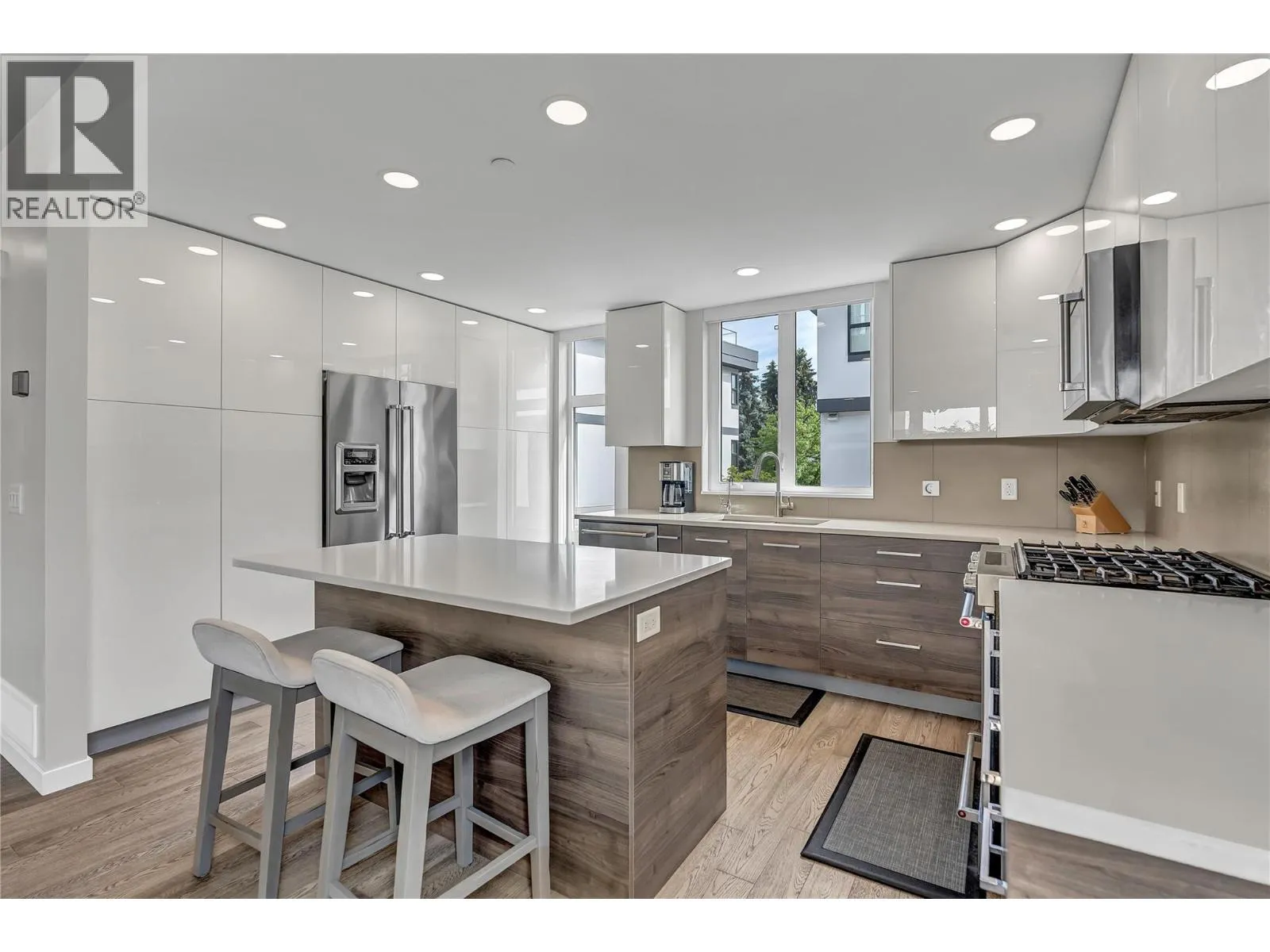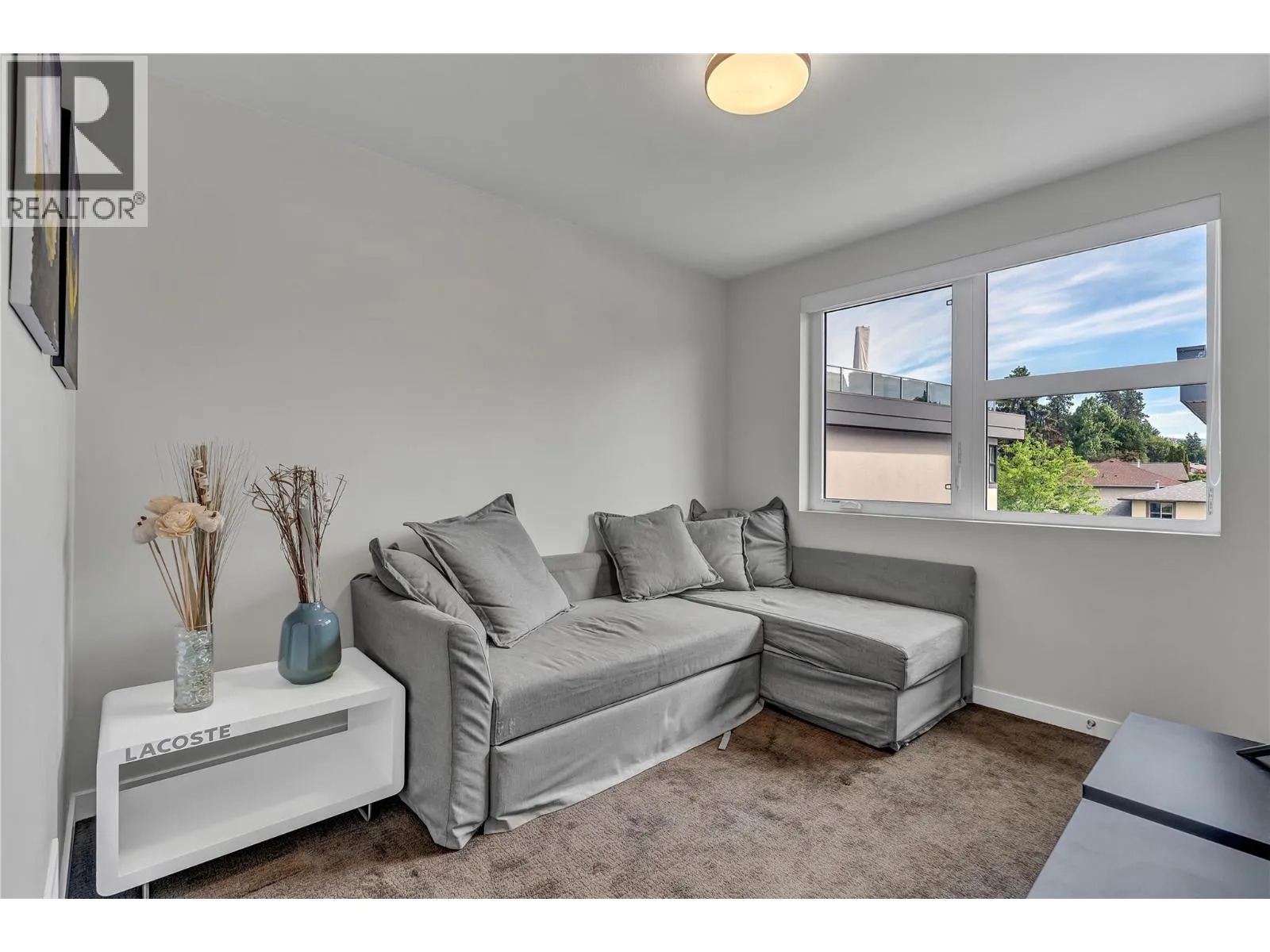 Welcome to Skyview Terraces, where form and function blend perfectly with upscale design and finishings, away from the hustle and bustle of downtown, but conveniently located within a short bike ride to all that downtown Kelowna has to offer. This end unit is located within a quiet location in the complex, near to visitor parking, and has an array of extra windows for added natural light. From the front door you are welcomed to a warm and inviting foyer, with access to the ground level bedroom/office and double car garage. Up from here you will find the inside entertainment level, with designer two tone kitchen including gas stove, cabinet space galore, light and bright living space, and the guest bath/laundry room, complete with newer Samsung washer and dryer. On the next floor are three well sized bedrooms, including the primary with 4 piece ensuite including heated floors and heated towel rack. The upper most level is the real focal point of this entire property, with the roof top deck, including synthetic lawn, a hot tub, and natural gas bib for your bbq; this is the space to soak in the sun and entertain your friends and family on a golden Kelowna summer night. The strata allows 1 dog or 1 cat and a minimum 3 month rental. Heating and cooling is through Geothermal, and there is newly installed hot water on demand unit. (id:27476)