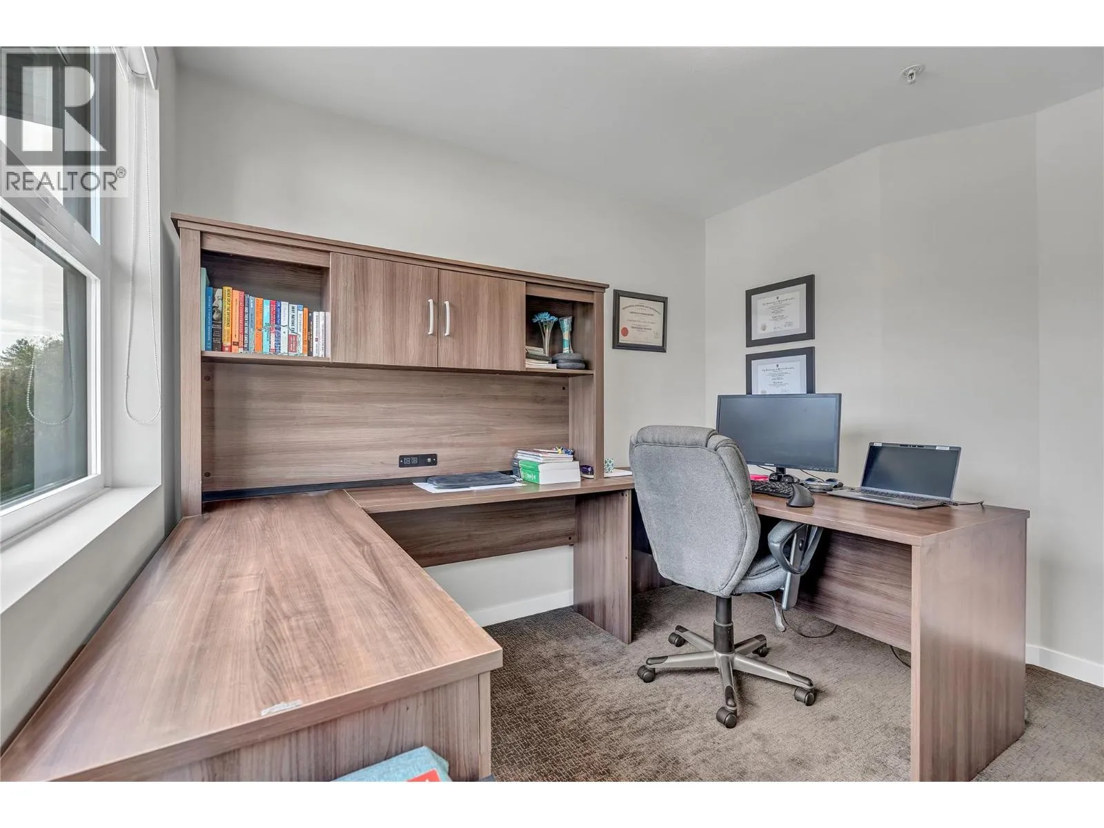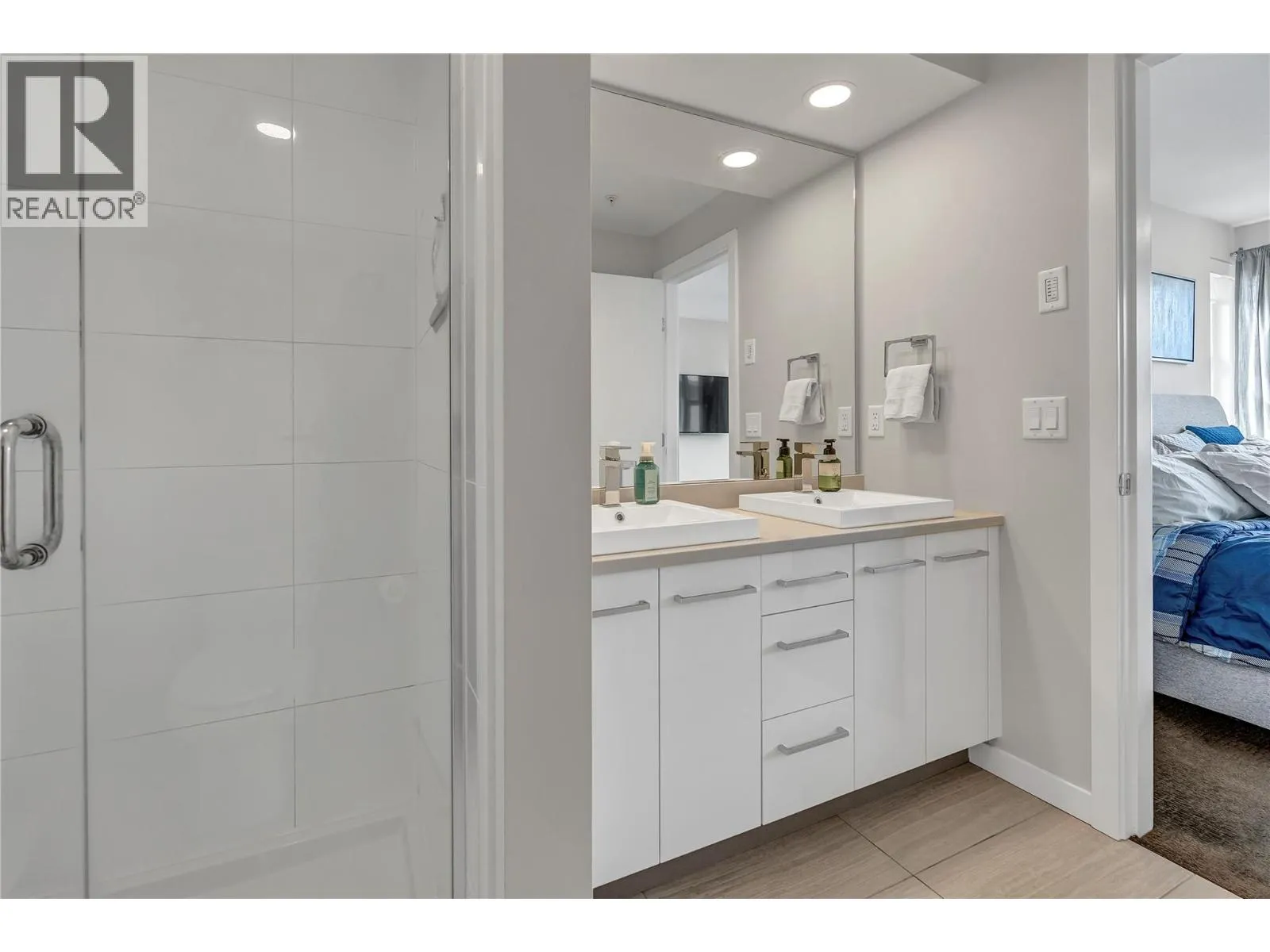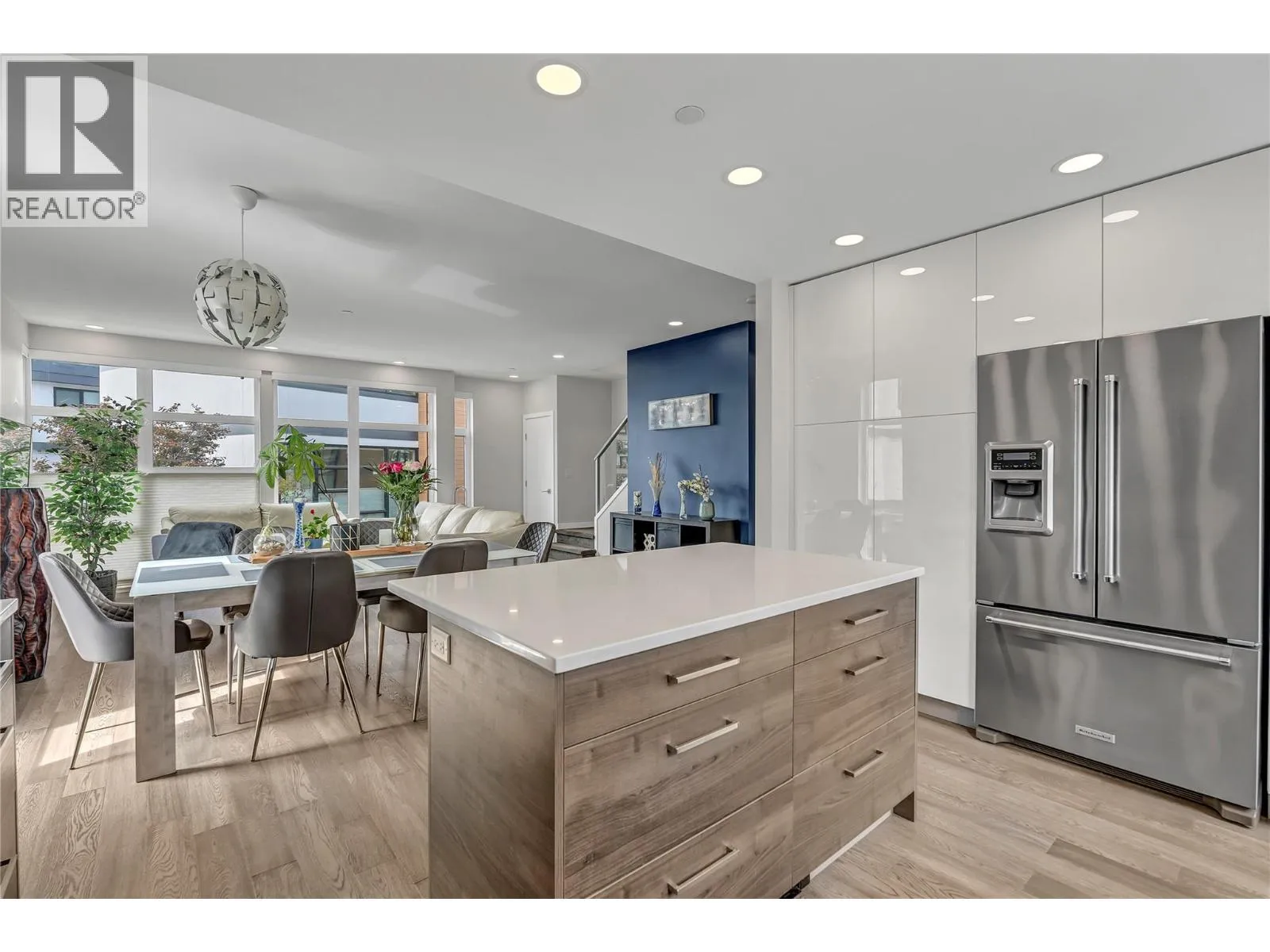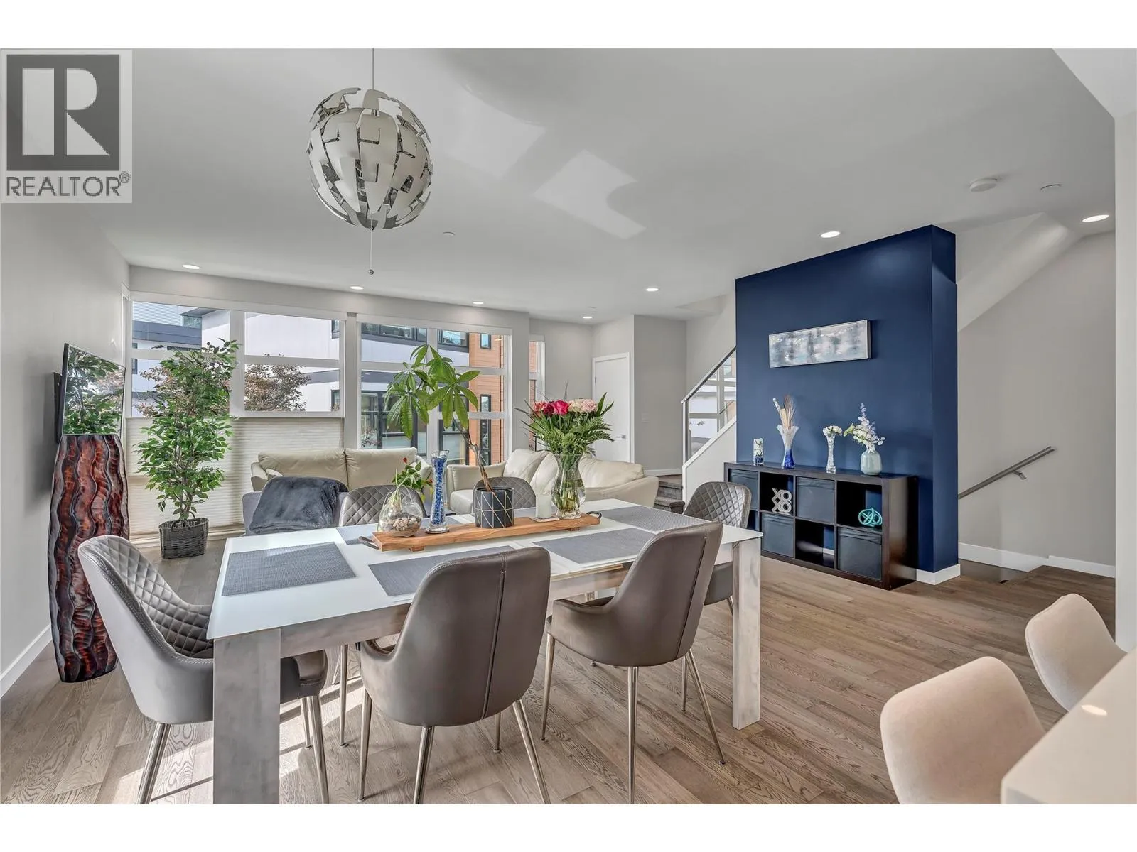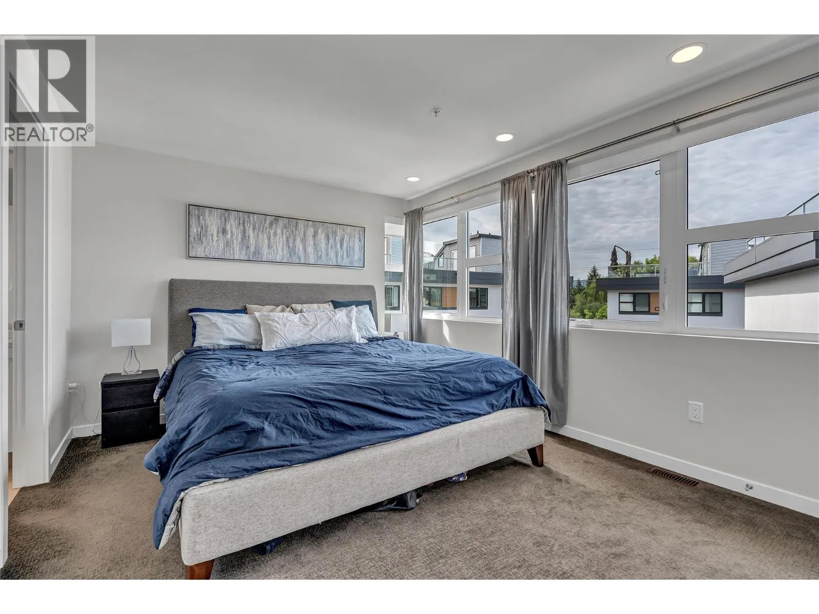 Welcome to Skyview Terraces, where form and function blend perfectly with upscale design and finishings, away from the hustle and bustle of downtown, but conveniently located within a short bike ride to all that downtown Kelowna has to offer. This end unit is located within a quiet location in the complex, near to visitor parking, and has an array of extra windows for added natural light. From the front door you are welcomed to a warm and inviting foyer, with access to the ground level bedroom/office and double car garage. Up from here you will find the inside entertainment level, with designer two tone kitchen including gas stove, cabinet space galore, light and bright living space, and the guest bath/laundry room, complete with newer Samsung washer and dryer. On the next floor are three well sized bedrooms, including the primary with 4 piece ensuite including heated floors and heated towel rack. The upper most level is the real focal point of this entire property, with the roof top deck, including synthetic lawn, a hot tub, and natural gas bib for your bbq; this is the space to soak in the sun and entertain your friends and family on a golden Kelowna summer night. The strata allows 1 dog or 1 cat and a minimum 3 month rental. Heating and cooling is through Geothermal, and there is newly installed hot water on demand unit. (id:27476)