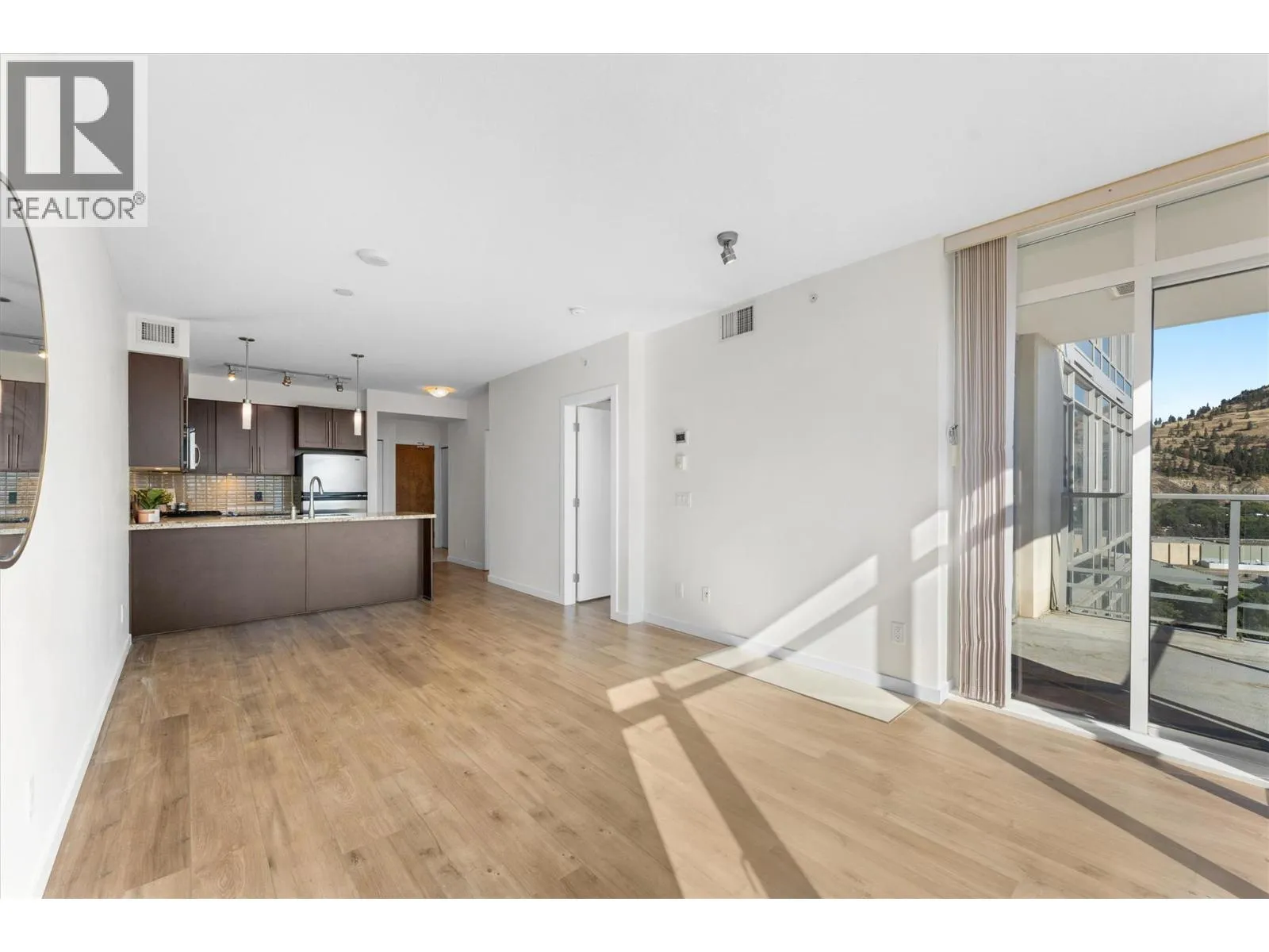 Live the downtown Kelowna lifestyle in this spacious & bright 1 bedroom plus den 14th-floor condo. Located in the sought-after Skye Tower at Waterscapes, offering views of the city, mountains, and the lake. Perfectly situated this condo combines comfort and convenience in one of Kelownaâs most desirable communities. Inside, you'll find an open concept floor plan with bright south facing windows, plus upgrades including hard surface flooring throughout, granite countertops, and stainless steel appliances. The building offers secure underground parking for both residents and guests, along with fob-controlled access to each floor for added peace of mind. As a resident you enjoy access to the Cascade Club featuring a private fitness room, billiards lounge, outdoor pool, two hot tubs and BBQ area. You also get access to furnished guest suites. Everything you need is within walking distance â restaurants, shopping, hotels and Prospera Place for hockey games and events. Nature lovers will appreciate nearby Knox Mountain Park with its scenic trails and unbeatable lake views. Your new home awaits. (id:27476)