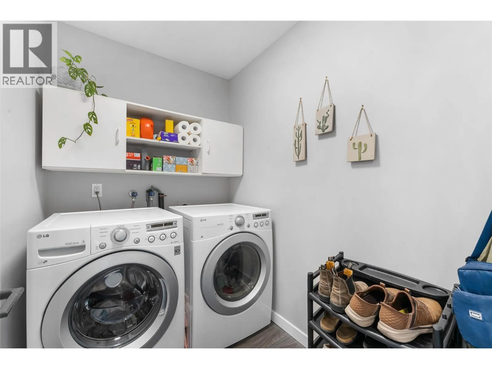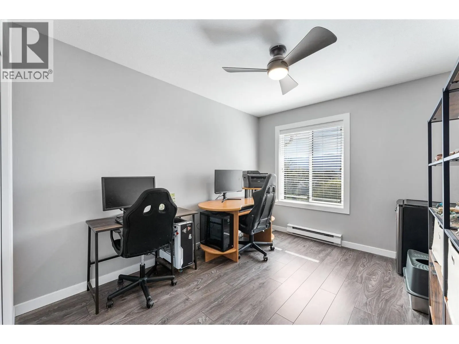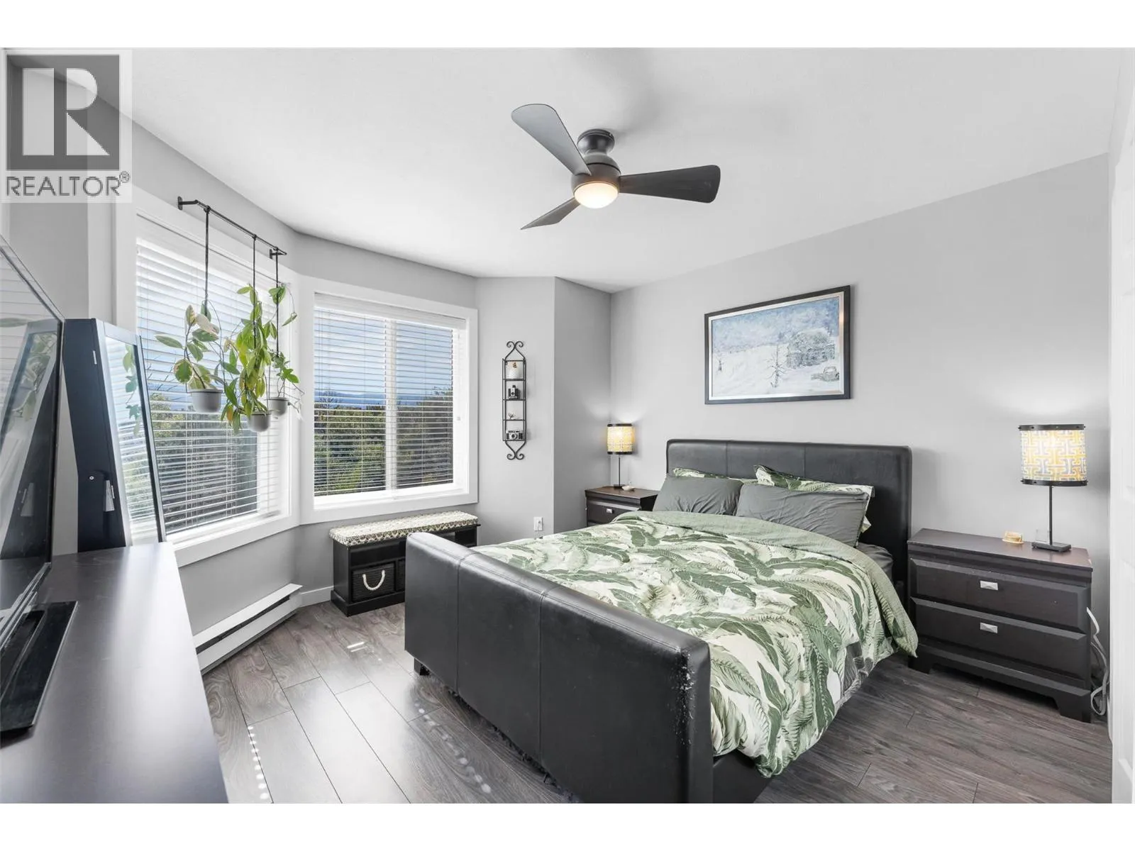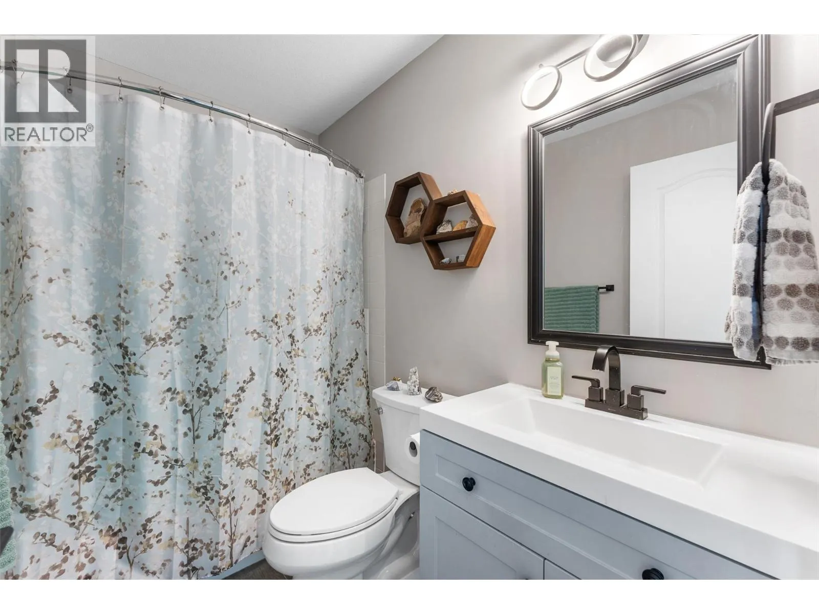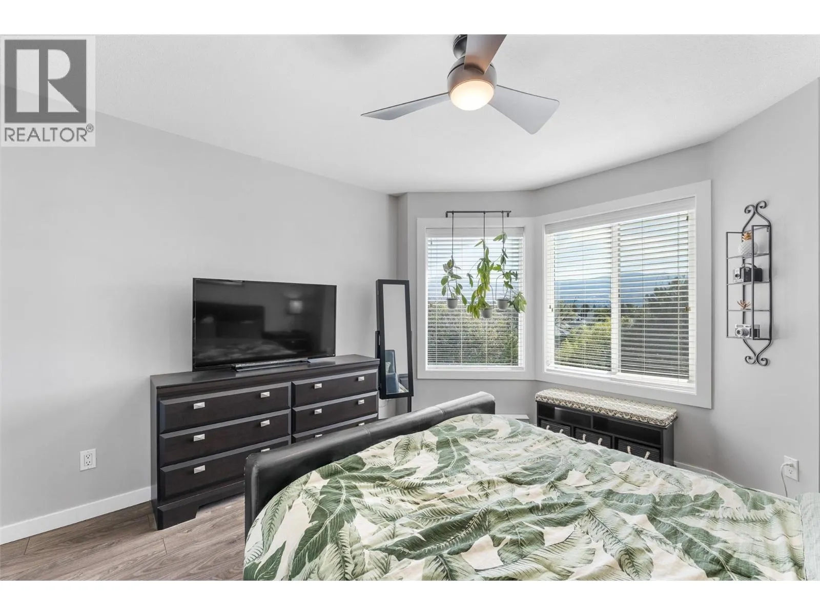 Welcome to Creekside Villas, perfectly positioned in the heart of Kelownaâs Lower Mission. This top-floor end unit, set on the quiet side of the building, offers 2 bedrooms and 2 bathrooms, thoughtfully updated interiors, and peaceful creek viewsâa seamless blend of comfort, style, and convenience. Inside has fresh paint, wide-plank laminate floors, and new lighting (all 2019â2020) creating a bright, inviting atmosphere. The kitchen is designed for both style and efficiency with abundant cabinetry, a pantry, tiled backsplash, and stainless appliances. The open-concept dining and living area flows effortlessly to a covered balcony with creek and park viewsâperfect for morning coffee or evening relaxation. The primary suite features two windows framing natural greenery, a double closet, and a renovated ensuite bathroom. A second bedroom and renovated 4-piece bathroom provide flexibility for family or guests. Additional highlights include in-suite laundry with storage, updated windows and patio doors (2024), and thoughtful finishes throughout. Residents of Creekside Villas enjoy exceptional amenities: a pool, hot tub, sauna, fitness centre and secure RV/Boat parking. With just one common wall, this home ensures privacy while offering the benefits of community living. One assigned parking stall and two open parking permits included. Ideally located minutes from shopping, restaurants, beaches, and Okanagan College, this home offers the perfect balance of lifestyle and value. (id:27476)