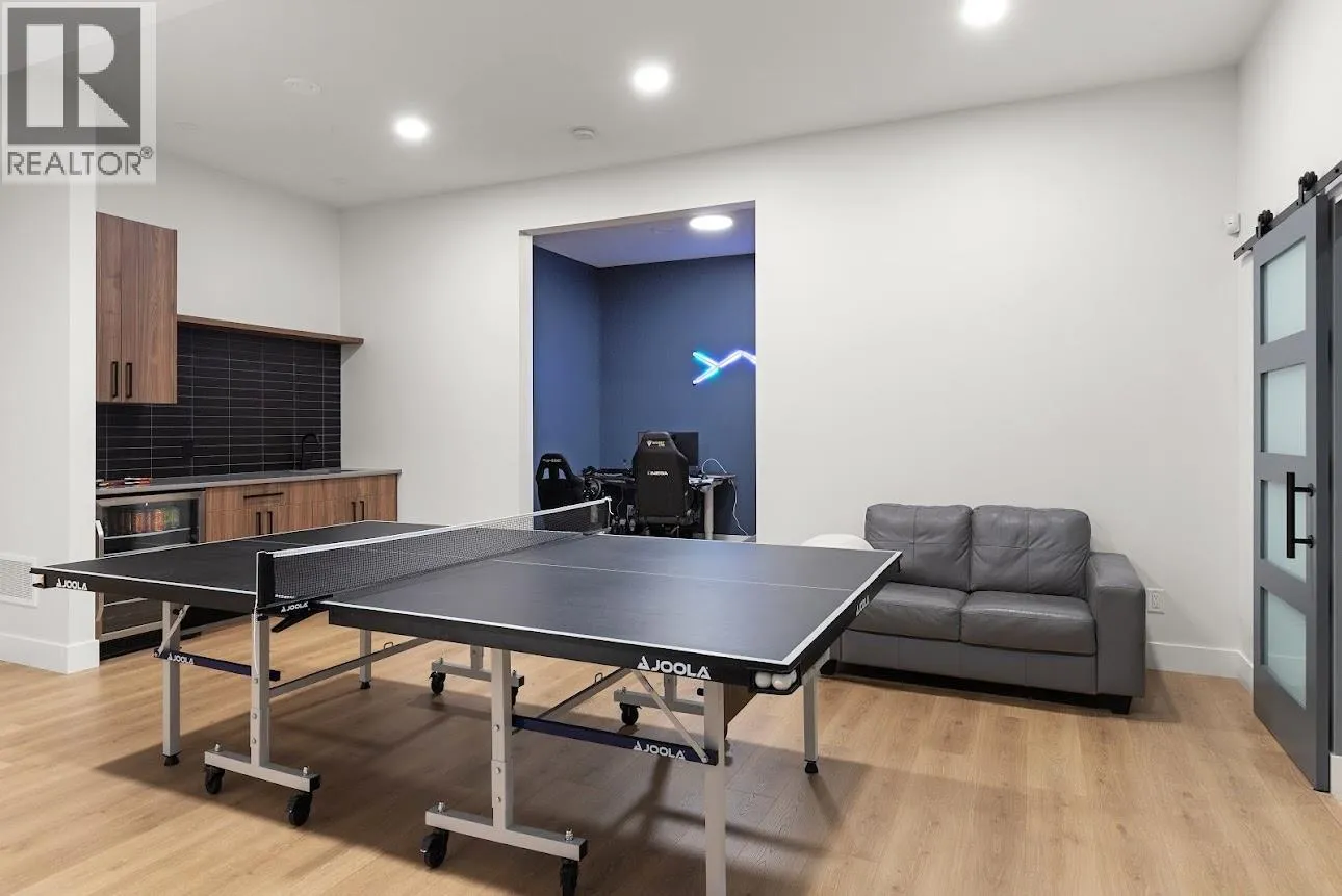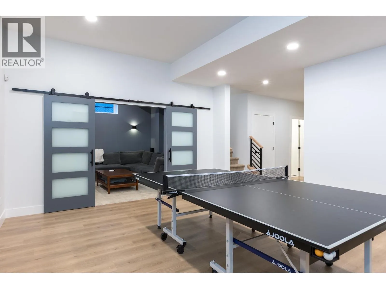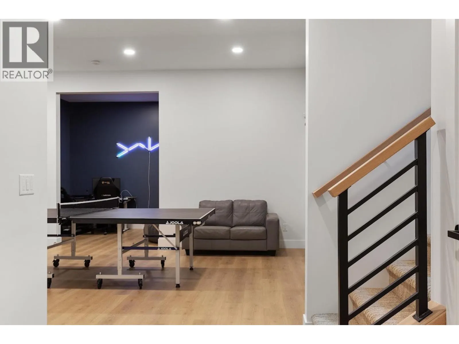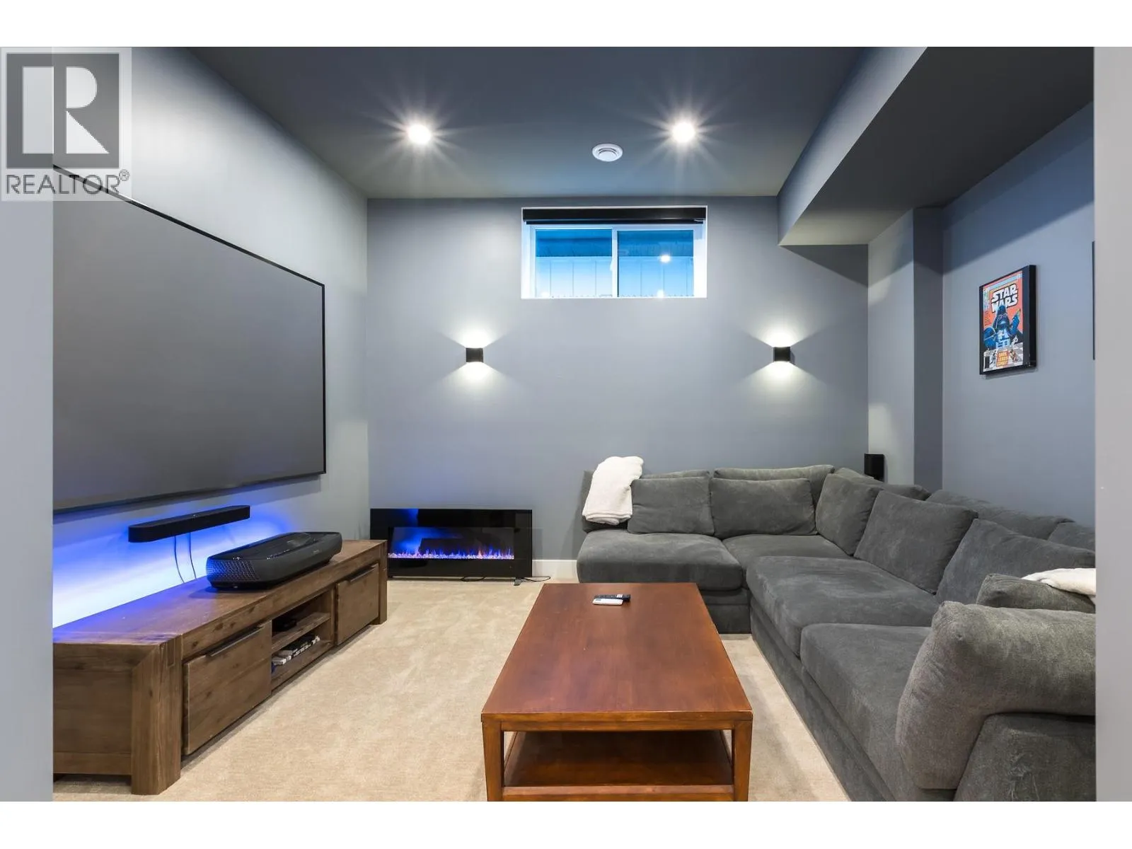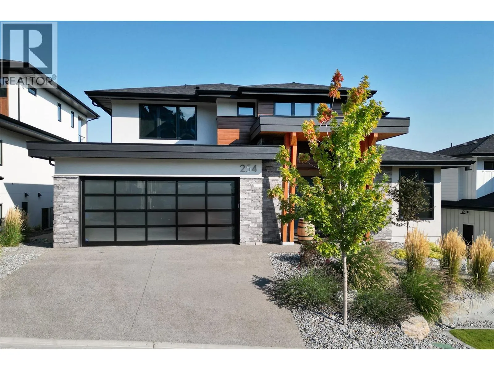 Experience modern luxury and natural beauty in this stunning 4,616 square foot custom home in Wilden, one of Kelownaâs most sought after communities. Thoughtfully designed by Rykon Construction, it features soaring 18 foot ceilings, heated floors in key areas, tri-slider doors leading to an outdoor oasis, and oversized glulam posts and beams with a pergola. The lavish kitchen boasts an eight foot by five foot island, double fridge and freezer, induction cooktop, double wall ovens, and separate prep kitchen. The kitchen flows to the dining room and living room that features two story ceilings and floor-to-ceiling windows to showcase the unobstructed east facing valley views. This level also includes two offices, laundry room, and bathroom. Upstairs is the luxurious primary suite with views and spa like ensuite, along with two more bedrooms, each with an ensuite. The basement includes a theater room with a 100 inch projector, game room, wet bar, guest bedroom, bathroom, and fitness room. Nothing has been spared in this home as smart home automation controls lighting, blinds, security, and more. The oversized 700 square feet two car garage is designed with an EV charger, built-in workbench, cabinets, and room for bikes and all your gear to embrace the Okanagan lifestyle. Outside, enjoy an eight foot deep 32 foot by 16 foot salt water pool, hot tub, covered patio, and tiered lot maximizing light and privacy. Located near Wildenâs extensive trail network and minutes from downtown, this home offers a blend of luxury, functionality, and lifestyle. (id:27476)