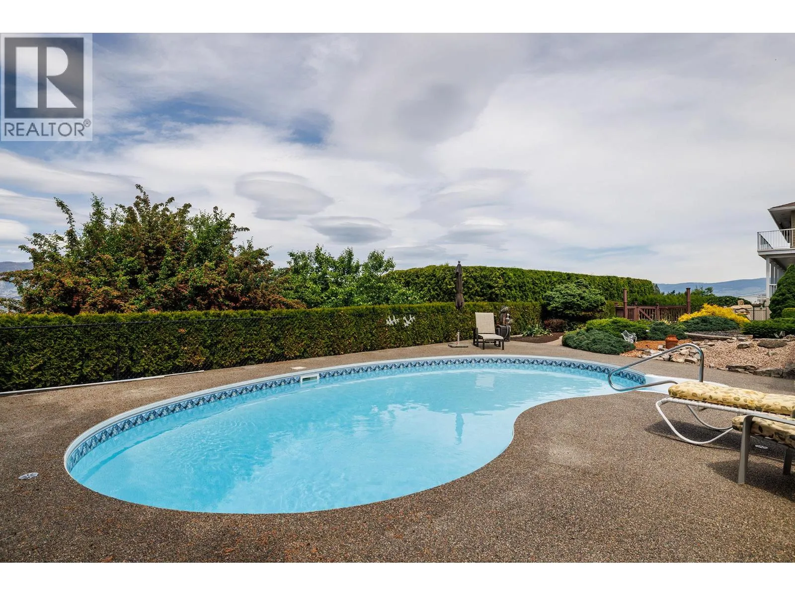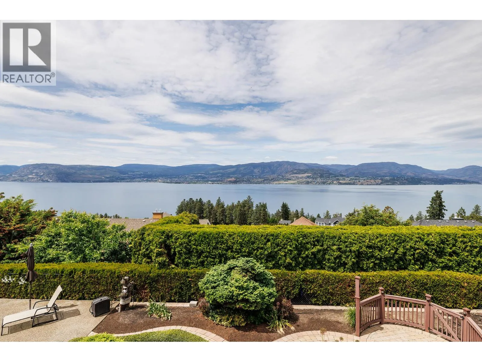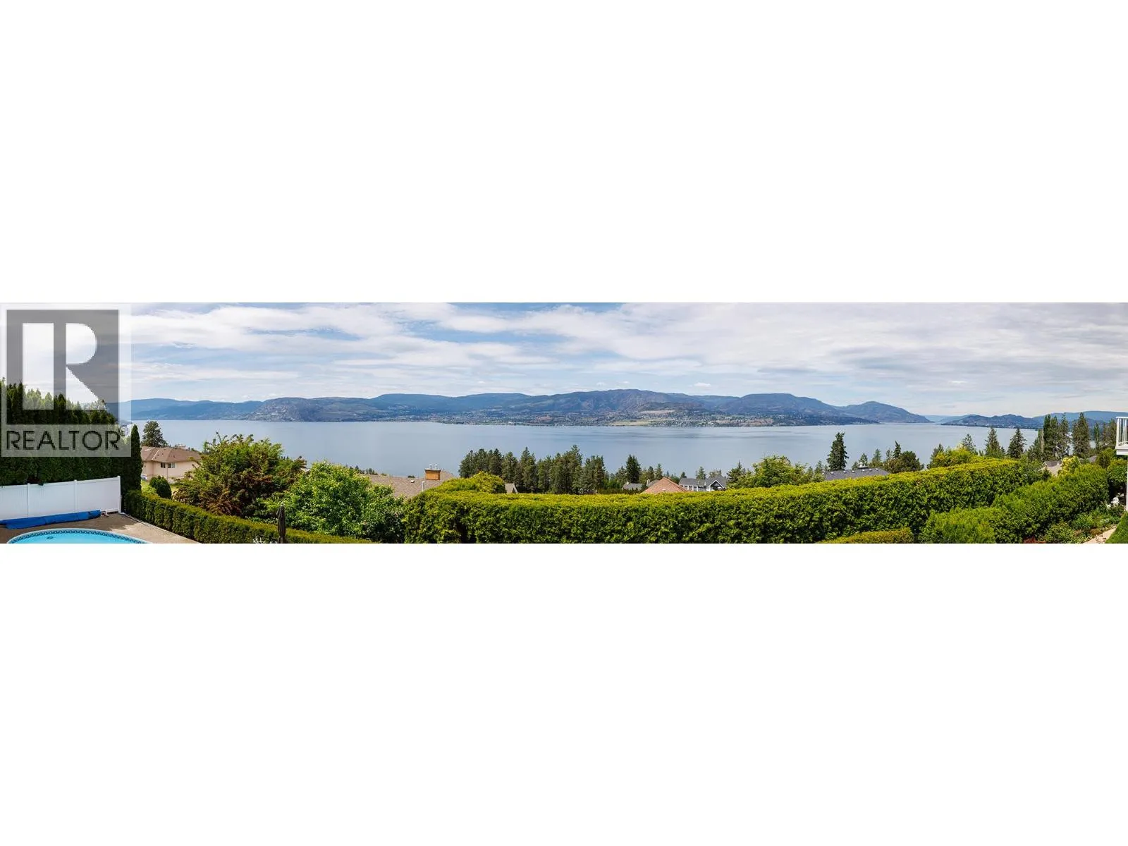 Immaculately maintained and quality modern updates throughout. Impressive lake and mountain views from luxurious home in Upper Mission. Level circular drive leads to 3 car garage and ample room to park outdoors. Situated on a quiet cul-de-sac. The home is surrounded by raised garden beds with mature plantings and offers pleasant sitting areas and generous lounging and deck spaces. The rear maintenance free yard features a saltwater pool surrounded by a large Sierra deck and putting green. The interior of the home features soaring ceilings, granite surfaces, hardwood, leather floors and walls of glass capture that stunning picturesque view. Gourmet island kitchen flows seamlessly to the generous upper balcony that not only provides outstanding views but features automatic roll down shades. Main floor king sized primary br with spa like ensuite. Lower level is designed for entertaining with full bar, games room, and family room all leading to the pool side setting. Move in ready to enjoy the entire seasons carefree and in style! (id:27476)