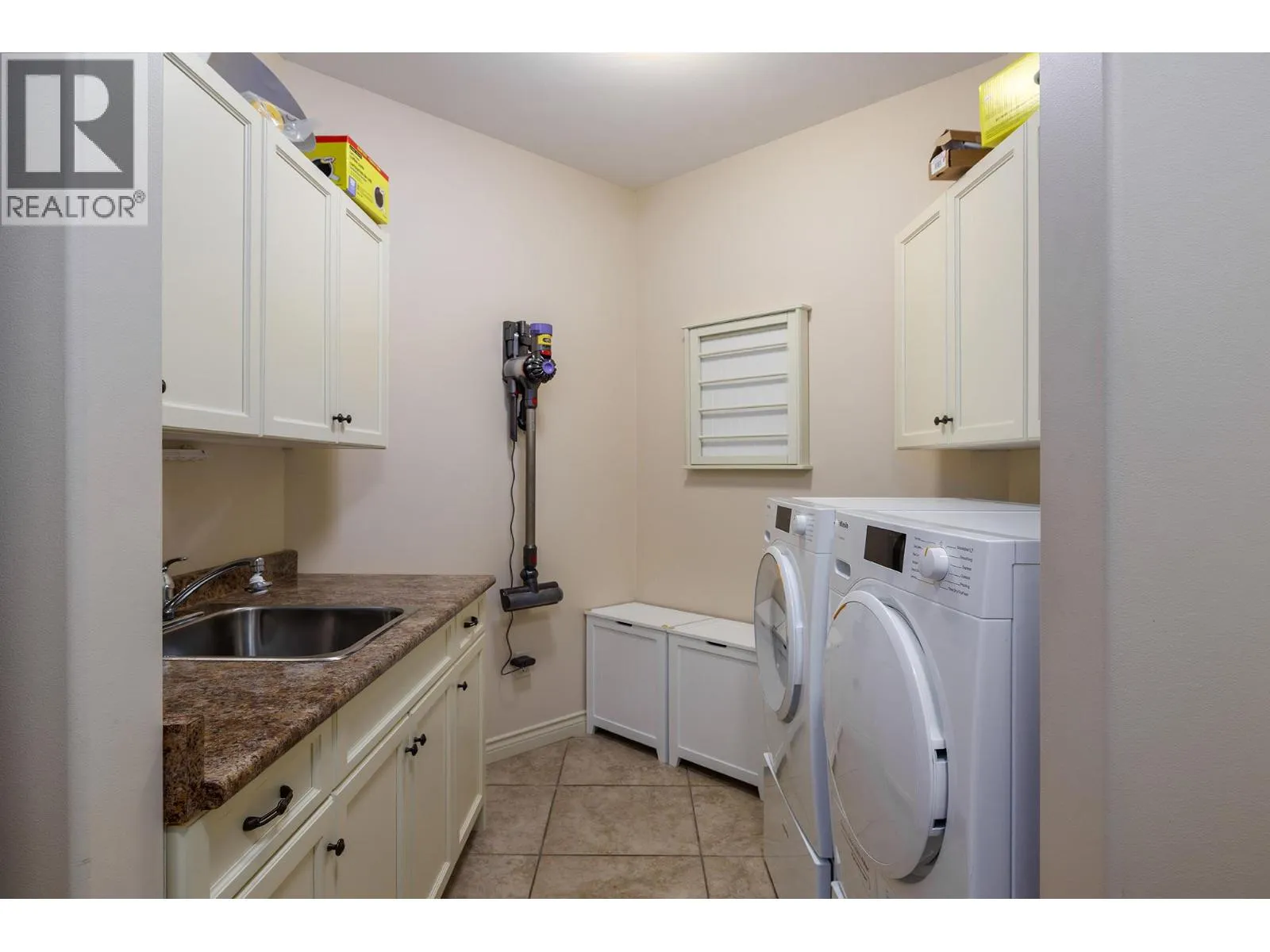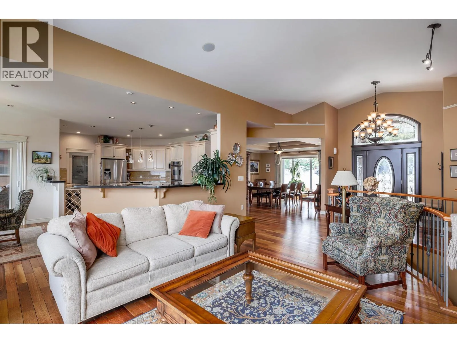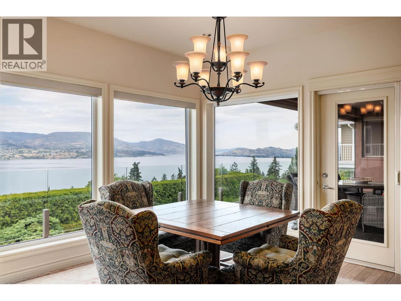 Immaculately maintained and quality modern updates throughout. Impressive lake and mountain views from luxurious home in Upper Mission. Level circular drive leads to 3 car garage and ample room to park outdoors. Situated on a quiet cul-de-sac. The home is surrounded by raised garden beds with mature plantings and offers pleasant sitting areas and generous lounging and deck spaces. The rear maintenance free yard features a saltwater pool surrounded by a large Sierra deck and putting green. The interior of the home features soaring ceilings, granite surfaces, hardwood, leather floors and walls of glass capture that stunning picturesque view. Gourmet island kitchen flows seamlessly to the generous upper balcony that not only provides outstanding views but features automatic roll down shades. Main floor king sized primary br with spa like ensuite. Lower level is designed for entertaining with full bar, games room, and family room all leading to the pool side setting. Move in ready to enjoy the entire seasons carefree and in style! (id:27476)