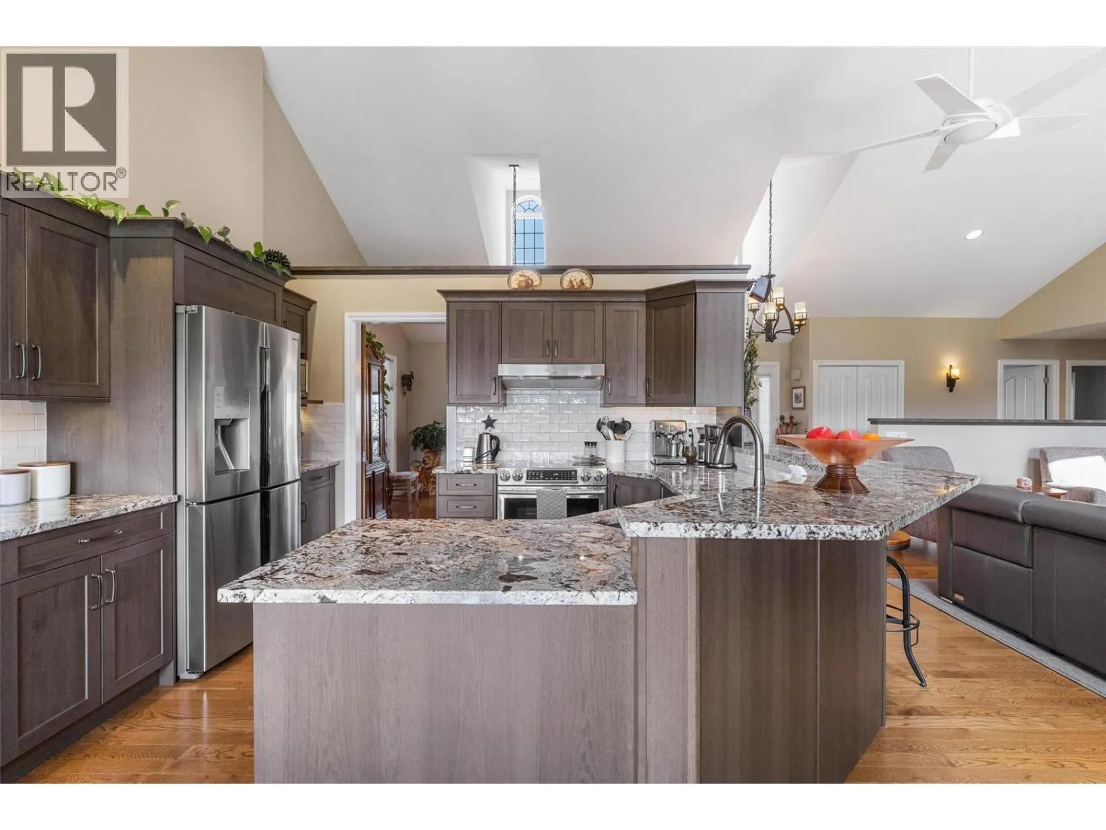 Incredibly unique opportunity; 3.3 acre and 10.14 acre titled properties, combining for a 13.44 acre successful u-pick operation in the Belgo area of Kelowna. This property is located just minutes from town, yet feels like your own private estate far from it all. The home offers five bedrooms and four bathrooms across 3700 square feet of living space, and lots of renovations and features: emphatic stone fireplace mantle with the overheight ceilings with skylights, renovated kitchen with stainless steel appliances & quartz countertops, renovated bathrooms with tile flooring & quartz counters, & more. Master bedroom includes his/her sinks, tiled glass shower & free standing tub. Great backyard space surrounded by your orchard, incl. a big garden space. The orchard operation itself is ran as a successful u-pick operation. Varied cherry blocks that are a perfect mix of early, mid and late season cherries to maximize the time of the u-pick. Recognizable and respected varieties include Rainier, Cristalina, Skeena, Staccato, Stella, and more (inquire for full info package). There is also a cabin on the property, perfect for a mortgage helper/farm help. Lakeviews are found on the upper bench off Geen Rd. Two titles creates lots of flexibilities, as the 3.3 acre lot would allow for another full primary home to be built. Great opportunity to have a profitable business in your backyard, and is a turn-key operation. Great potential for a multi-generational setup with the two titles and potential for residences. (id:27476)