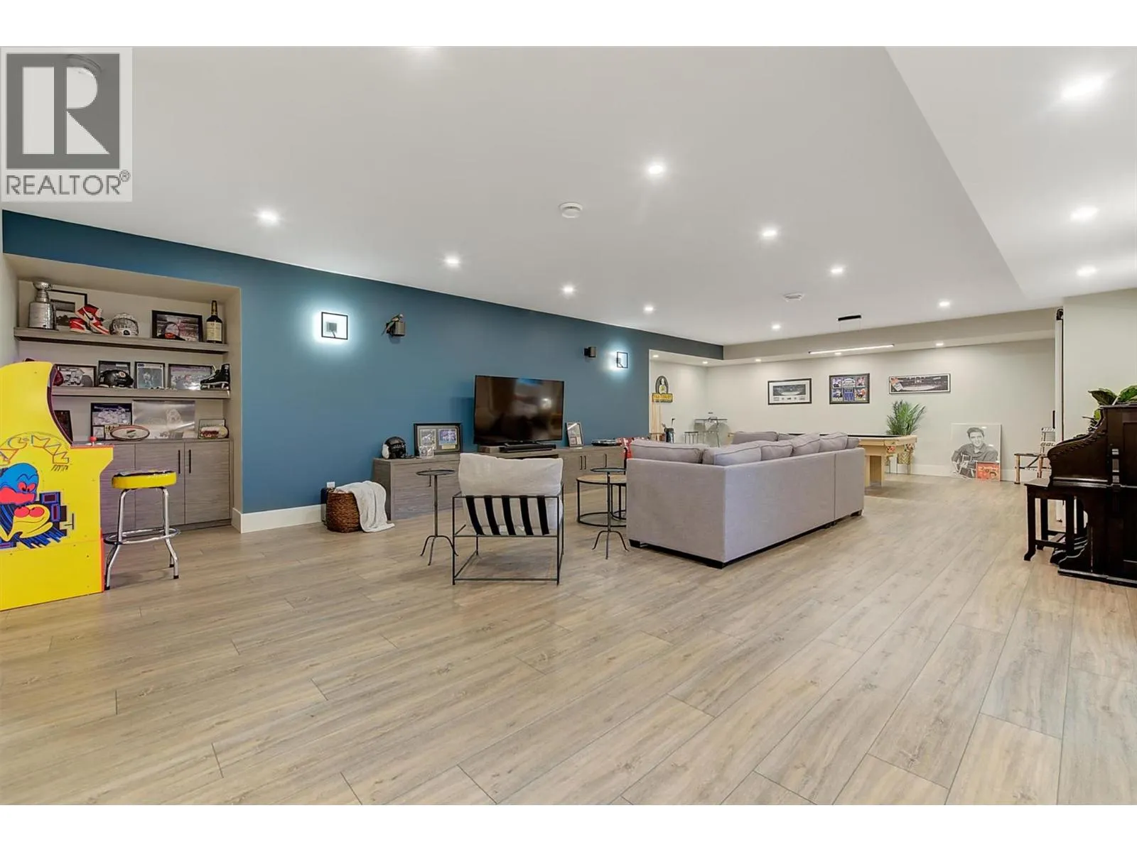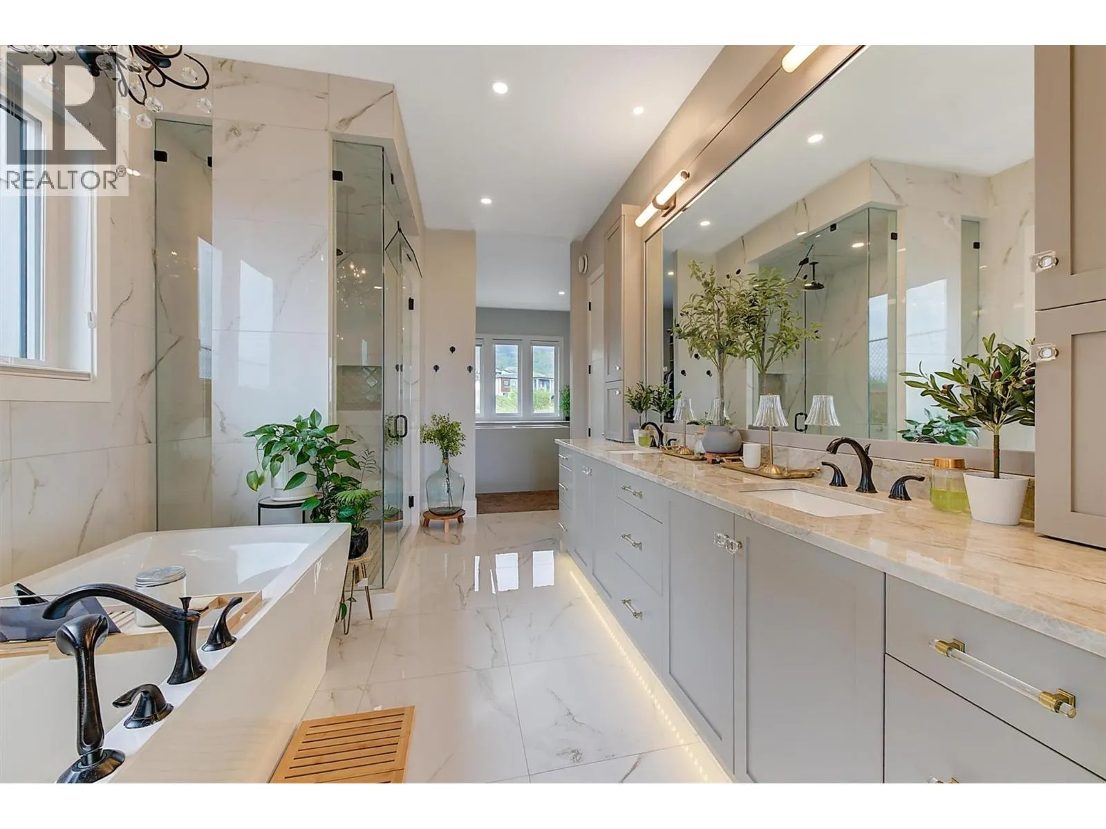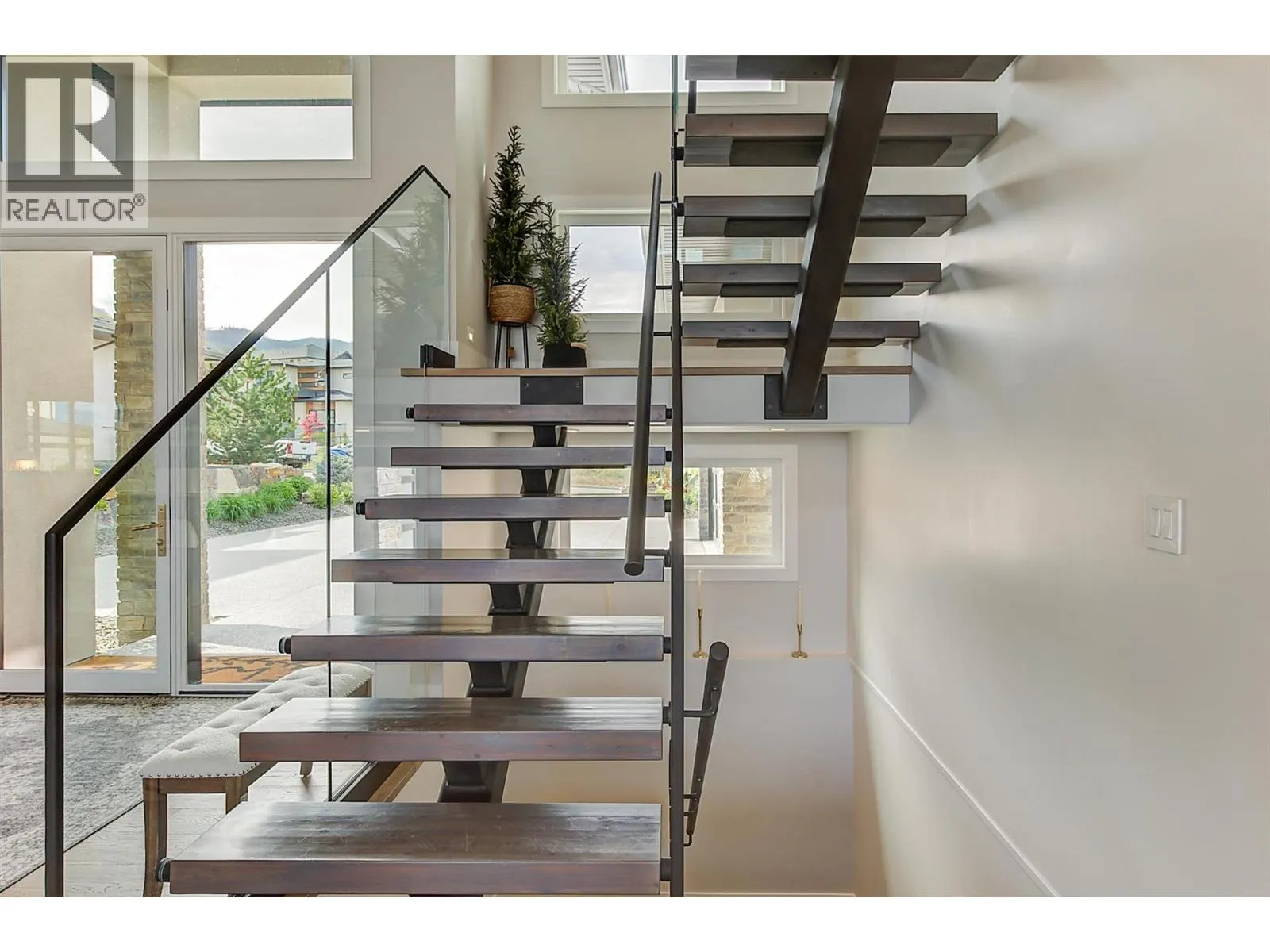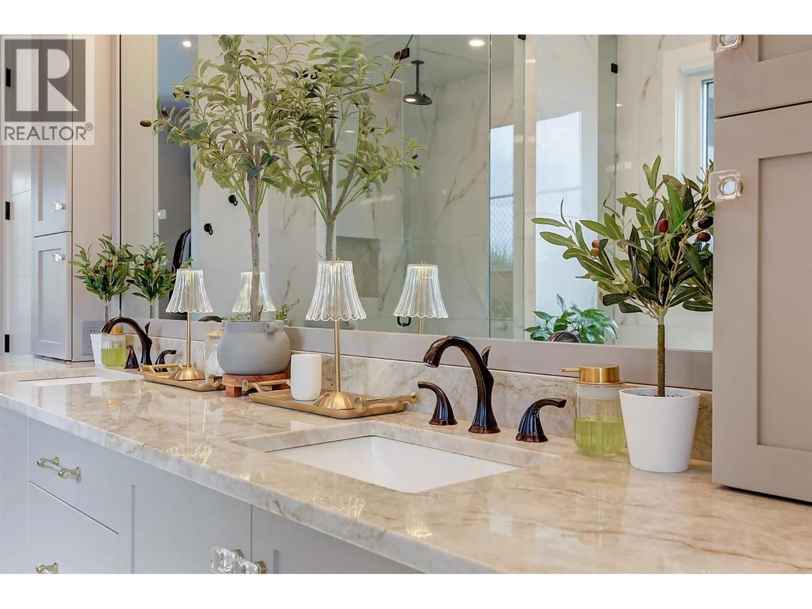 Welcome to this remarkable DeBruin Custom Home, tucked away on an exclusive private cul-de-sac in the prestigious Upper Ponds neighborhood. Blending modern sophistication with timeless elegance with more than 5,800 sq. ft. of luxurious living. Inside, youâll find 5 bedrooms (lower bedroom ""no closet"") and 6 bathrooms, including upper-level bedrooms each with their own private ensuite. The chef-inspired kitchen features premium appliances, double ovens, dual dishwashers, a butlerâs pantry, a hidden coffee station, and two large islands that make hosting effortless. The open-concept living and dining areas are accented by architectural detailing and expansive nano doors that open to a true outdoor oasis. Enjoy Kelowna summers with a built-in BBQ, fire pit, saltwater pool, and sweeping lake views. The fully fenced yard also includes a dog run and a private putting green. Every detail has been thoughtfully integrated with full home automation, controlled by a single app. The lower level offers a spacious rec room, family room, and additional flex space that can easily be transformed into a home theatre or 5th bedroom. This location is second to none: minutes to Okanagan Lake beaches, world-renowned wineries, golf, and shopping, with Canyon Falls Middle School less than 1 km away and a new shopping center just around the corner. This is more than a homeâitâs a lifestyle. Rarely does an offering of this caliber become available in one of Kelownaâs most coveted communities. (id:27476)
