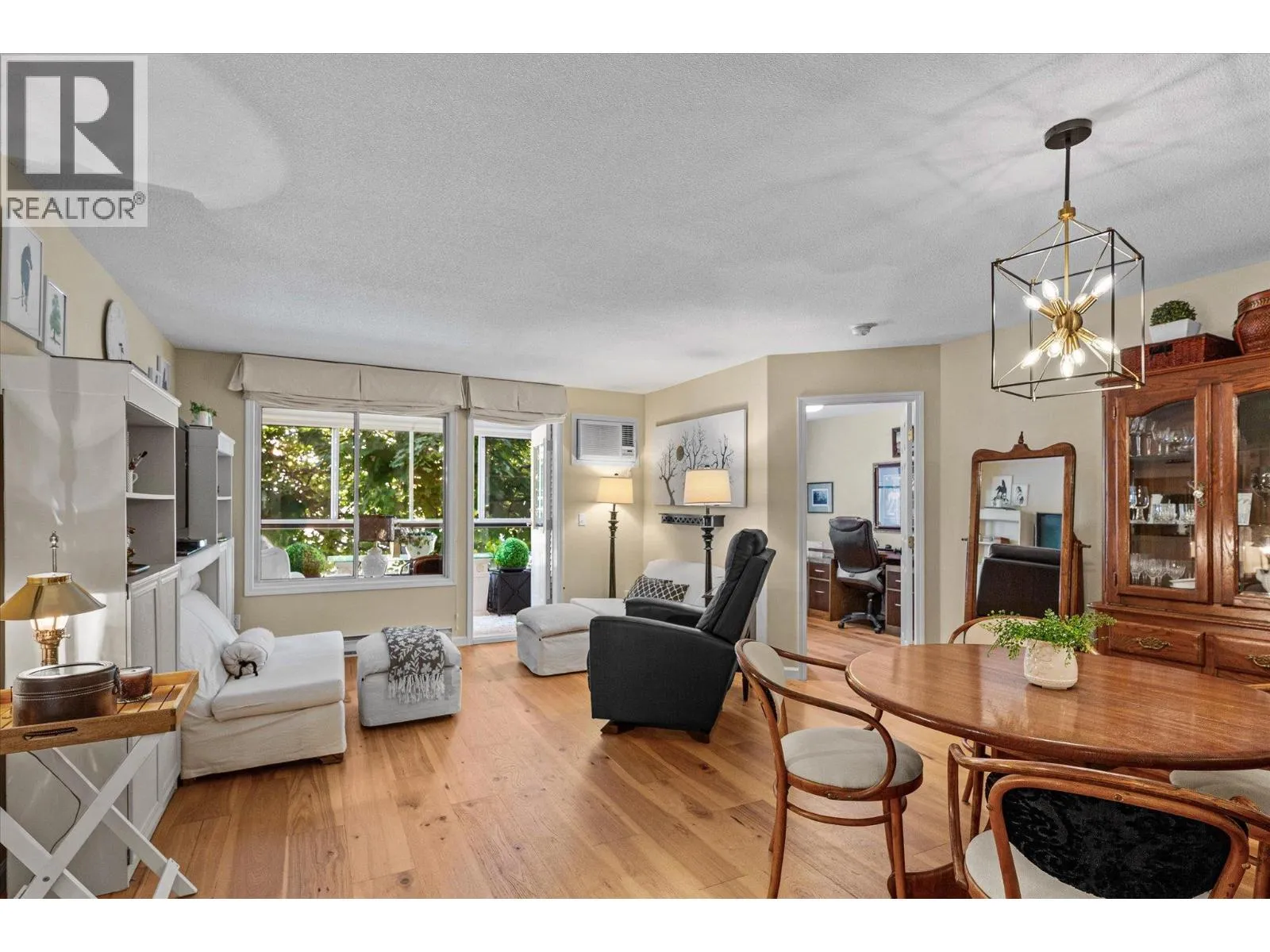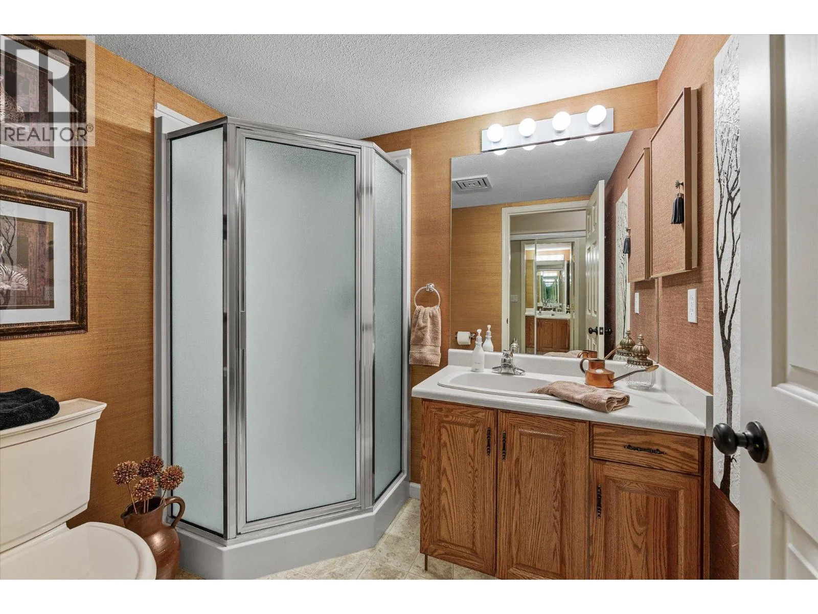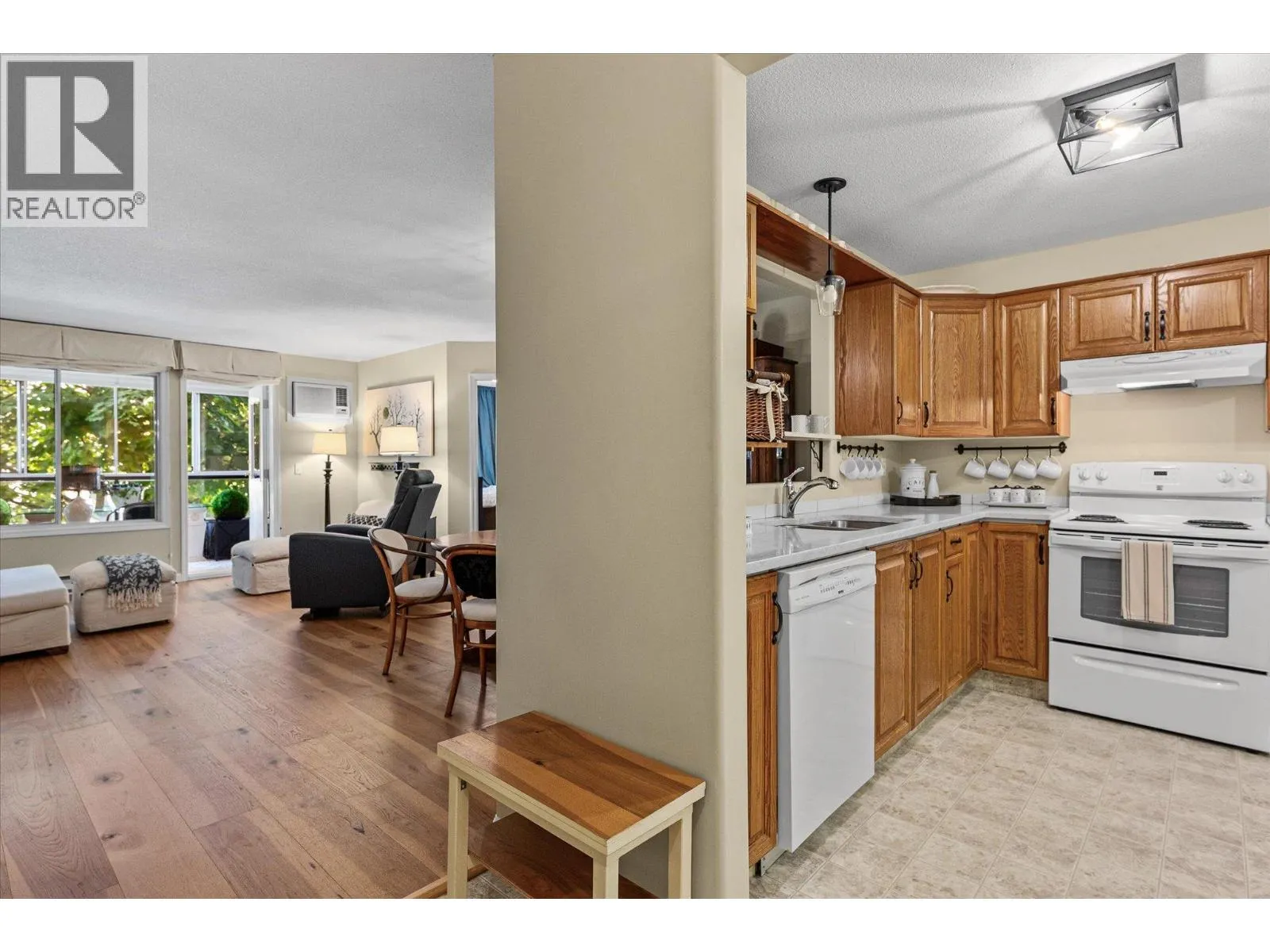 Welcome to this appealing 2-bedroom, 2-bathroom condo. Enjoy the convenience of being within walking distance to diverse shopping, exquisite restaurants, beautiful parks, and readily accessible bus routes. This charming residence boasts an enclosed balcony with desirable Western exposure, perfect for enjoying sunsets, and an inviting open-concept living and dining area, creating a spacious and airy ambiance. The eat-in kitchen offers ample space for a small table, while the laundry room is thoughtfully positioned just off the foyer. The master bedroom is a private retreat, featuring a full 4-piece ensuite bathroom and double mirrored closets, providing generous storage. A second well-proportioned bedroom is located on the opposite side of the living space, ensuring privacy, and is complemented by a convenient 3-piece main bathroom. Built in 2005 after a complete rebuild due to a fire, this building offers modern construction and peace of mind. Shaughnessy Green, a non age-restricted community, offering a guest suite for visitors and accommodating one small dog (up to 14"" at the shoulder) or one cat. Residents will appreciate the fantastic amenities available at the Clubhouse, which includes a full kitchen, a well-equipped fitness room, a pool table, shuffleboard, and an outdoor barbecue area. The beautifully landscaped grounds provide a serene environment for relaxation. Additionally, the unit comes with one underground parking stall and a dedicated storage locker. (id:27476)