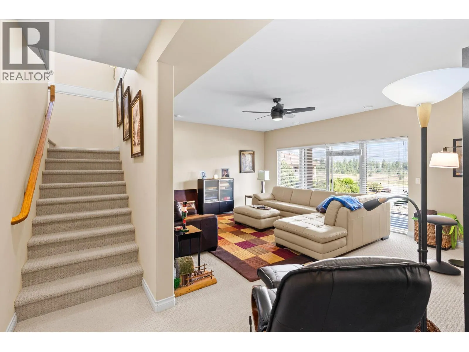 A Rare Offering in Quail Ridge at FAIRWAY HEIGHTS! Donât miss out this impeccably maintained END-unit rancher with a fully finished basement in one of Quail Ridgeâs most sought-after communities. Featuring 4 bedrooms and 3 bathrooms, this home offers exceptional privacy and sweeping views of the Okanagan Golf Clubâs 36-hole championship courses. The open-concept main living area is filled with natural light, with expansive windows framing the spectacular scenery. The modern kitchen combines both style and function, offering new cabinetry, ample counter space, and an island perfect for casual dining or entertaining. The adjacent dining and living areas flow seamlessly together, creating an ideal space for gatherings. The primary suite is a true retreat, complete with a private ensuite and large windows overlooking the tranquil landscape. The fully finished lower level provides outstanding versatility with three additional bedrooms, a spacious rec room, and options for a media room, games area, or extra storage. Situated just minutes from Kelowna International Airport, UBCO, and shopping/amenities, this home is perfectly located for convenience and lifestyle. The strata covers nearly everything-insurance, water, garbage, landscaping, snow removal, and exterior maintenance (including windows, doors, and decks) making for worry-free living. This is more than a home - itâs a lifestyle in one of Kelownaâs premier golf course communities. (id:27476)
