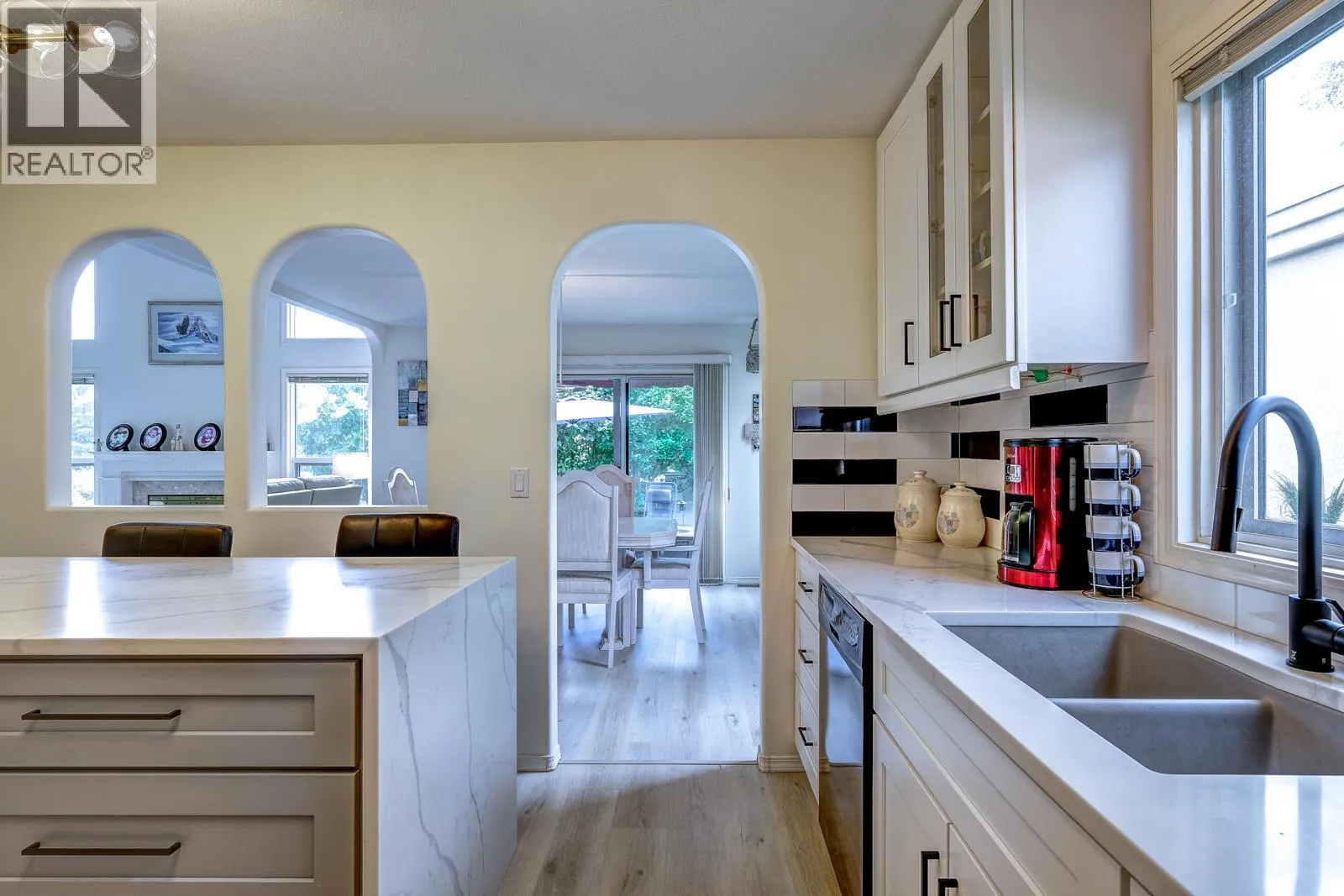 Rancher walk-out located in the superb area of Lower Mission and only a short walk to all of Kelowna's well known beaches, parks, fine dining & much much more! This fully renovated home in the the gated community of "" Lexington "" offers 2 bright and well sized bedrooms, 2 full bathrooms, chef like kitchen, vaulted ceilings in the living room and private backyard patio with lush greenery! Separate dining area off the kitchen great for entertaining family and friends! Main floor primary bedroom with walk-through closet to the spa-inspire ensuite. Attached double car garage with room for additional storage. Many great amenities come within this complex like the clubhouse with and indoor pool / outdoor hot-tub, security gate and RV parking. Turn-key, move in ready and stress free lock up and leave! (id:27476)