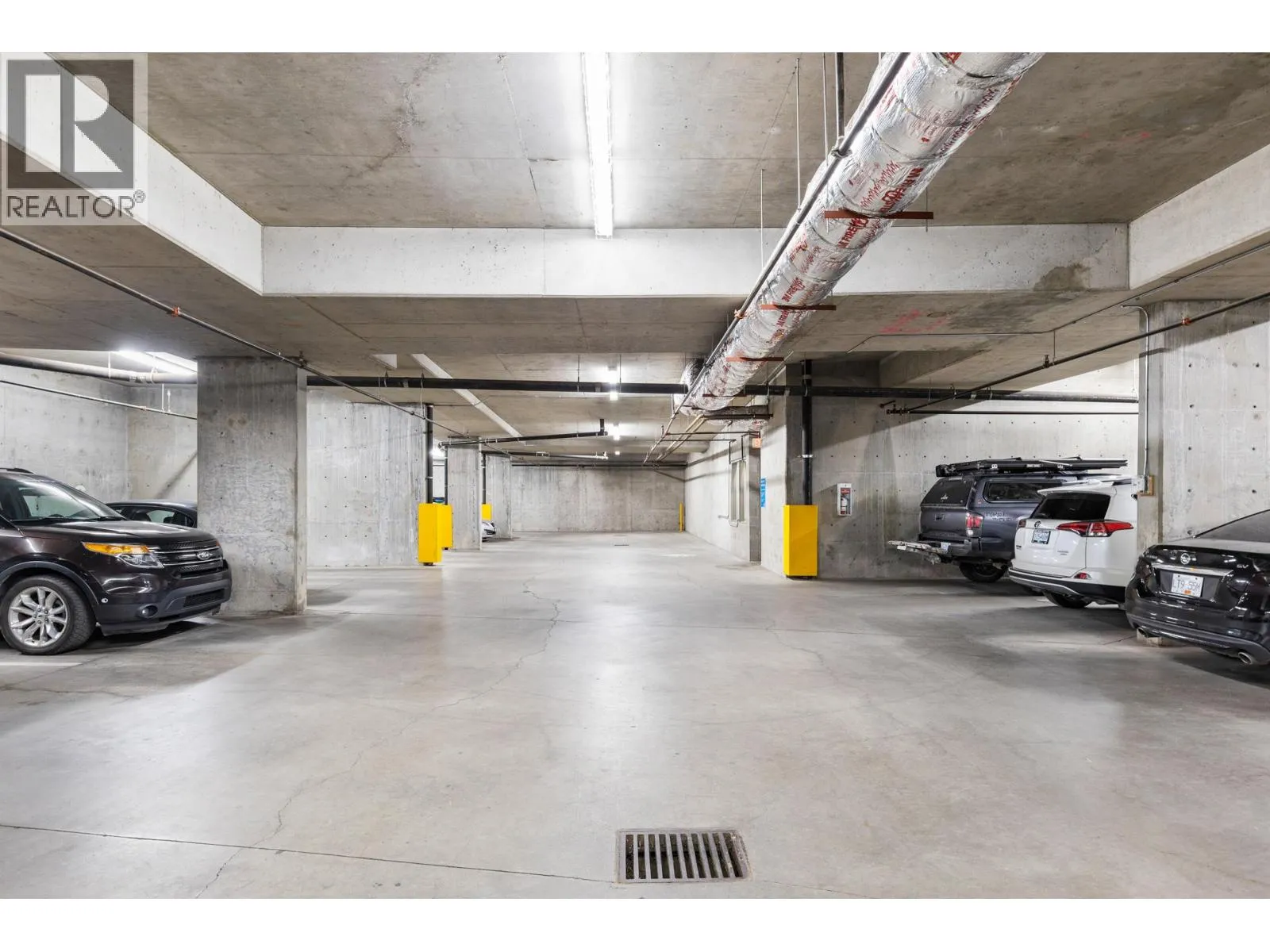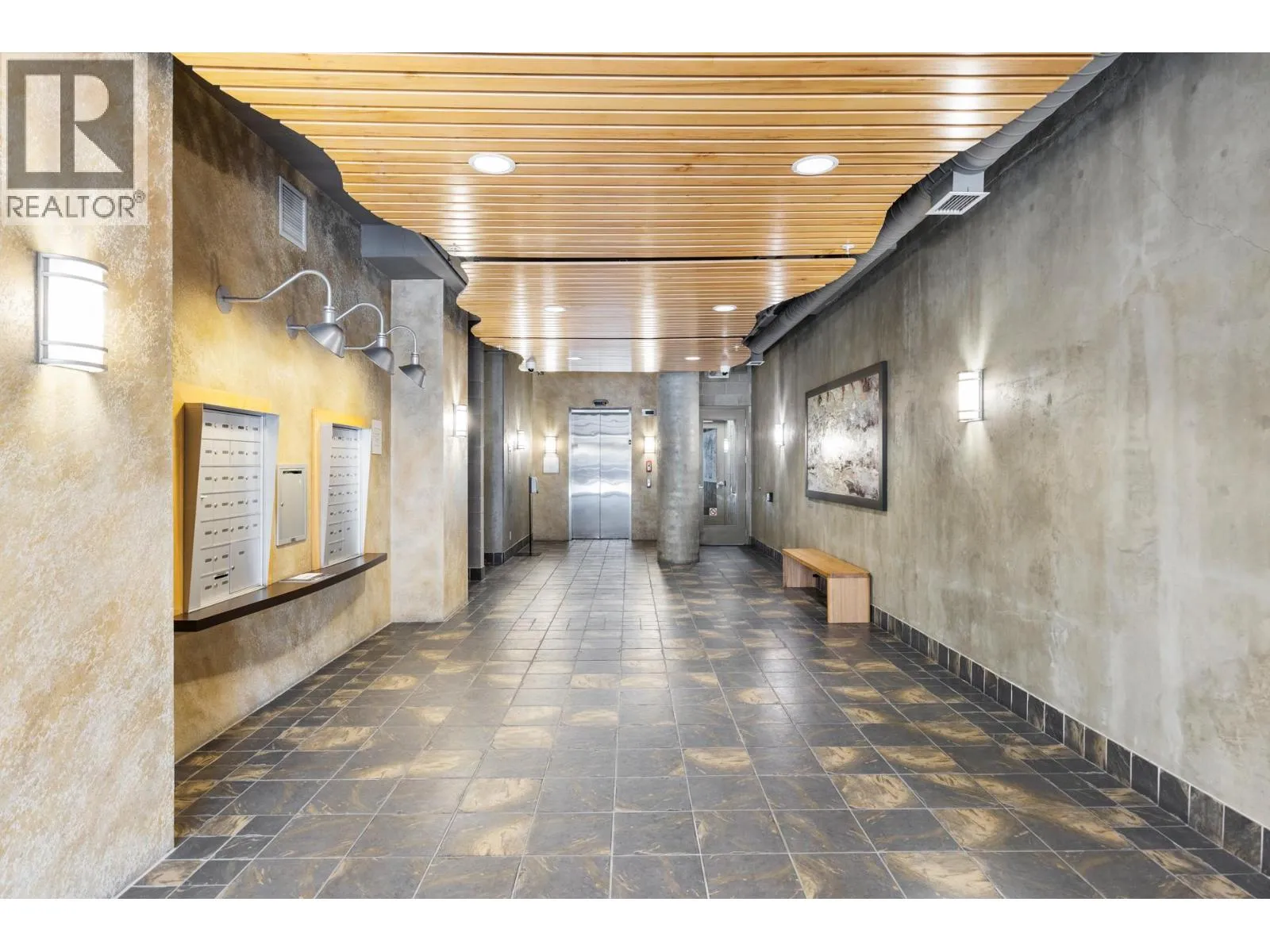 Step into a stylish new lifestyle in one of Kelownaâs most sought-after concrete high-rises. This architecturally striking one-bedroom plus den, 1.5-bath home is among the largest one-bedroom layouts in the city, designed to impress with its soaring 11-foot ceilings and oversized SE facing windows that flood the home w/ sunlight and frame views of the city & mountains. The generous size, natural light, and modern aesthetic make this home truly stand out. Recently updated from top to bottom; with newer appliances, heating & cooling system, renovated bathrooms with sleek Dekton countertops, new carpet in the bedroom, fresh paint, and updated lighting. Exposed concrete features highlight the buildingâs original architecture while lending a unique, modern edge. The open layout flows seamlessly, with a spacious den large enough to serve as a home office, dining room, or guest space. Step onto your private balcony with a gas hookup, perfect for summer barbecues and enjoy the peace of the quiet side of the building while being only steps from the vibrancy of Kelownaâs Cultural District. Entertainment venues, dining, cafes, pilates studios, and galleries are right outside your door, with the lakefront and upcoming UBCO downtown campus just steps away. The building offers a fitness room, secure bike storage, a storage locker, underground parking, and lounge that opens onto a social deck for private gatherings or community events. Bring your furry friends 2 cats are permitted. (id:27476)