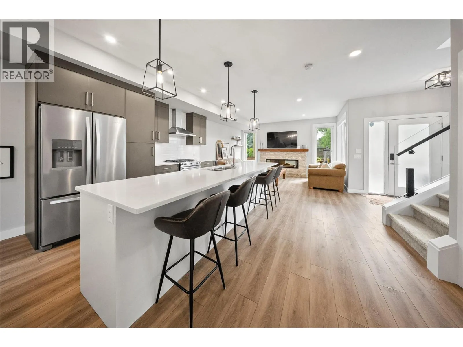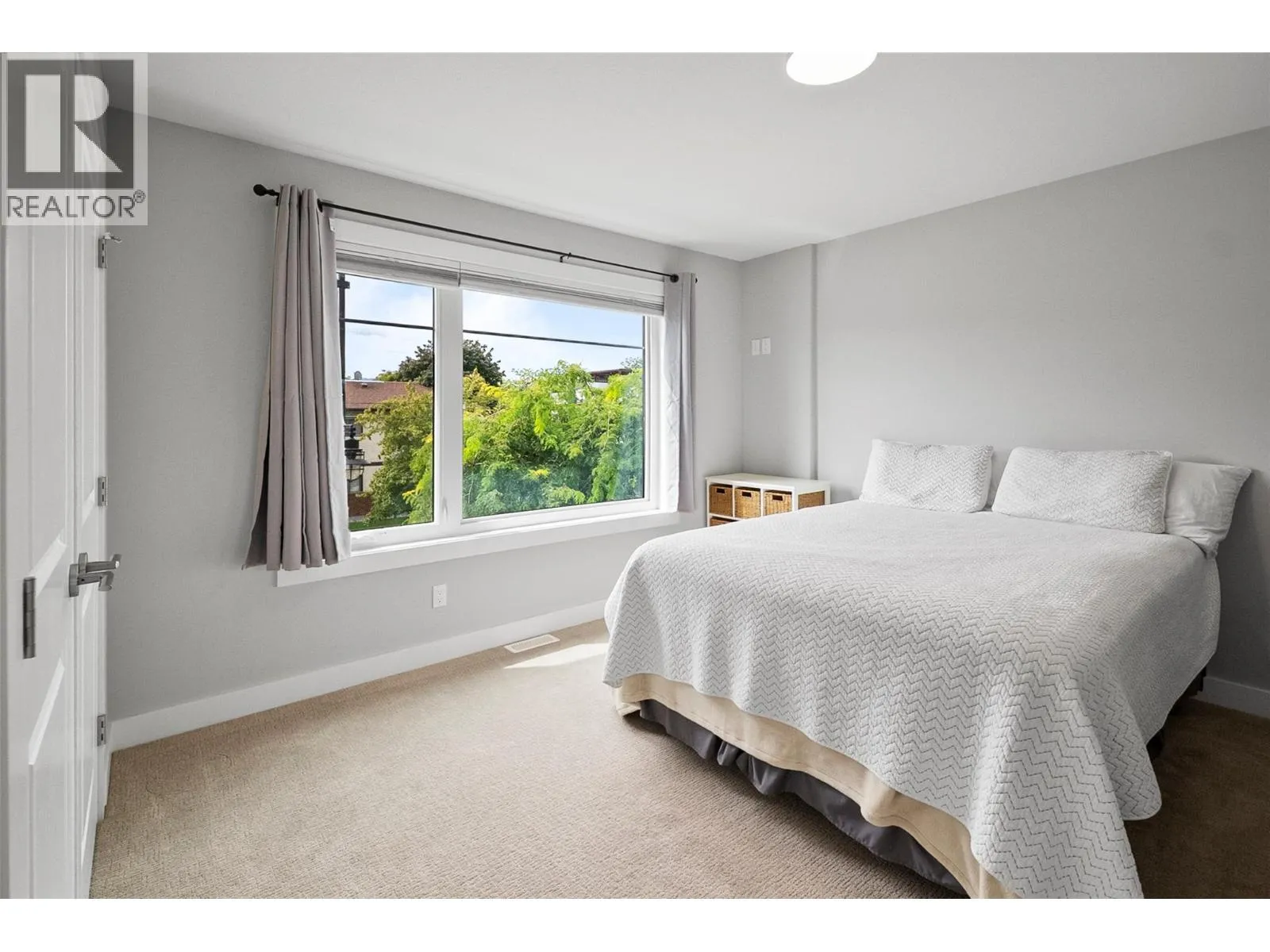 This stunning home by award-winning builder Kimberley Homes redefines urban living. With over 2,000 sq.ft. of thoughtfully designed living space, this residence stands above the rest in its class. The main floor showcases a chef-inspired kitchen with custom cabinetry, quartz countertops, and a perfectly proportioned dining area and living roomâideal for both everyday living and entertaining. A versatile room on the main can easily serve as a 4th bedroom, adding flexibility to suit your needs. Upstairs, you'll find three full-sized bedrooms including an impressive Primary Suite with a spa-like 5-piece ensuite. A second full bathroom and a conveniently located laundry room complete the upper level. Cap it all off with the rooftop patioâengineered/wired for a hot tub and plumbed for an outdoor kitchen and offering panoramic 360 degree; views of Kelowna and surrounding hillsides. This space is made to impress. Additional features: * 5' crawl space for ample storage * Detached garage * Fully irrigated and fenced yardâperfect for kids or pets * Premium location steps from the Cawston and Ethel St bike corridors * A wall of storage options upon entry into the home including a seated area with 5 individual cubbies Live within easy walking or biking distance to downtown beaches, restaurants, breweries, and Kelownaâs cultural district. This home is a seamless blend of luxury craftsmanship, location, and lifestyleâexperience the best of urban Okanagan living. (id:27476)