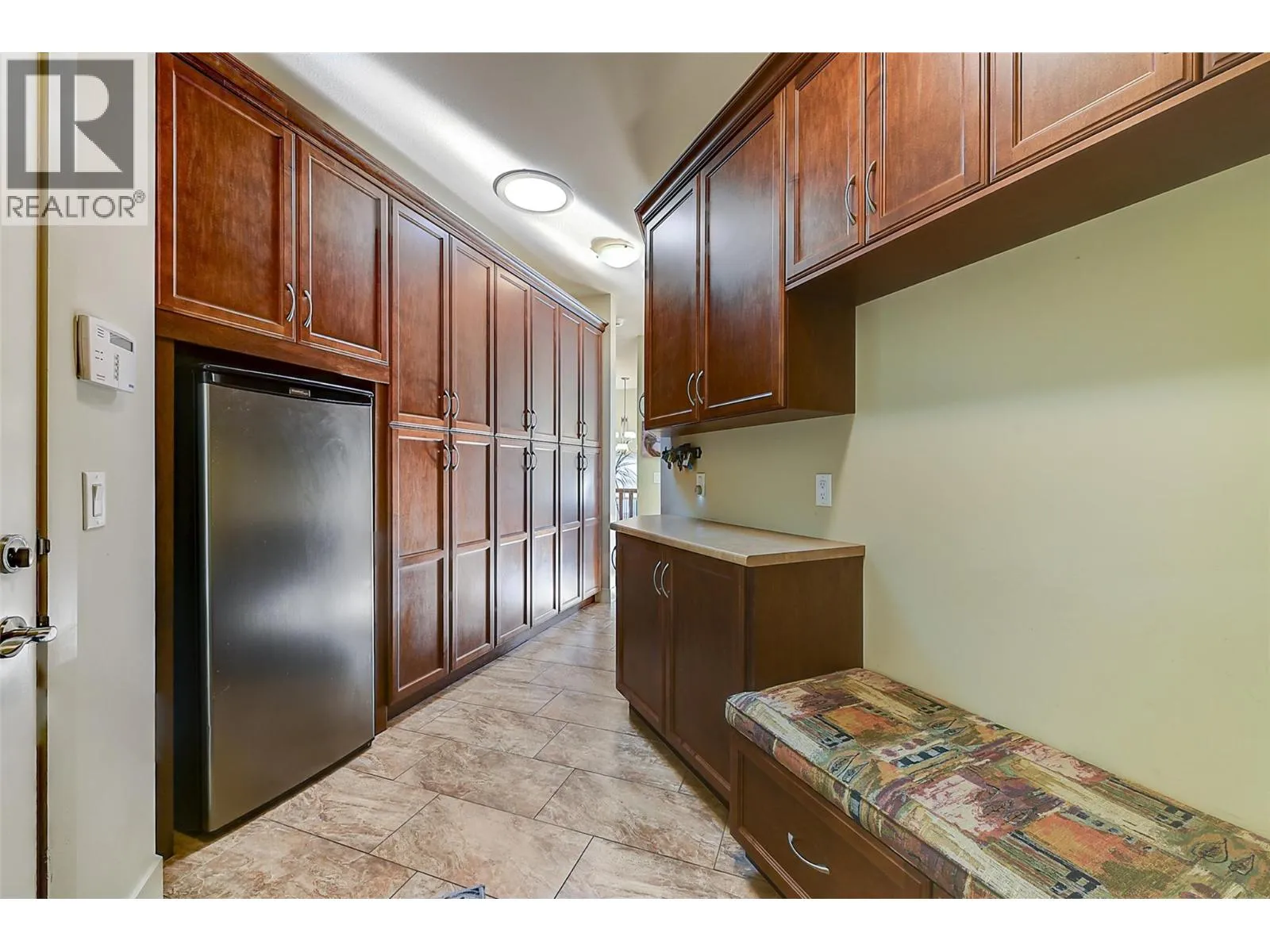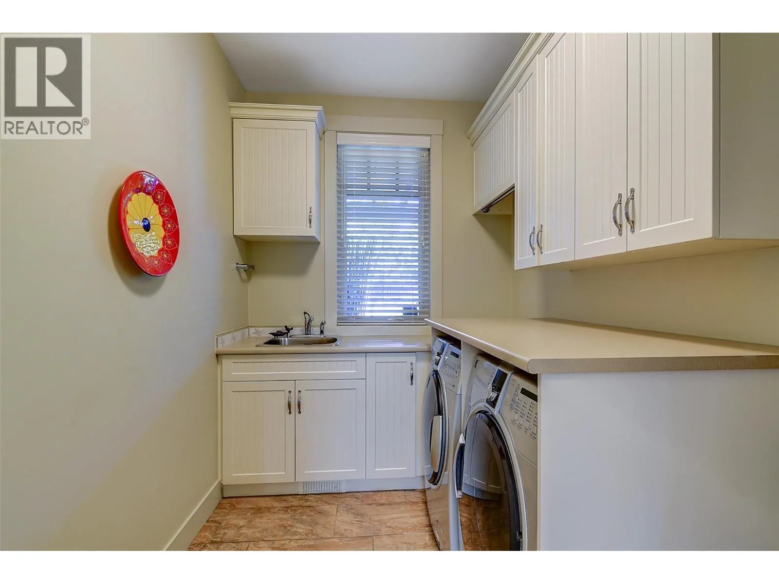 This award-winning home is designed for those who value both elegance and lifestyle, with the backyard as its crown jewel. Just minutes from downtown Kelowna, this property showcases a private resort-style oasis where every day feels like a getaway. The sparkling in-ground saltwater pool is surrounded by expansive stamped concrete patios, vibrant landscaping, and multiple lounge areas that flow seamlessly from sun-soaked relaxation to shaded retreats - creating the perfect setting for lively gatherings, quiet evenings under the stars, or weekend pool parties with friends and family. Inside, soaring ceilings and timeless hardwood anchor an open-concept design centered on a Westwood custom kitchen with granite counters, oversized island, and professional-grade appliances. The dining and Living areas, complete with a feature gas fireplace, connect effortlessly to the outdoor lounge, extending the Living space. The king-sized primary suite offers a lavish walk-in closet, heated floors, double vanities, a custom shower, and a soaker tub, while a second bedroom with a wall bed/desk and private entrance makes the perfect guest suite or office. A second bath and laundry complete the main level, while the finished lower level impresses with a massive recreation space, full wet bar, office, media/games room, bedroom, and bath. Additional highlights include a triple tandem garage, owned geothermal system, and a pet-friendly community with landscaped pathways and ponds. (id:27476)