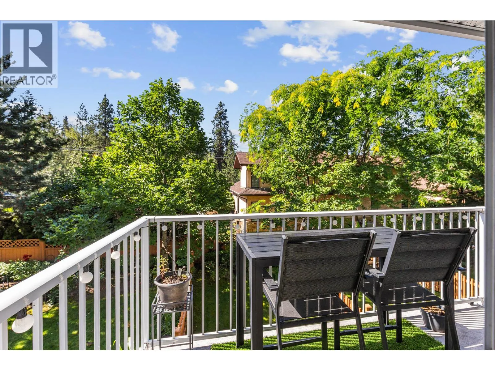 Welcome to this beautifully updated 3-bedroom, 3-bath townhouse, ideally situated in the sought-after Solano development! Centrally located and move-in ready, this home shines with tasteful upgrades throughout â including brand new carpeting, fresh paint, and modern light fixtures. The main level features a well-appointed kitchen with stainless steel appliances, granite countertops, and convenient access to the private deck â perfect for relaxing or summer BBQs. The bright and spacious living room is a true highlight, complete with a custom feature wall and cozy gas fireplace. Upstairs, youâll find three comfortable bedrooms, including a generously sized primary suite with a 3-piece ensuite. The lower level entryway opens into a practical landing area, tandem garage with a shop/storage area, and access to the private, fenced yard â a great spot for kids or pets to play safely. Enjoy the unbeatable location with all major amenities just steps away and the scenic Mission Creek Greenway only minutes from your door. (id:27476)