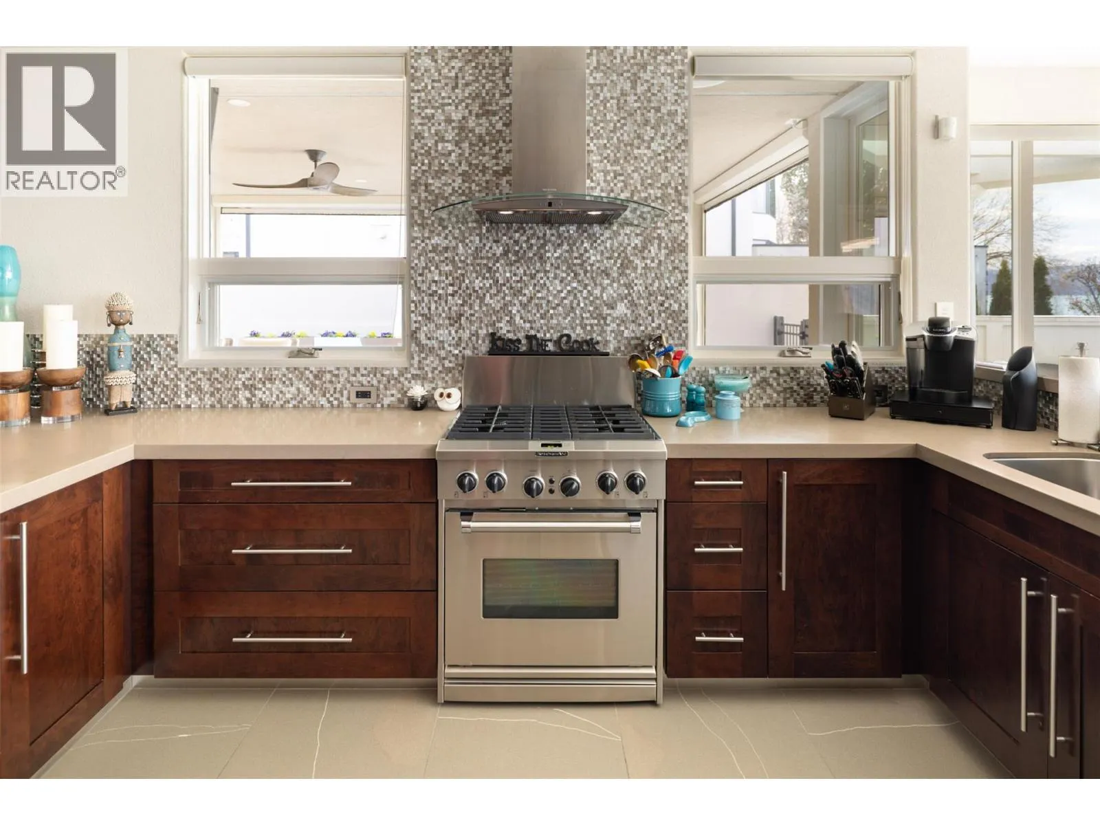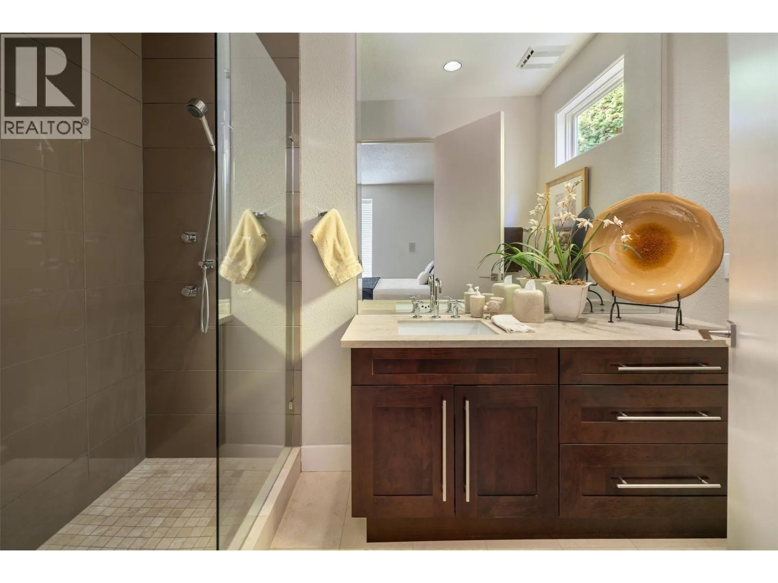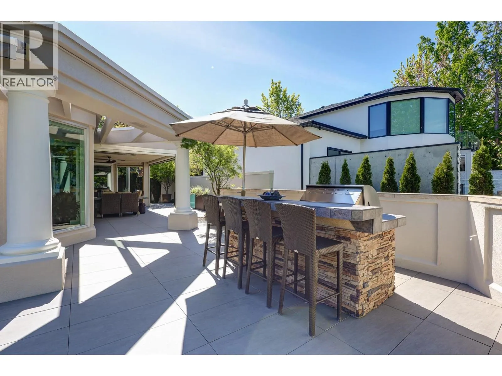 Rare offering on the shores of Okanagan Lake. This one-level lakeshore home in Kelownaâs coveted Lower Mission offers modern comfort with exceptional privacy. Set at the end of a quiet no-thru road, the .49-acre property boasts over 105 ft of level beachfront, mature landscaping, and a shared dock with boat and Seadoo lifts. Spanning over 3,600 sq ft, this 3-bed, 3-bath rancher with 1 bed/1 bath guest house is designed for effortless indoor-outdoor living, featuring floor-to-ceiling sliding doors and stunning lake views from nearly every room. The gourmet kitchen is perfect for entertaining, complete with custom cabinetry, expansive counters, professional-grade appliancesâincluding a gas range, double oven, and dual dishwashersâand a charming breakfast nook with lake views and patio access. The generous primary suite offers direct patio access, a spa-inspired ensuite, and a walk-in closet with a skylight and center island. A detached guest casita with its own bed and bath provides the ideal retreat for visitors. Outside, the expansive patio with built-in BBQ, outdoor kitchen, ceiling fan, and heaters sets the stage for lakeside gatherings. Additional highlights include a triple garage, smart home features, heated floors, and a private hot tub. A rare opportunity to live lakeside in one of Kelownaâs most sought-after neighbourhoods, just minutes to downtown, world-class wineries, and local golf courses. (id:27476)