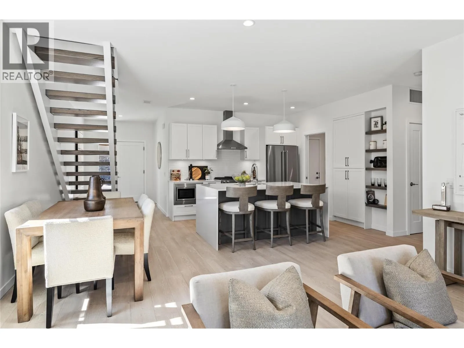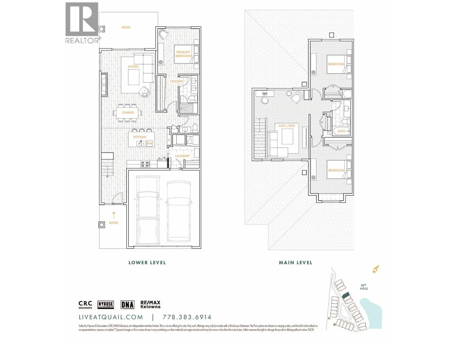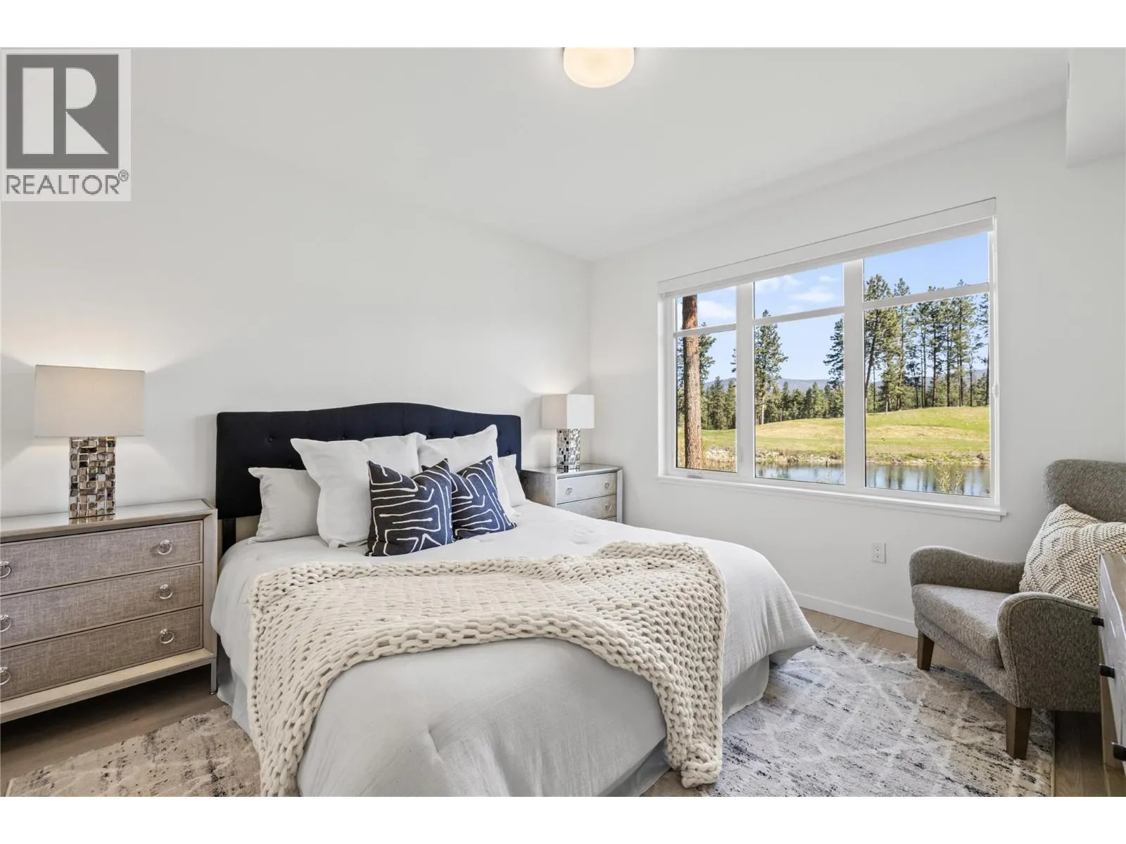 Priced to Sell. Move In Now. Last remaining homes starting from $799,900. This is your best opportunity to Live Where You Play. Located along the 18th hole at the Quail Golf Course, these award-winning townhomes ensure you can live the Kelowna lifestyle, with golf at your doorstep. Quiet but convenient location near YLW, UBC-Okanagan and the growing University/Airport district shopping/dining area. Approx.1,950 sq ft, featuring your primary bedroom on the main floor, with two additional bedrooms and a den/flex area upstairs. Designer details including the open tread wood staircase, German-made laminate flooring on the main floor, LED lights and an open floorplan. The kitchen includes KitchenAid appliances, 5-burner gas stove, quartz countertops, waterfall island with storage on both sides, and shaker cabinetry with under cabinet lighting. Your living extends outside to your covered patio with natural gas bbq hook up and Lake Views. Plus, take advantage of BUYING NEW with PTT Exemption of approx $13,998 (conditions apply). Photos & virtual tour may be of a similar home in the community. Showings by appointment. Move In Now. (id:27476)