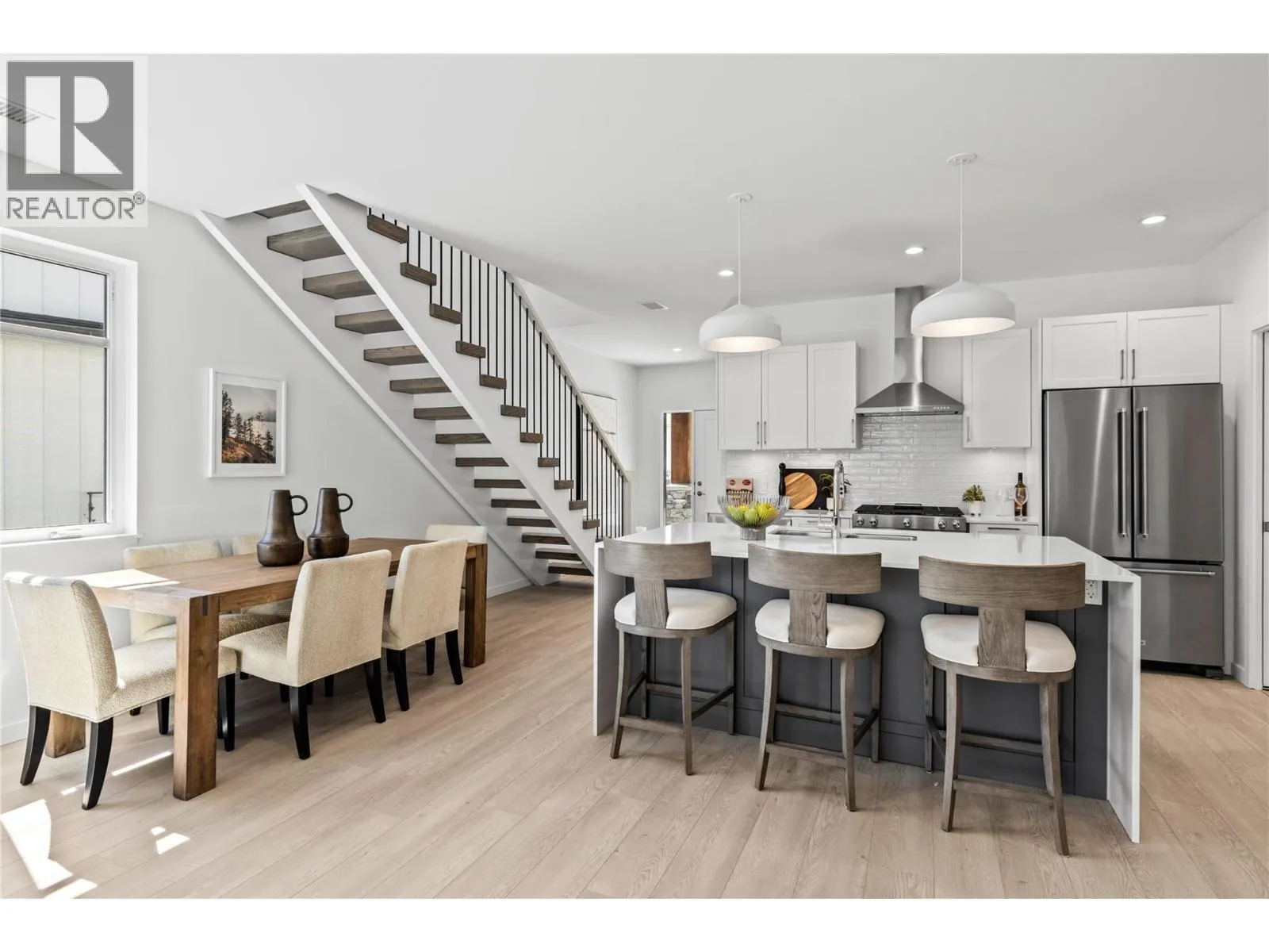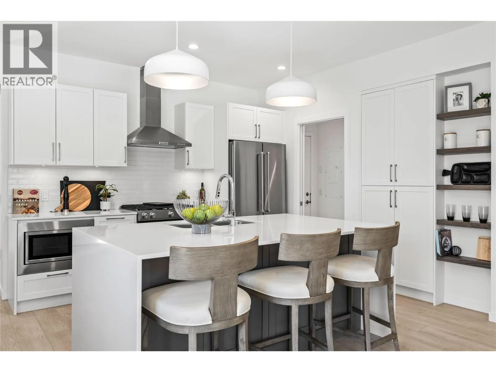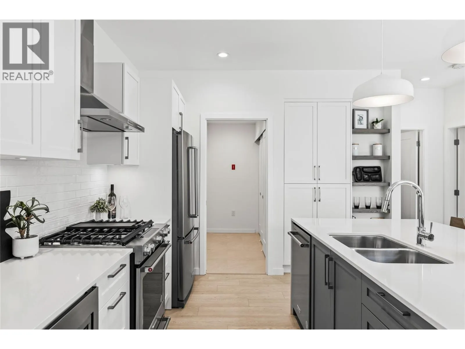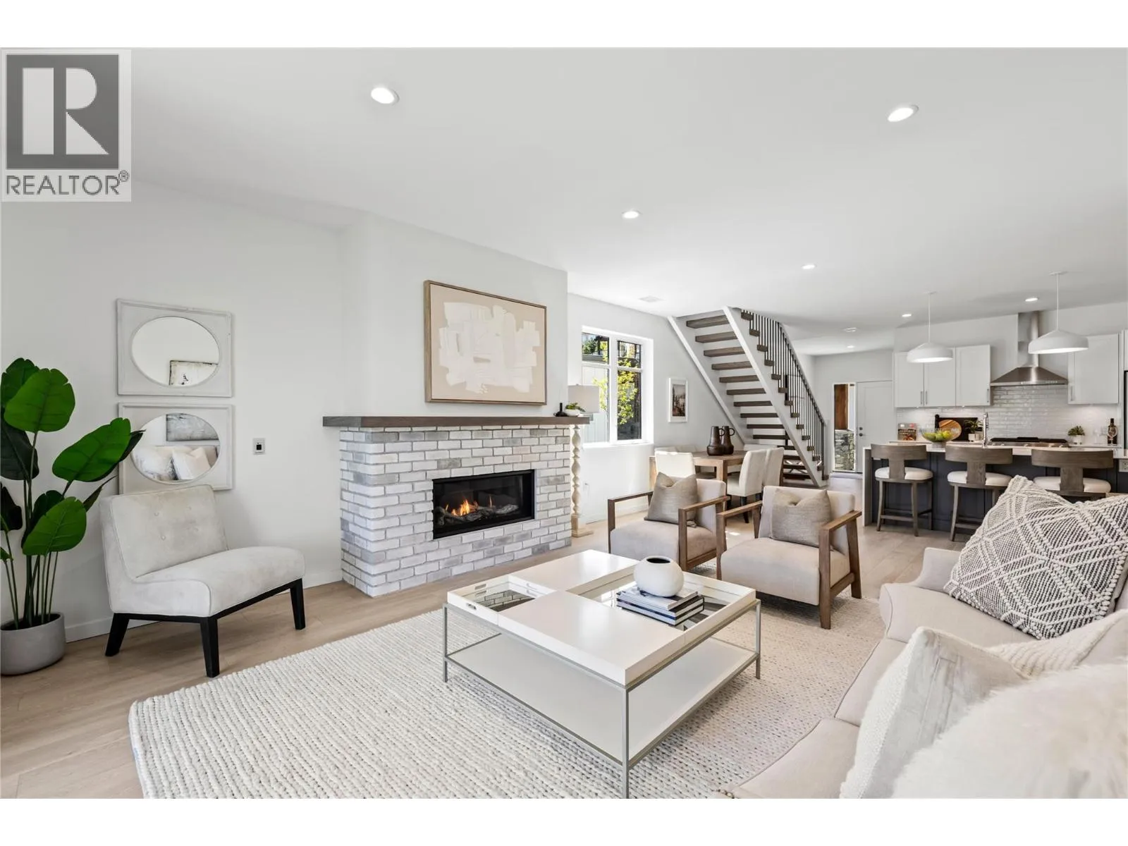 Priced to Sell. Move In Now. Last remaining homes starting from $799,900. This is your best opportunity to Live Where You Play. Located along the 18th hole at the Quail Golf Course, these award-winning townhomes ensure you can live the Kelowna lifestyle, with golf at your doorstep. Quiet but convenient location near YLW, UBC-Okanagan and the growing University/Airport district shopping/dining area. Approx.1,950 sq ft, featuring your primary bedroom on the main floor, with two additional bedrooms and a den/flex area upstairs. Designer details including the open tread wood staircase, German-made laminate flooring on the main floor, LED lights and an open floorplan. The kitchen includes KitchenAid appliances, 5-burner gas stove, quartz countertops, waterfall island with storage on both sides, and shaker cabinetry with under cabinet lighting. Your living extends outside to your covered patio with natural gas bbq hook up and Lake Views. Plus, take advantage of BUYING NEW with PTT Exemption of approx $13,998 (conditions apply). Photos & virtual tour may be of a similar home in the community. Showings by appointment. Move In Now. (id:27476)