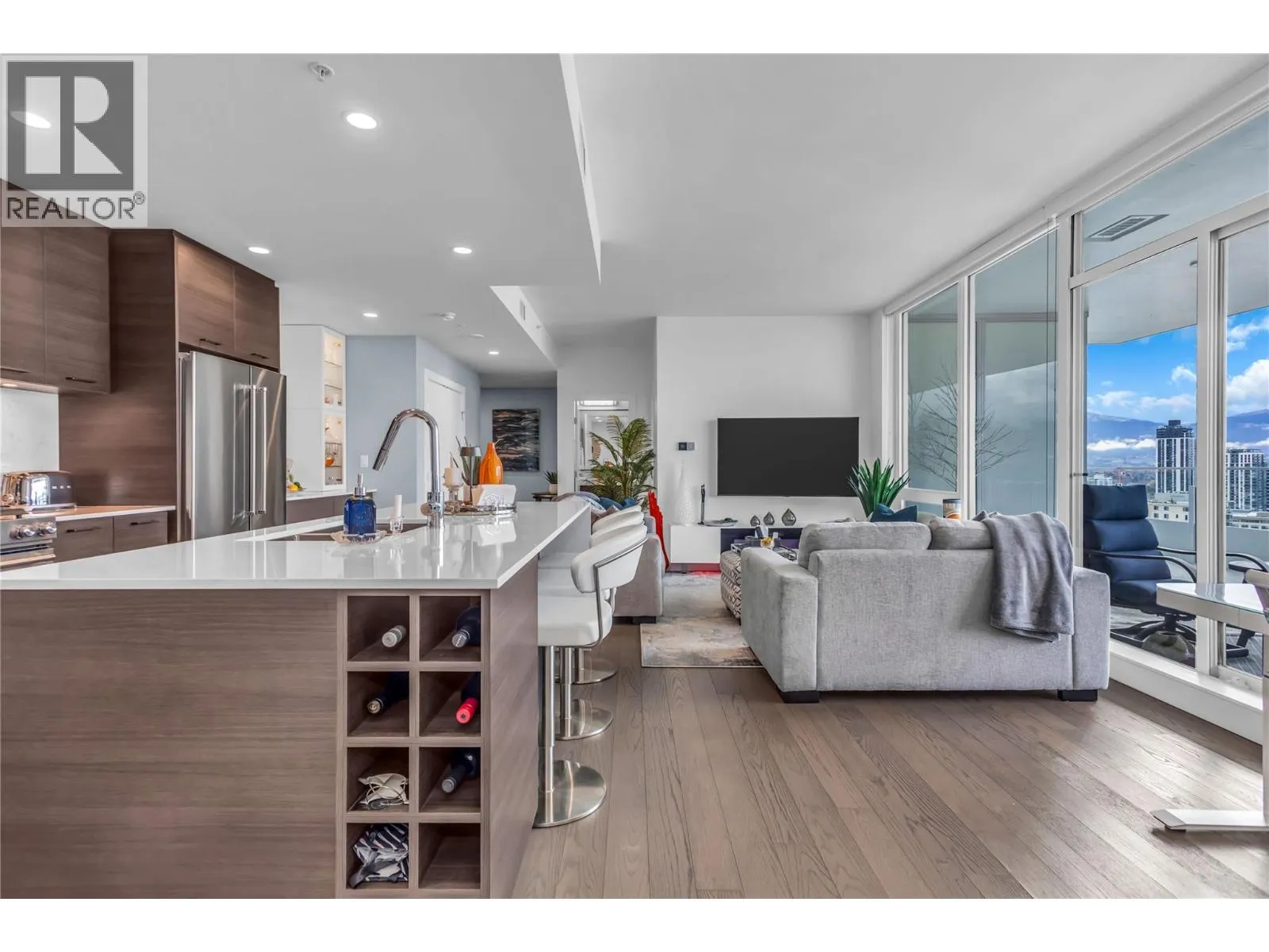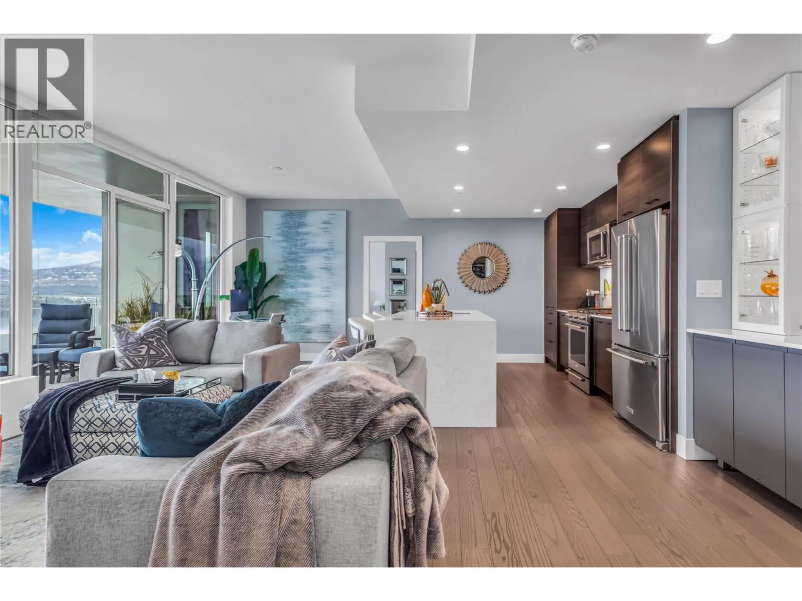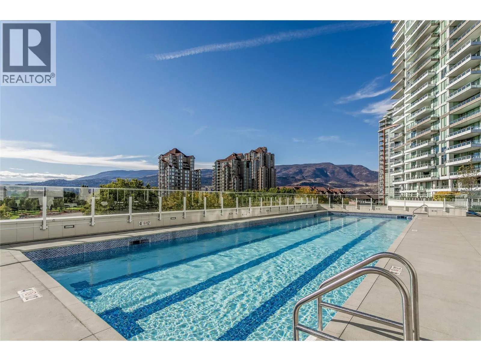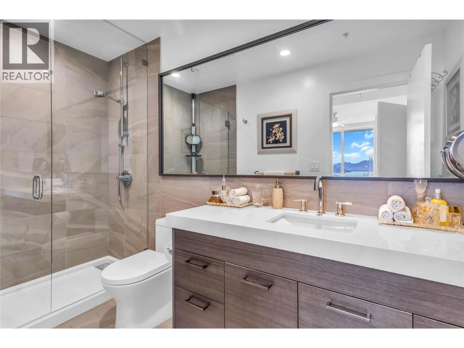 Not your average One Water Street apartment! UNOBSTRUCTED lake, city and mountain viewsfrom every window. HUGE deck. Lovingly maintained two bedroom unit with split floor plan. Bright island kitchen with built in coffee bar/ hutch, stainless steel appliances and loads of cabinets finished with pantry style pull out shelves. Spacious king accommodating primary suite with floor to ceiling windows, 5 piece ensuite and walk-in closet. Beautifully finished throughout. The 20th floor offers a view that is not so high you can't enjoy the view but high enough to be above any obstructions. One Water Street offers a 1.3-acre oasis of resort-style amenities. Residents enjoy access to two outdoor pools, inviting lounge areas with fire pits, a state-of-the-art fitness center with a yoga studio, an entertainment space, a business center, a pickleball court, and guest suites. The building's prime location places residents within easy reach of on-site restaurants and coffee shops, and within walking distance of the beach, the lake, downtown Kelowna, and the yacht club. To enhance convenience, the residence includes a dedicated parking stall and storage locker. This One Water Street condo is more than a home; it's a lifestyle, offering unparalleled views and a wealth of amenities in a prime location. (id:27476)