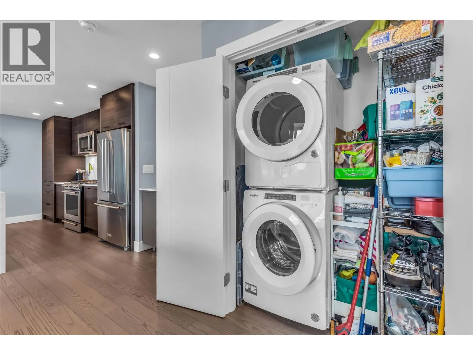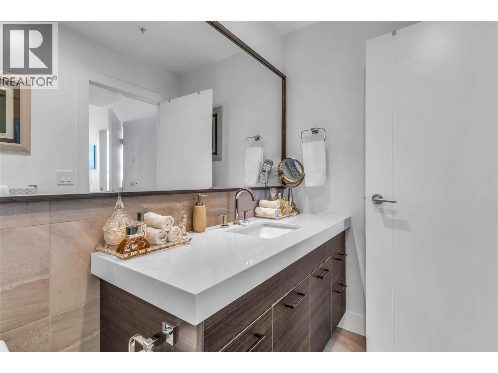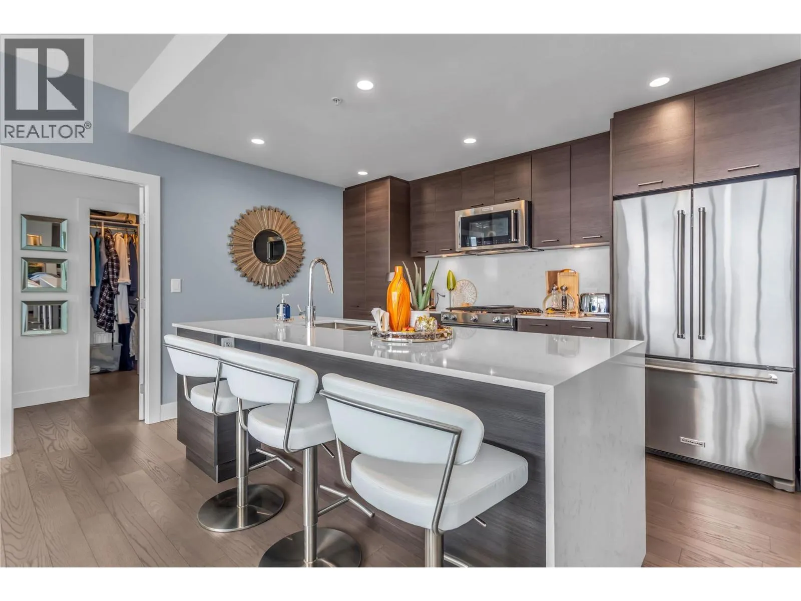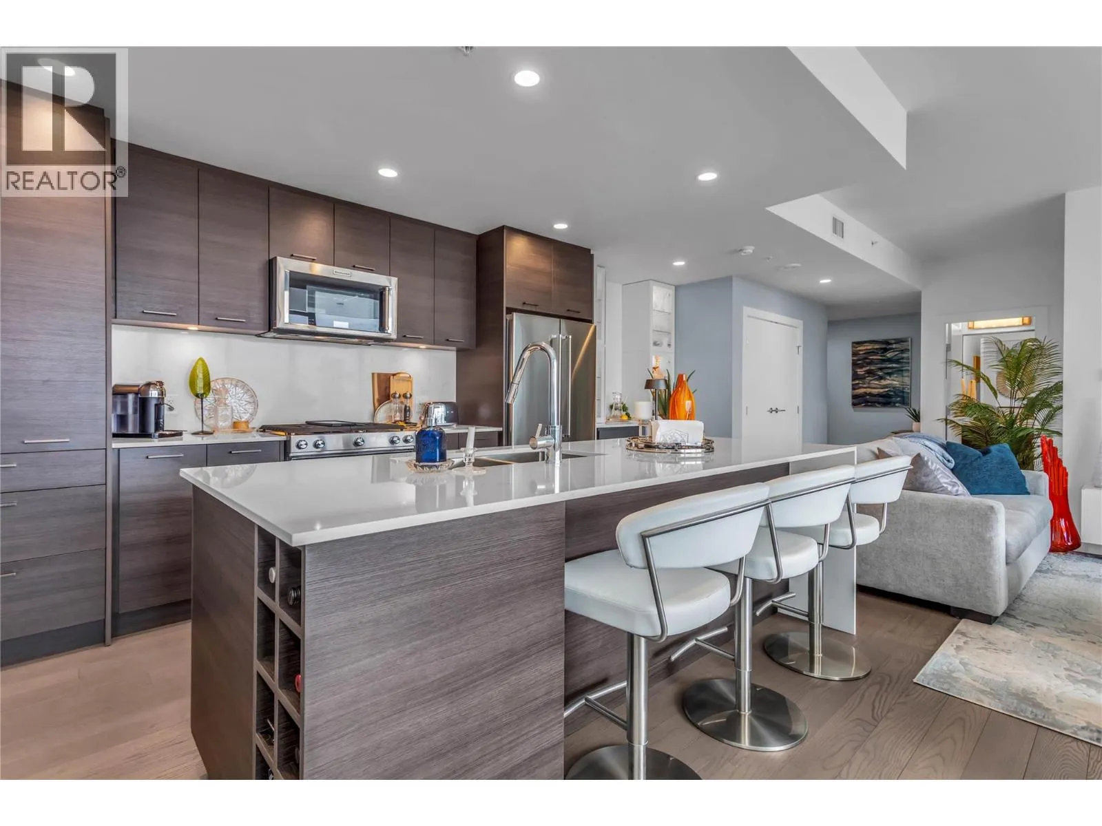 Not your average One Water Street apartment! UNOBSTRUCTED lake, city and mountain viewsfrom every window. HUGE deck. Lovingly maintained two bedroom unit with split floor plan. Bright island kitchen with built in coffee bar/ hutch, stainless steel appliances and loads of cabinets finished with pantry style pull out shelves. Spacious king accommodating primary suite with floor to ceiling windows, 5 piece ensuite and walk-in closet. Beautifully finished throughout. The 20th floor offers a view that is not so high you can't enjoy the view but high enough to be above any obstructions. One Water Street offers a 1.3-acre oasis of resort-style amenities. Residents enjoy access to two outdoor pools, inviting lounge areas with fire pits, a state-of-the-art fitness center with a yoga studio, an entertainment space, a business center, a pickleball court, and guest suites. The building's prime location places residents within easy reach of on-site restaurants and coffee shops, and within walking distance of the beach, the lake, downtown Kelowna, and the yacht club. To enhance convenience, the residence includes a dedicated parking stall and storage locker. This One Water Street condo is more than a home; it's a lifestyle, offering unparalleled views and a wealth of amenities in a prime location. (id:27476)