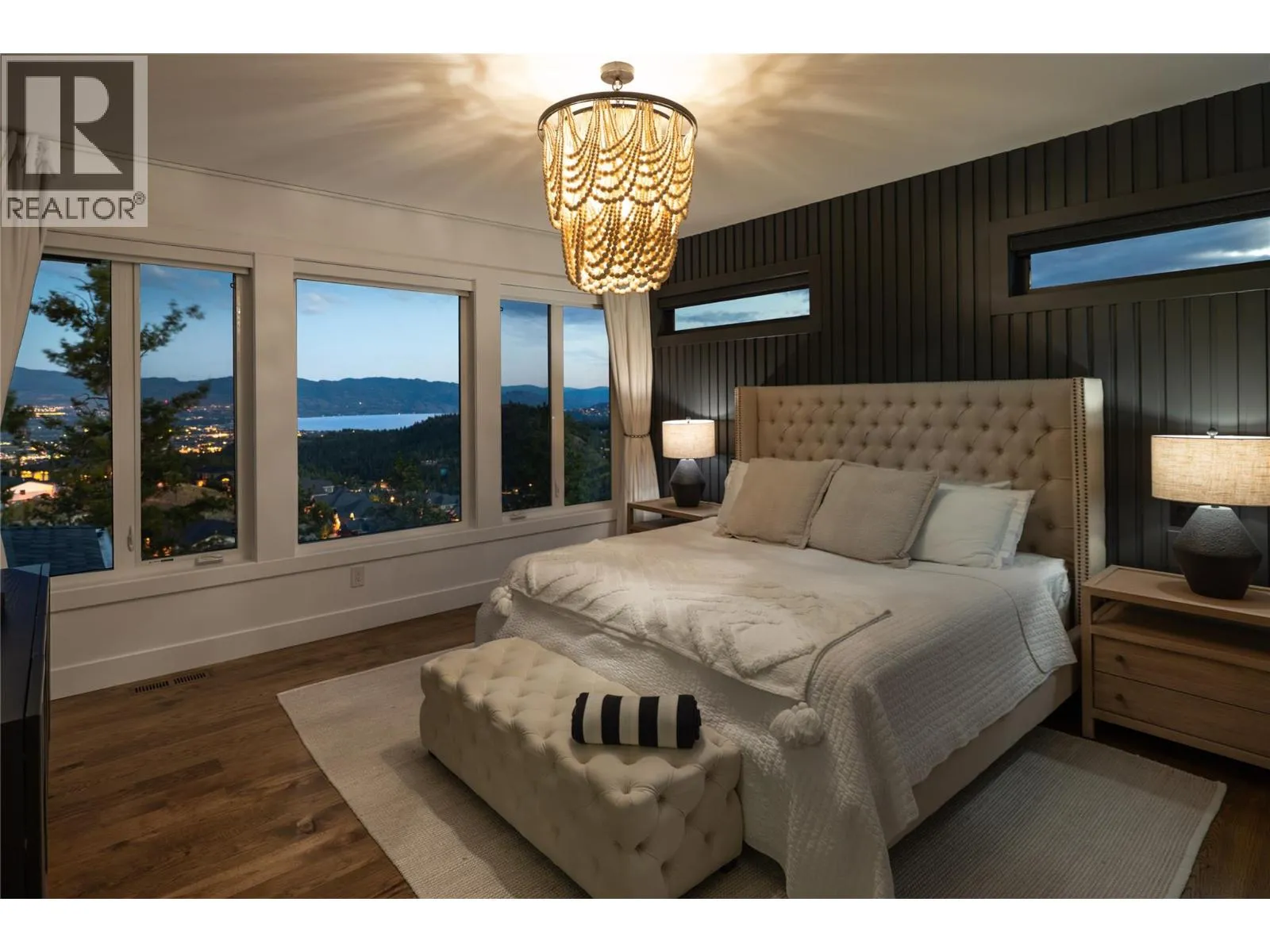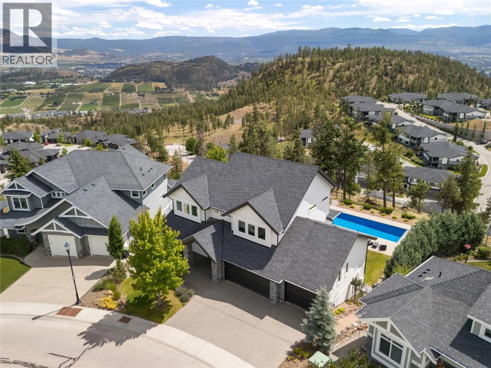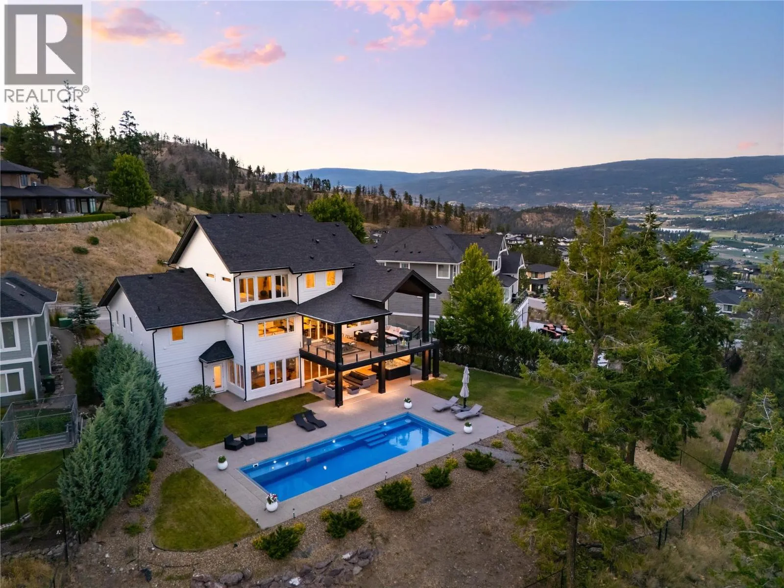Completely renovated from top to bottom, this breathtaking residence embodies refined living in WildenâKelownaâs most coveted enclave. The striking modern exterior with crisp white & black accents makes a bold statement, setting the stage for the exceptional design inside. Expansive windows frame captivating lake & mountain views, while soaring ceilings & a stunning floor-to-ceiling fireplace create a grand yet inviting atmosphere. The designer kitchen is a showpiece, featuring a massive Dekton island, 6-burner Thermador range, butlerâs pantry, beverage centre & seamless flow to the covered deckâideal for entertaining. Upstairs, the primary suite is a private sanctuary with sweeping views & an ensuite that rivals a luxury spa, complete with heated floors & a double rain shower. Two additional bedrooms & a full bath complete the upper floor. The lower level offers ultimate versatility with engineered hardwood: an elegant family lounge, custom wine cellar, gym space, guest bedroom & a bathroom with direct access to the outdoor retreat. Step outside to the saltwater pool with auto cover, hot tub & multiple lounging areasâsurrounded by protected green space for unparalleled privacy. Notable features include real hardwood throughout the rest of the home, a 3-zone furnace, 240V EV-ready 3-car garage, electric window coverings, UV-filtering windows & solid 8ft doors. A true legacy homeâwhere sophisticated design meets everyday comfort in an irreplaceable setting. (id:27476)