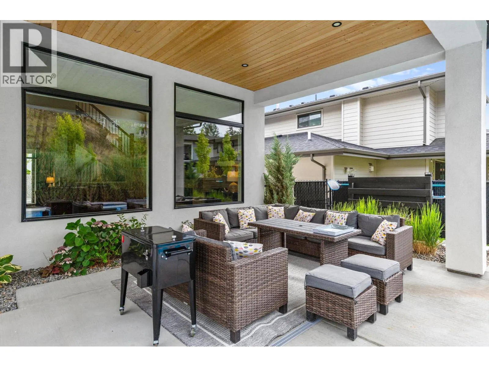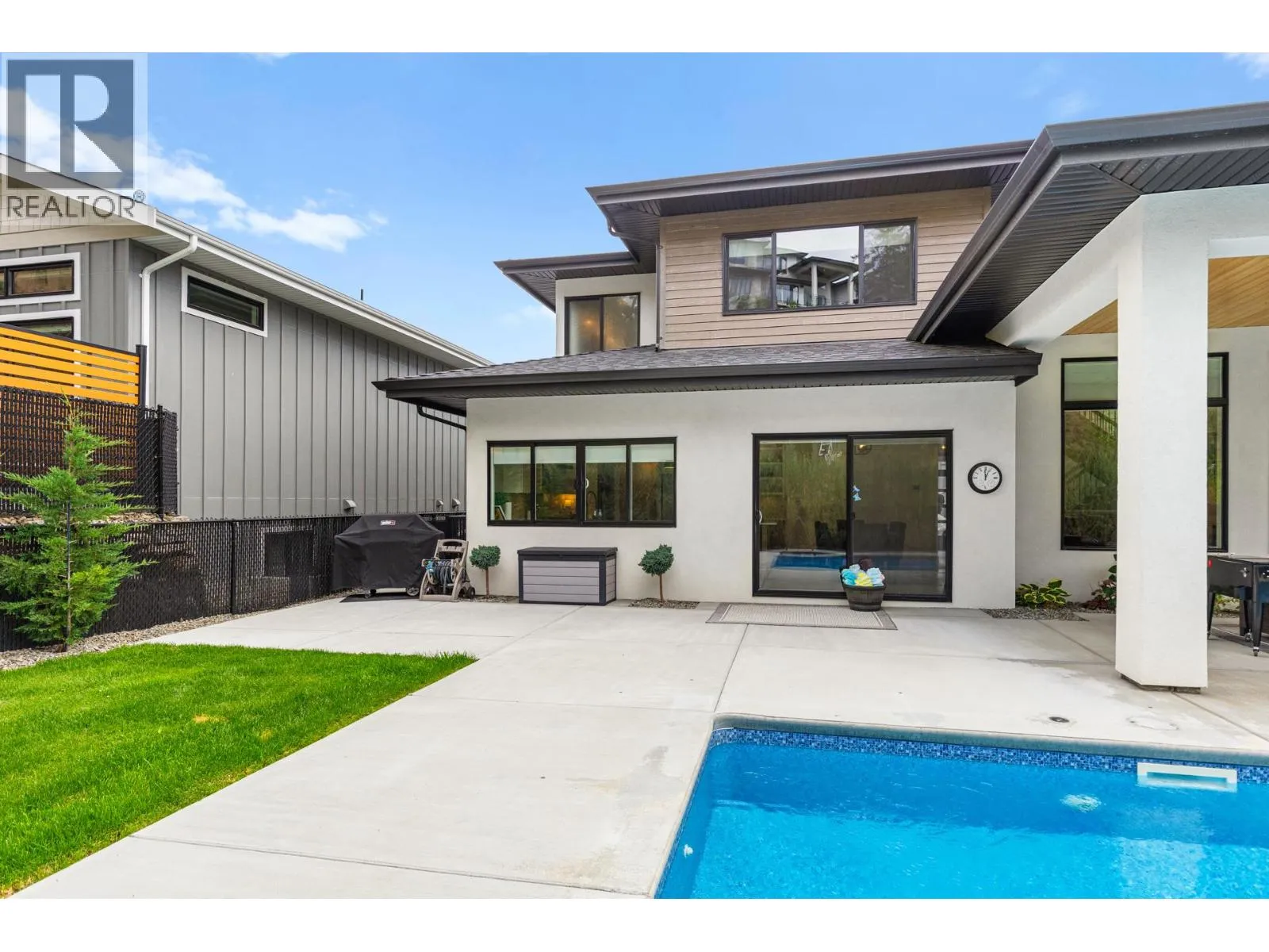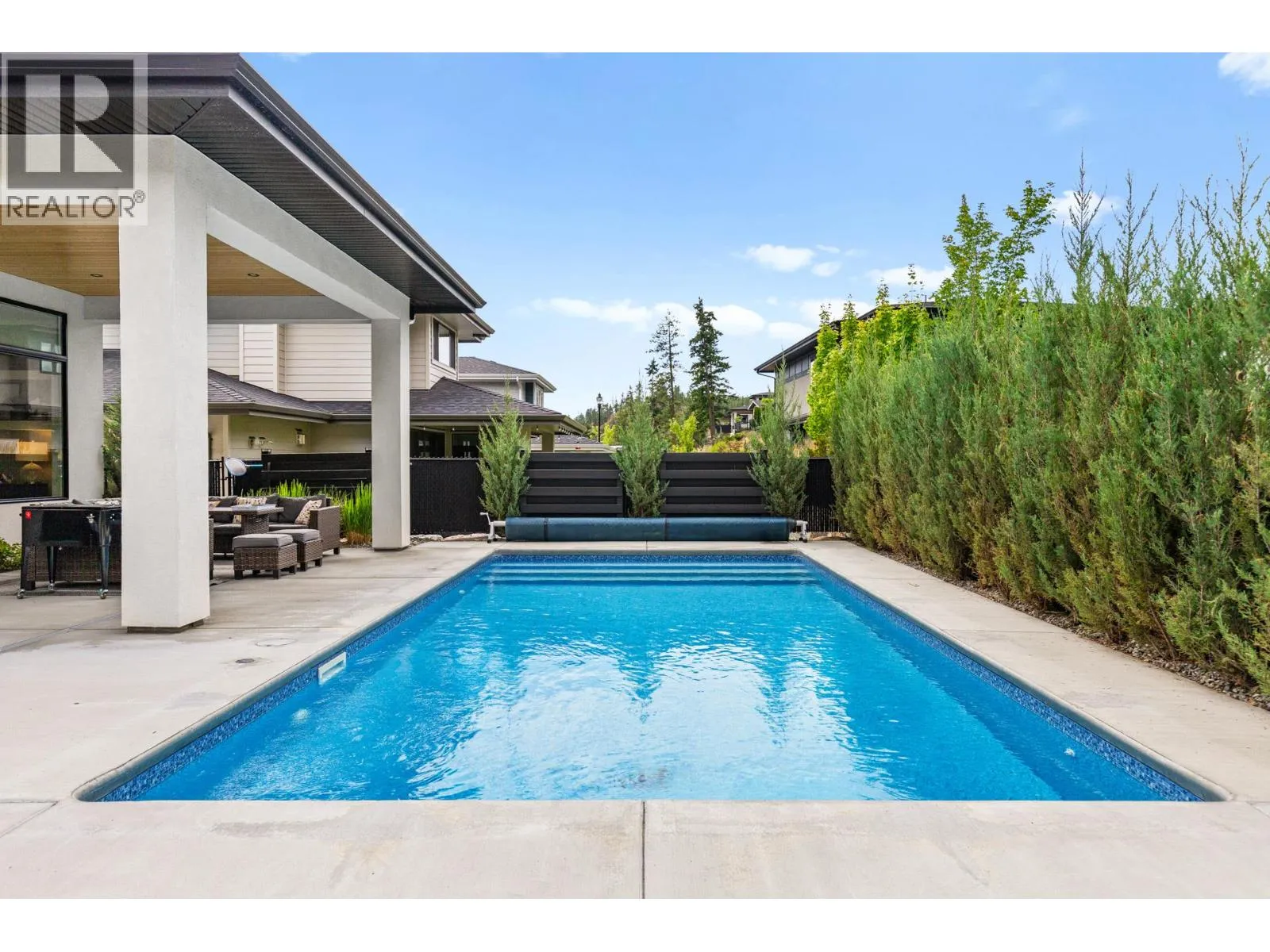 Gorgeous 5-bedroom plus den, 4-bathroom home, with a sparkling in-ground swimming pool - perfectly situated in one of Kelownaâs most coveted communities. Step inside and experience a functional open-concept layout that effortlessly connects every living space. The inviting living room is highlighted by a custom gas fireplace and soaring vaulted ceilings, creating an airy and elegant atmosphere. The bright and spacious kitchen is a chef's delight, boasting a gas cooktop, double wall oven, beverage fridge, and a convenient walk-in pantry. You'll enjoy direct access to the backyard oasis with an incredible outdoor living space featuring a 14'x28' salt water pool, a lush grass area, and a large covered patio - ideal for entertaining, family fun or simply unwinding under the Okanagan sun. The main floor also includes a versatile den/office, powder room along with a dedicated laundry room/mud room for added convenience. Upstairs, you'll find three generously sized bedrooms, including the luxurious primary bedroom with a spacious walk-in closet and a spa-inspired 5-piece ensuite, complete with heated tile flooring. The fully finished basement expands your living space even further, offering a large rec room with a gas fireplace, two additional bedrooms and a full bathroom make this level ideal for accommodating guests or a growing family. Located in the highly sought-after Wilden area, you'll enjoy unparalleled access to nature, with endless hiking and biking trails just steps away. (id:27476)