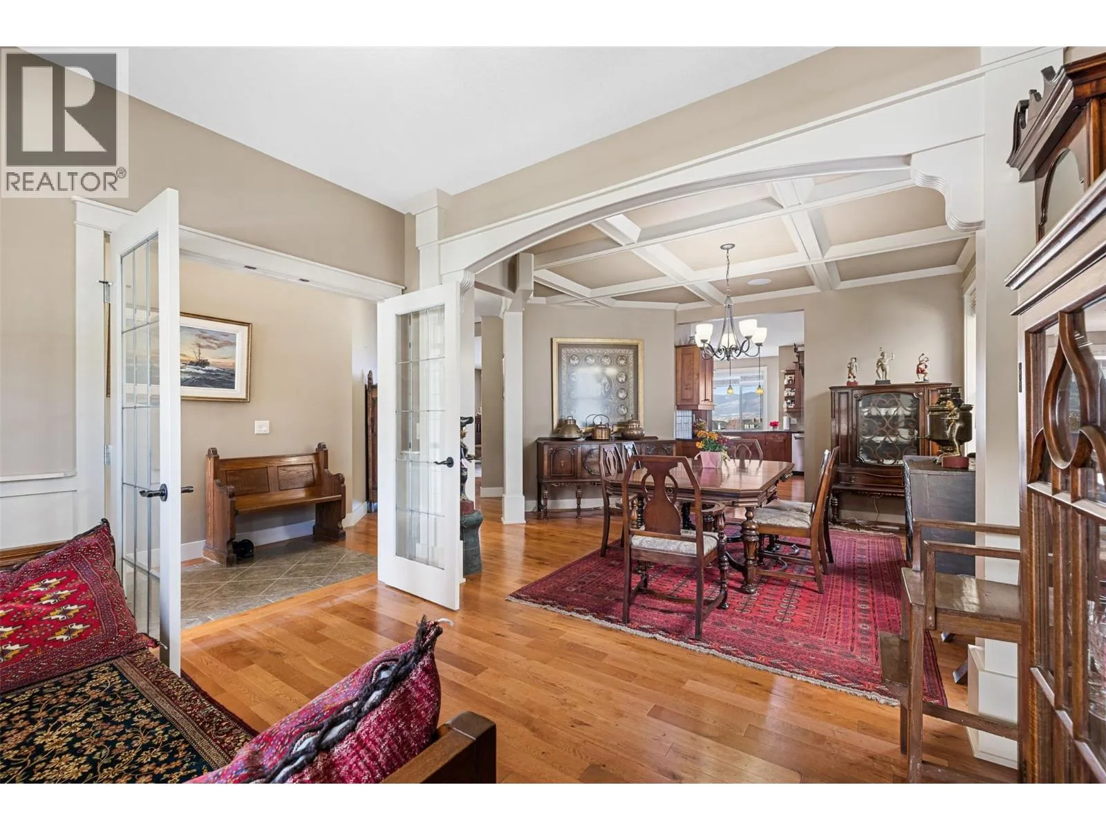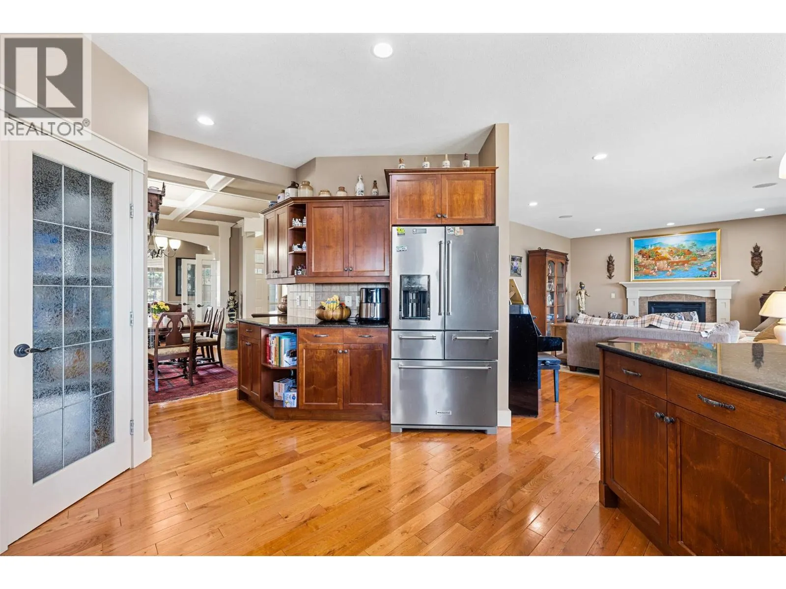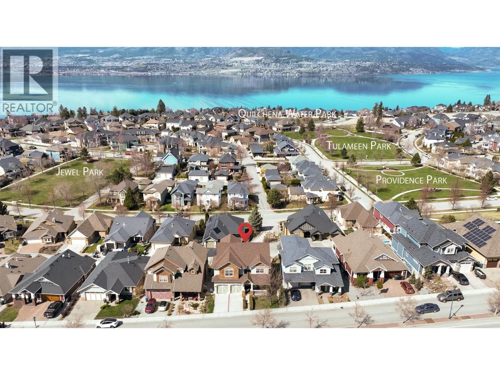 Truly spectacular Kettle Valley former show home by Kentland Homes, 4 Beds 4 Baths, over 3900 sq ft, nestled in the award-winning neighborhood. Showcasing custom craftsmanship throughout, this residence boasts tray ceilings, elegant arched doorways, and sweeping panoramic views. The bright, open-concept kitchen features granite countertops, stainless steel appliances, gas rang & eating nook that flows seamlessly into the family roomâperfect for everyday living. A separate formal dining and living room/office offer elegant spaces and functionality. Upstairs, the luxurious primary suite includes private deck with view, spa-like ensuite, and generous closets. Two additional bedrooms each feature large walk-in closets. The walk-out lower level offers large rec/games room, fourth bedroom, full bathroom, and access to private patio with hot tub overlooking lush landscaping and park. With features like a surround sound system, security system, cold room storage, and double garage. Short walk to Chute Lake Elementary, Kettle Valley shopping center & picturesque parks, tennis court, Quilchena water park, and scenic hiking trails. Revel in the joys of family living in this award-winning community! Home has suite potential, also has potential to add 1-2 bedrooms. (id:27476)