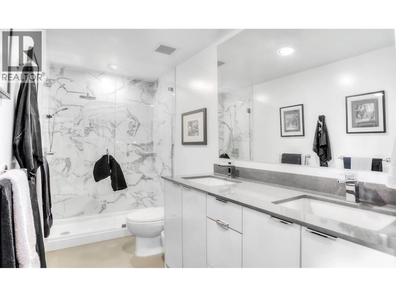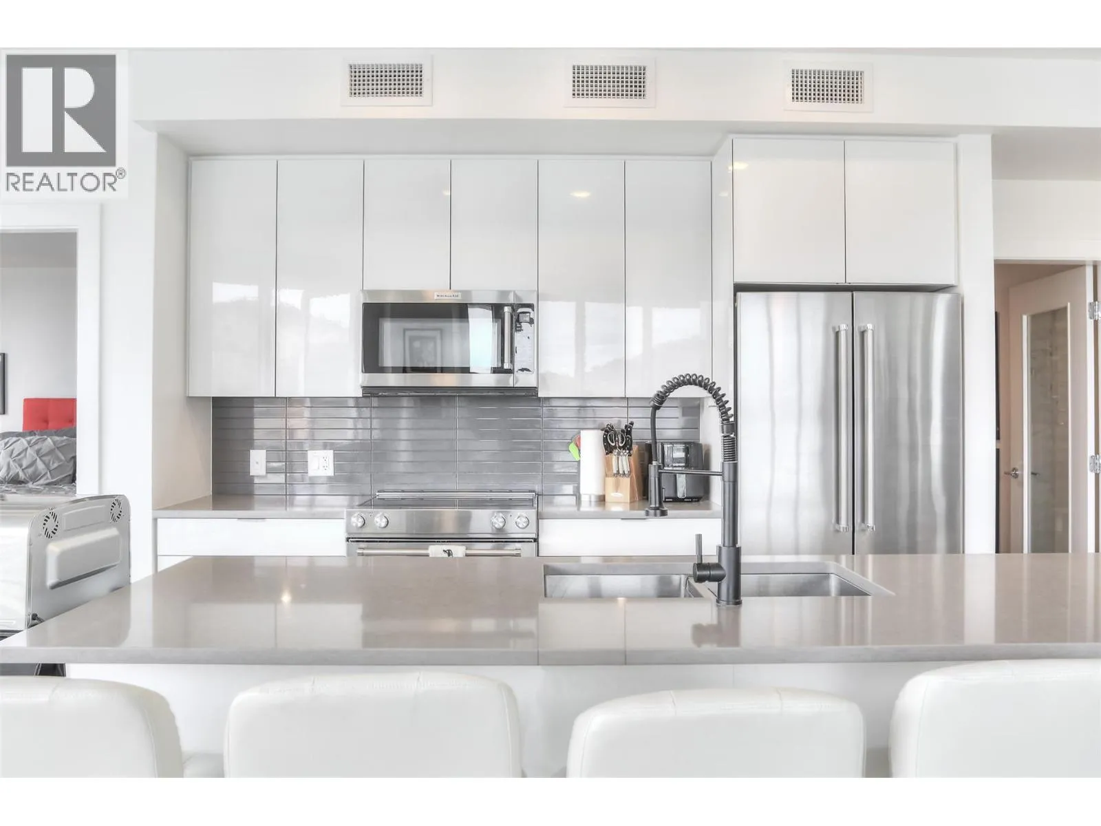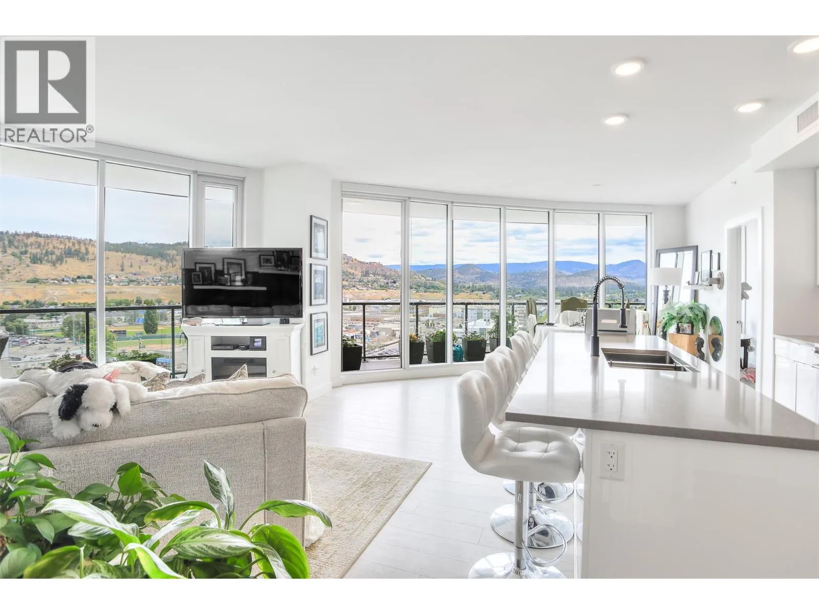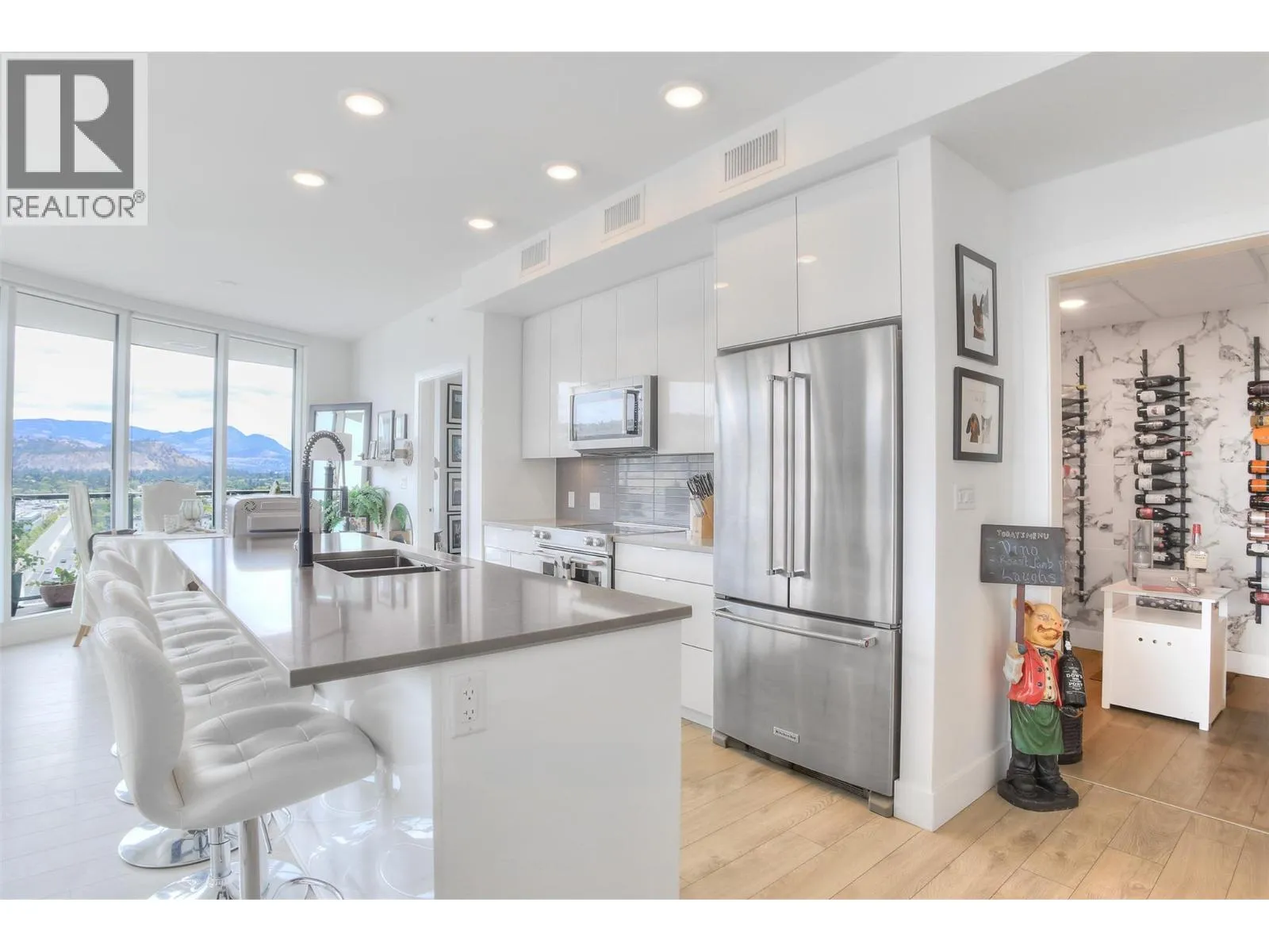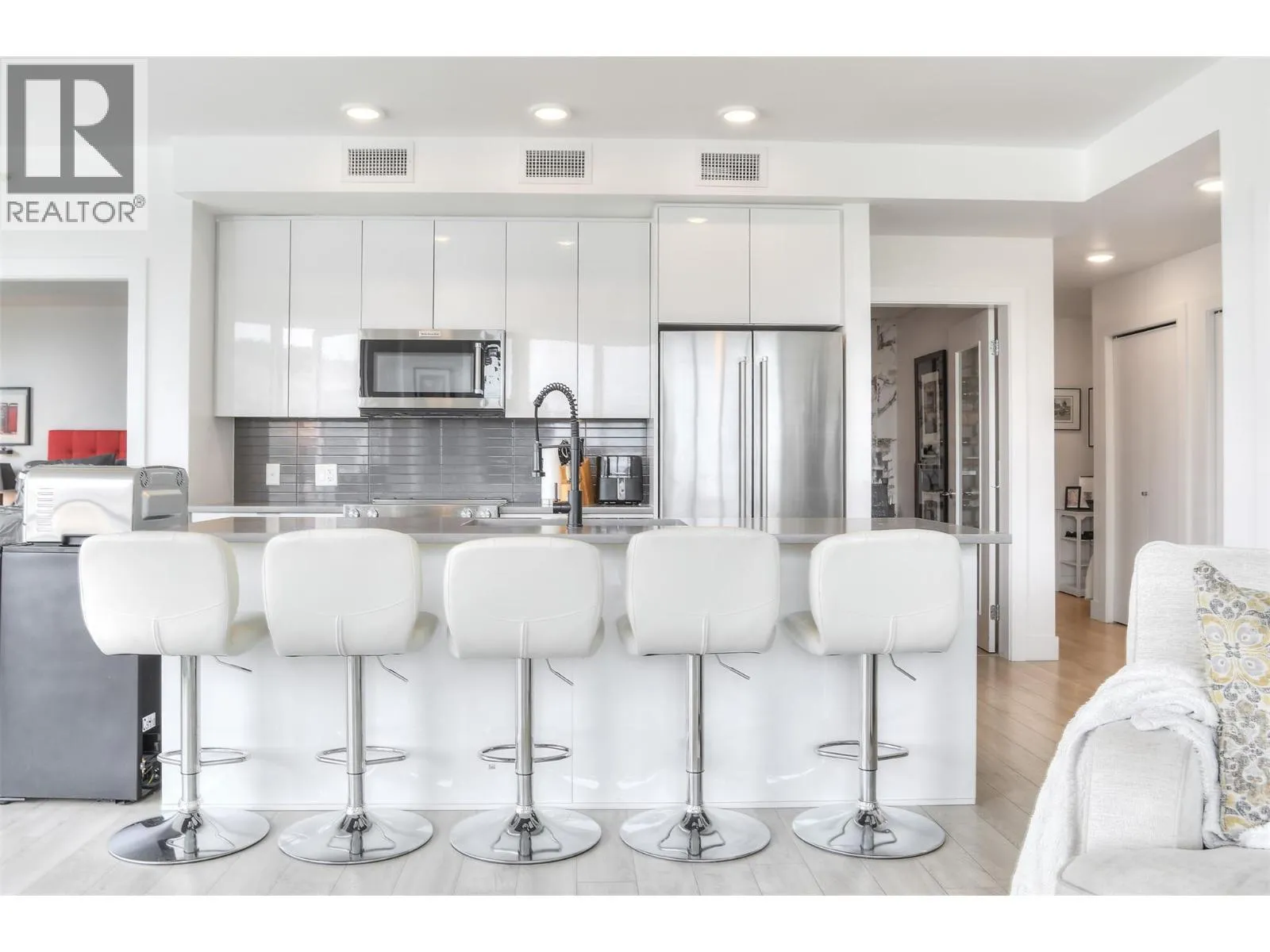 This stunning sub-penthouse offers luxury living with panoramic lake and city views from an expansive 65-foot deck and floor-to-ceiling windows throughout. Featuring two spacious bedrooms plus a den, currently transformed into a custom wine room, and two and a half bathrooms, this home combines style and functionality. The bright, open-concept layout is ideal for entertaining, highlighted by a gourmet kitchen with an oversized island that seats six, premium appliances, and high-end finishes. Both bedrooms include full ensuites with upgraded showers, while the primary suite features a generous walk-in closet. Professionally designed upgrades elevate the interior with a sleek, modern aesthetic. Located just steps from the beach, restaurants, and boutique shops, this sub-penthouse offers the perfect blend of luxury and lifestyle. A rare opportunity to own an exceptional residence with unparalleled views in one of the areaâs most desirable locations. (id:27476)