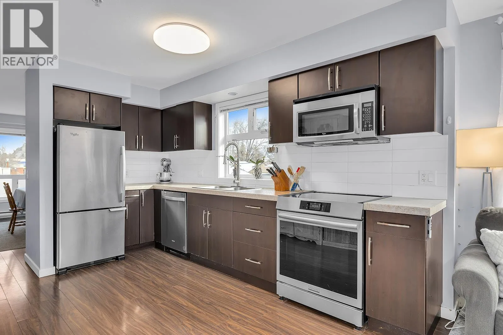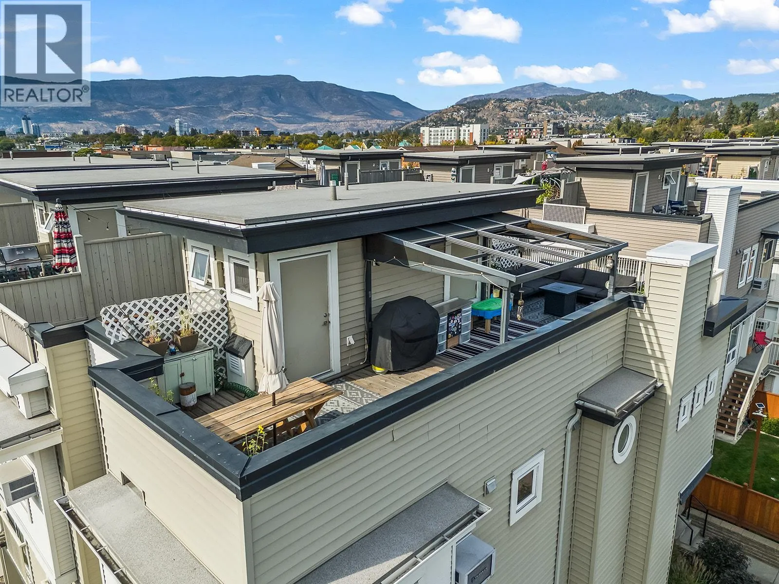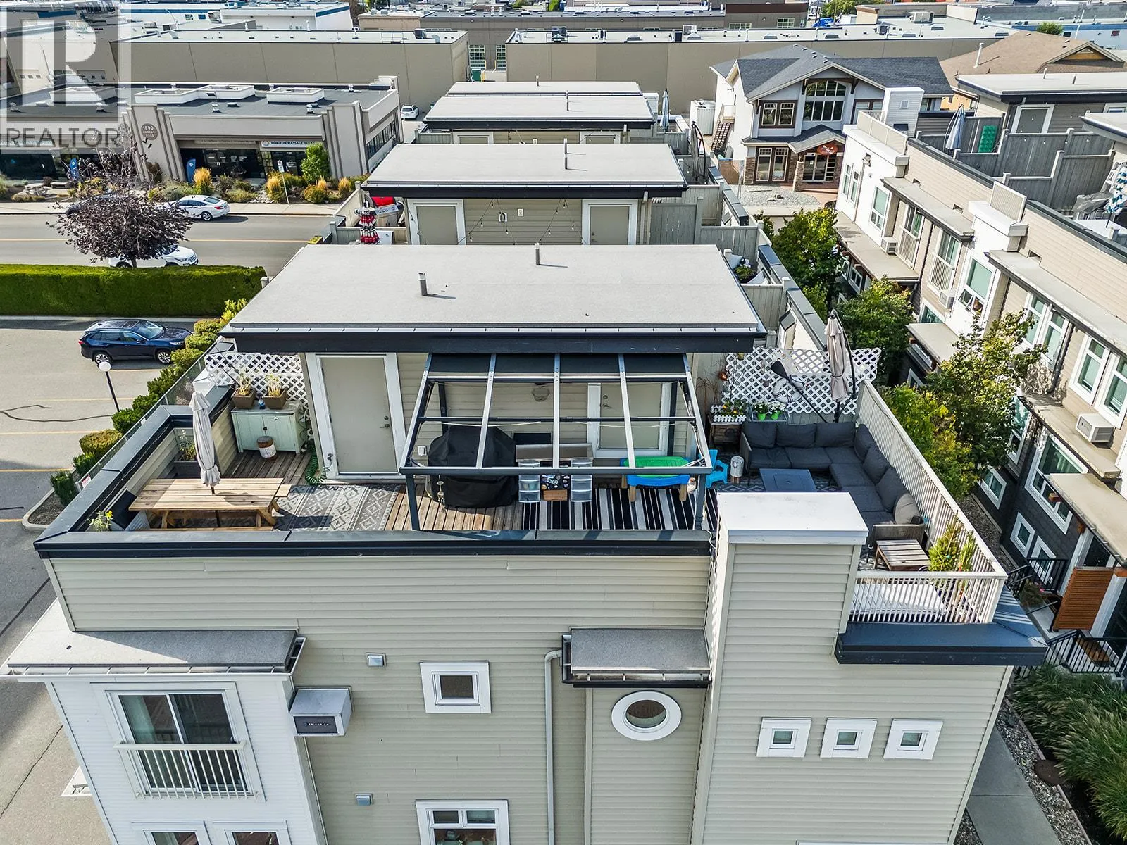 Welcome to The Dwell, a sought-after brownstone-inspired townhome development offering modern living in a prime location! This private end-unit boasts 2 bedrooms, 2 bathrooms, a large and private 434 square foot rooftop patio and a spacious 364 sq. ft. tandem garage with extra storage. Enjoy Kelownaâs best amenities at your doorstepâOrchard Park Mall, shops, medical offices, Parkinson Rec Centre, and Mission Creek Park are all within walking distance. Love cycling? This central location is perfect for commuting on two wheels! Many transit stops are also within close proximity. Step outside to your rooftop patio with it's 360 degree view, perfect for soaking up the sun or hosting BBQs under the covered gazebo. Plus, Barlee Park with it's playground and community garden are just around the corner. Pet lovers rejoiceâthis pet-friendly home allows two dogs (any size!), two cats, or one of each. Recent upgrades include a new dishwasher and stove with a transferable warranty. (id:27476)