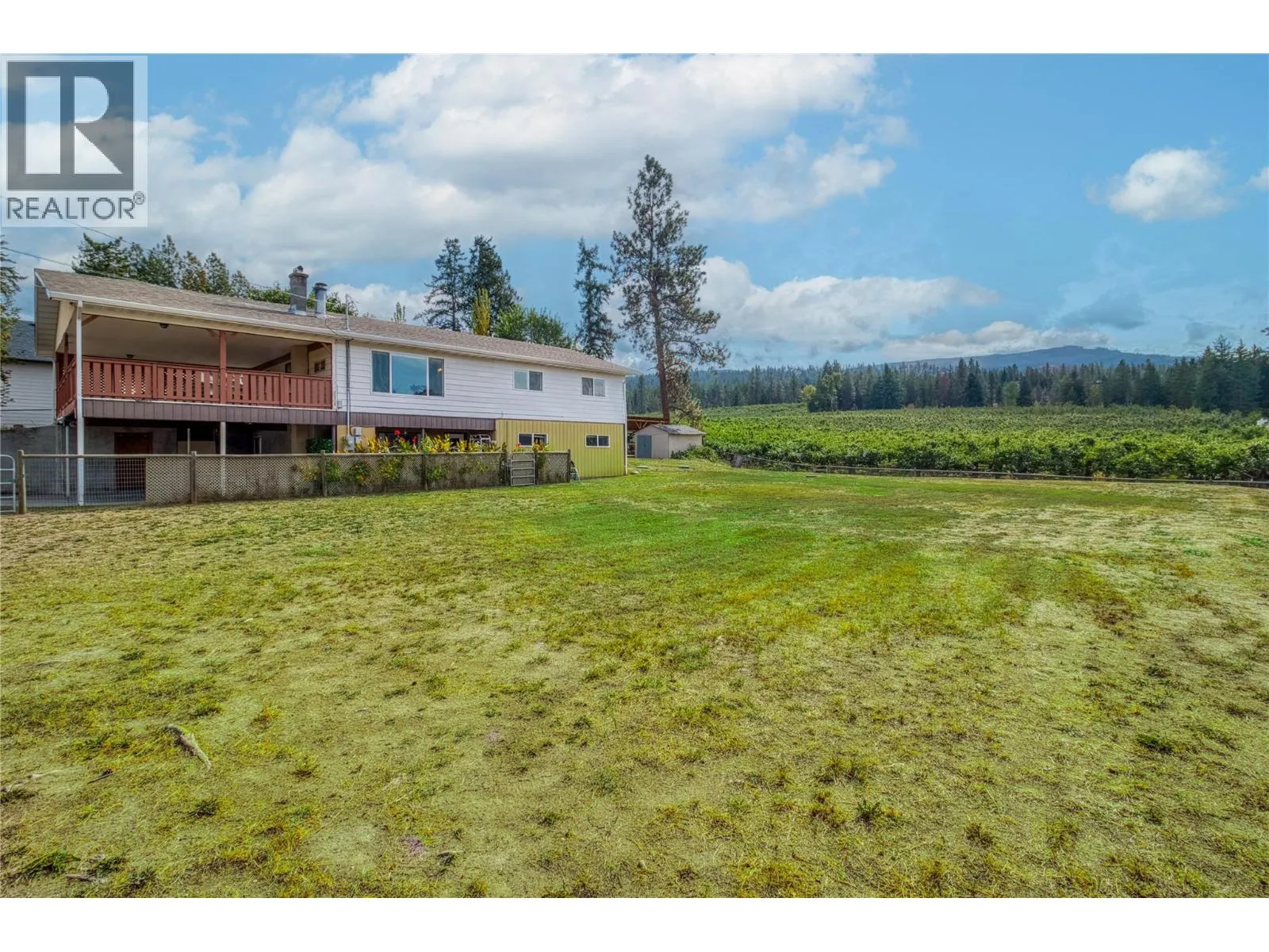 If you're tired of tiny yards and city noise, this quiet property is for you! Featuring a huge 0.63 acre fairly flat lot, a renovated two bedroom suite with an amazing tenant paying $1,492 PM, (not market related rent). This property was upgraded with an eye on practical (S.E. Kelowna) living, with plenty of storage space inside and out. The home's perfect location is close to nature, an elementary school and yet only 10 minutes from town. The large fenced yard is ideal for your kids and pets to romp. You can also build a big shop, garage or carriage house (City allows up to 964 Sq. Feet new build). Plenty of space to store your RV, boats, or other big toys (a full size farm gate provides easy access). If you like to garden, go crazy planting your vegetables and flowers. All big ticket items are done, including new certified septic system (spent $25,000 recently), roof, city water connection, plumbing, furnace, windows, AC, and electrical upgrades to name a few. Showcasing an oversize covered deck for BBQ's, a cozy fireplace and a generous sized kitchen, perfect for entertaining. Main level is unoccupied, while the last two years upstairs generated around $3000 PM rent. The potential to create a mortgage helper income is certainly here and makes this property a solid investment into your future! Measurements are from iGuide, if important please verify. Some photos include staging to show living space potential. (id:27476)