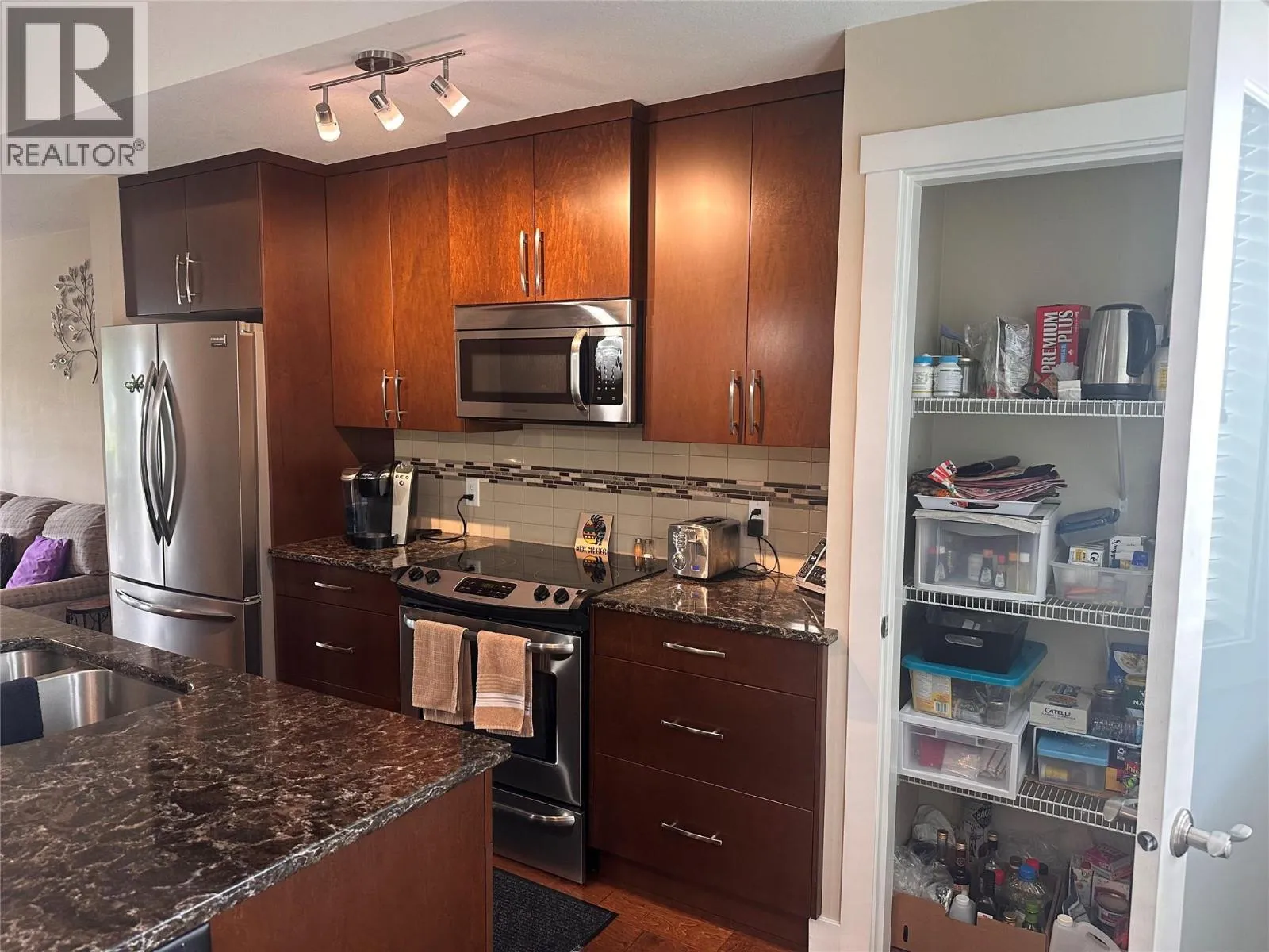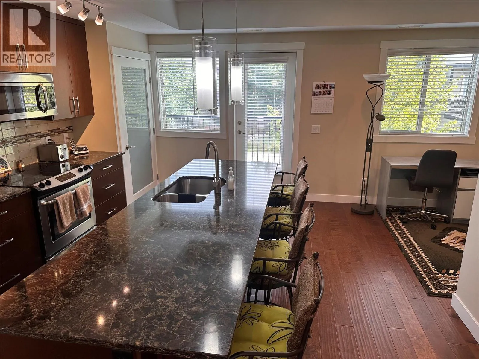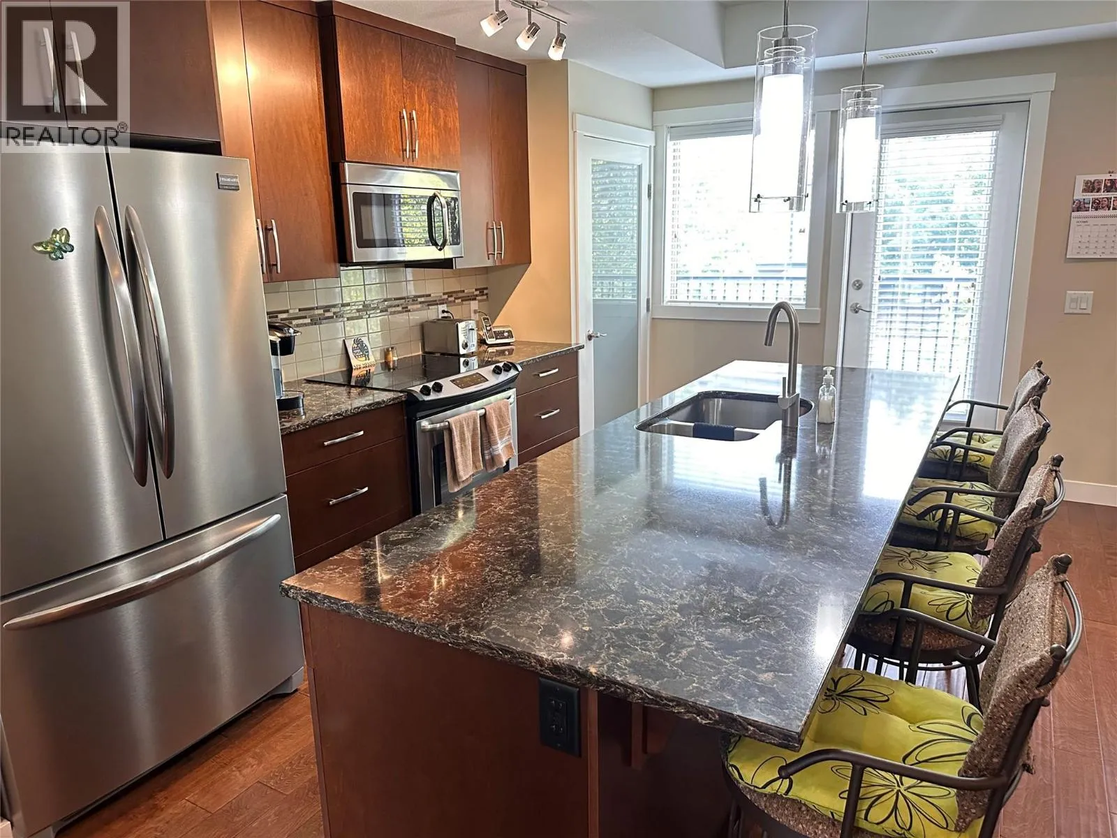 Incredible location - Kelowna's coveted Lower Mission - close to the best beaches, recreation, schools and shopping within a short walking distance to all. Built in 2015, this well maintained, 3 bed/ 2.5 bath home on the west side of Green Square is move-in ready with room for the whole family. Beautiful quartz countertops, hand-scraped finish hardwood floors and a built-in pantry closet will be found in the open concept kitchen. There are two decks in this well-appointed home: one facing an open playfield to the west and a spacious area off the kitchen to the east. The master bedroom includes a walk-in closet and ensuite with beautiful and large glass-enclosed shower. Number 37 is a three-storey townhome and includes a 2-car garage (tandem) which many owners use as a flex space for storage when only one vehicle is parked. There is also room for a workbench and more. The home comes with a radon mitigation system for peace of mind. Ample visitor parking is right across from this home and the complex has a community gym. Perfect for downsizing or first-time home buyers. Measurements taken from scan app. (id:27476)