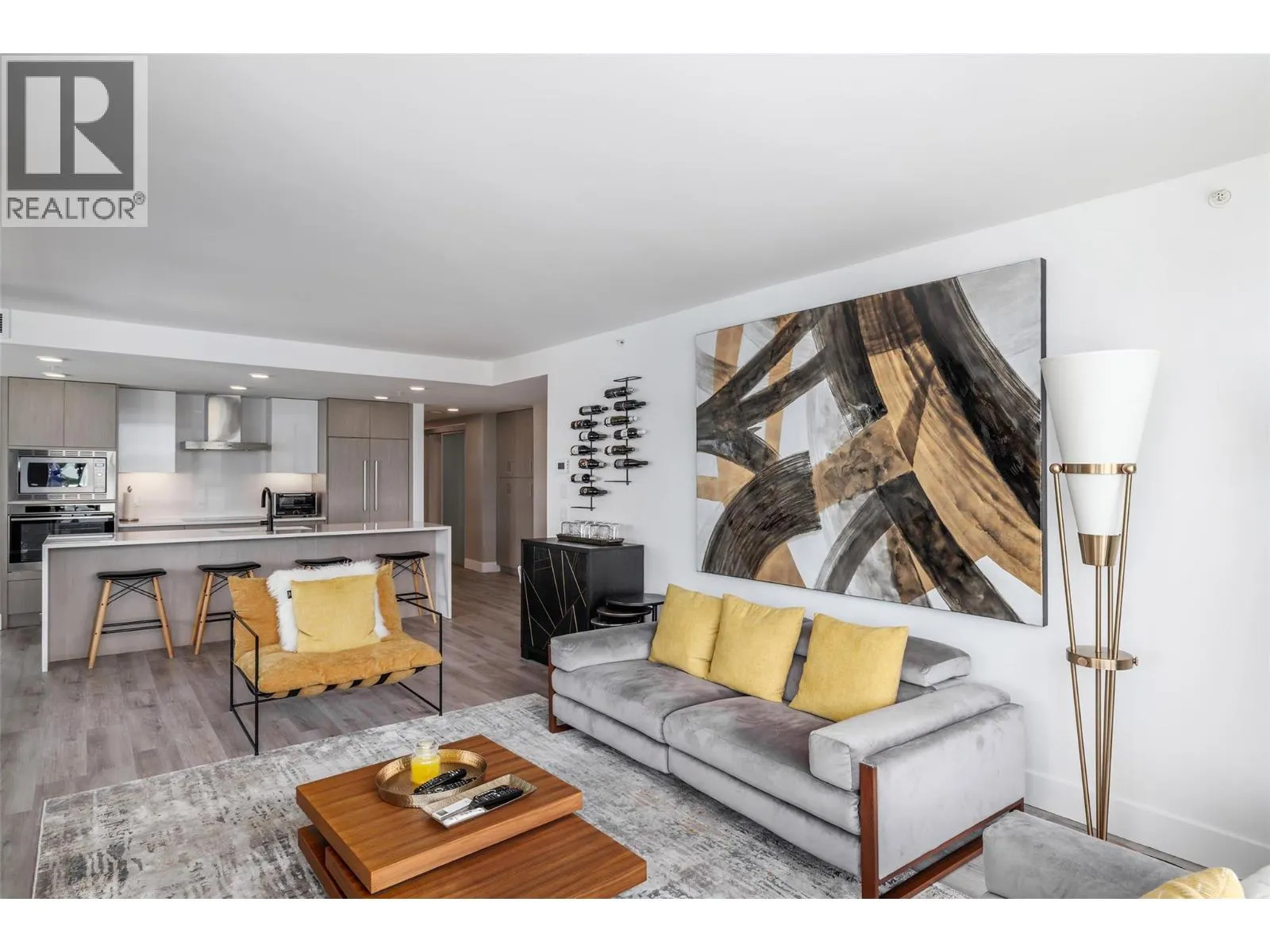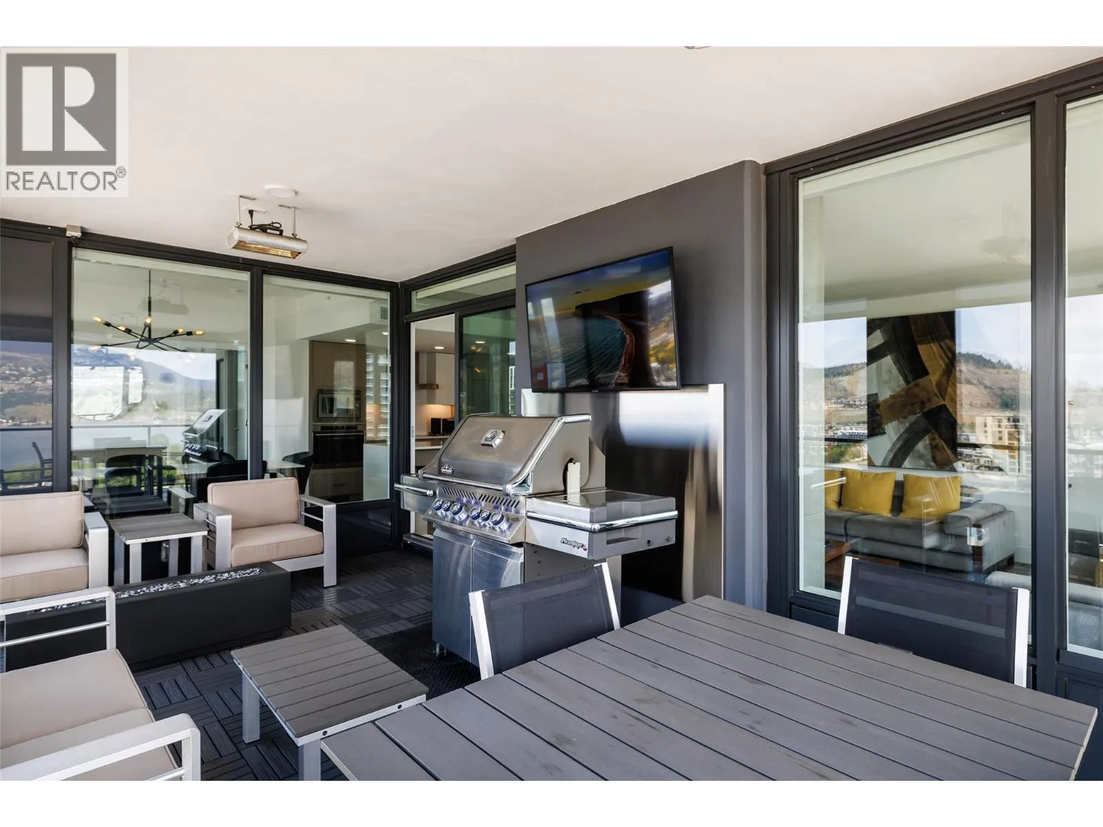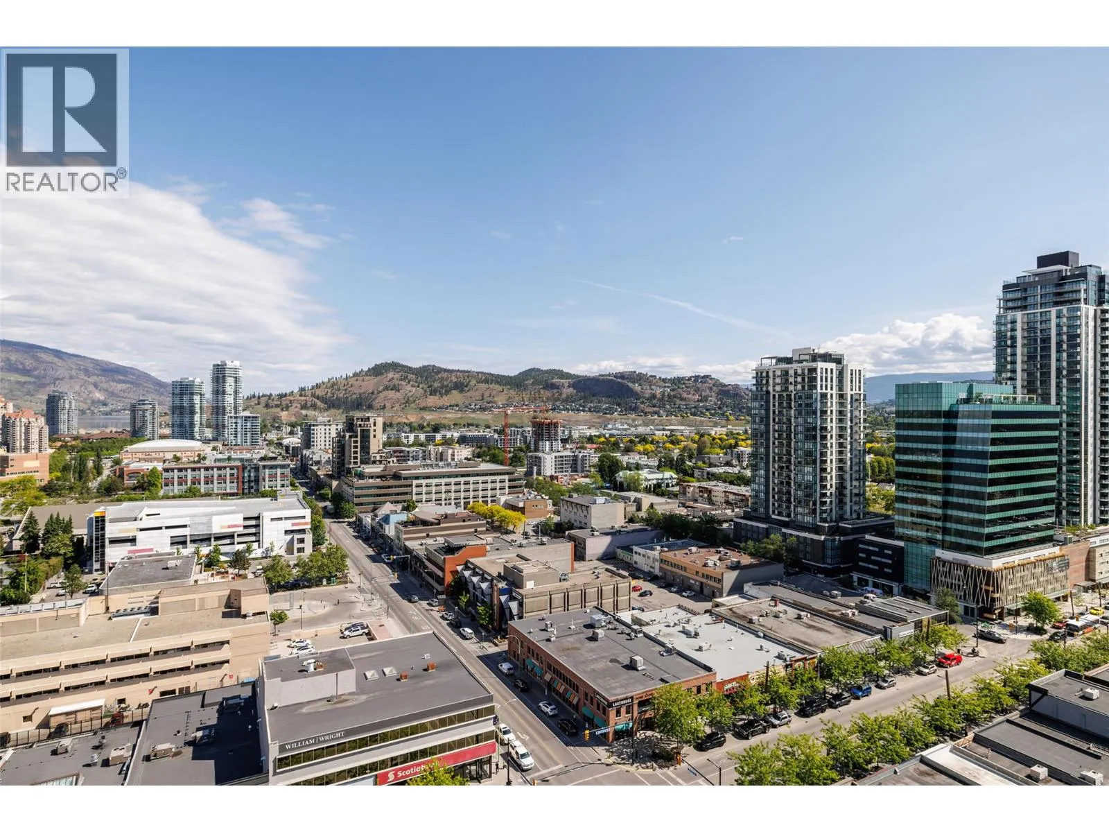Discover Sub-Penthouse luxury in the heart of downtown Kelowna. Welcome to ELLA, where elevated design meets urban convenience. Perched on the 20th floor, this 2 BEDROOM +DEN, 2.5 BATH. Sub-penthouse showcases breathtaking lake, city, and valley views. Thoughtfully upgraded with over $140K in custom features including Control4 automation, remote powered blinds, and a stunning floor-to-ceiling fireplace, this residence offers the best in modern living. The chefâs kitchen boasts integrated appliances, quartz countertops, a Marvel beverage fridge, and an expansive island with seating for 4. Entertain effortlessly in the open-concept living and dining areas, or take the party outdoors on your 19'x11' covered terrace, complete with infrared heaters, privacy screens, a wall mounted tv and panoramic vista views. The spacious primary suite features a walk-through closet and a spa-inspired 5-piece ensuite with heated floors, a soaker tub, and a glass enclosed shower. A private den with built-in desk, a second bedroom with full ensuite bath, and premium extras including 3 SIDE BY SIDE PARKING STALLS & 2 LOCKERS. This truly is the complete package. Prime location, located steps to Kelownaâs top dining, shops, Waterfront Park, and the marina. (id:27476)
