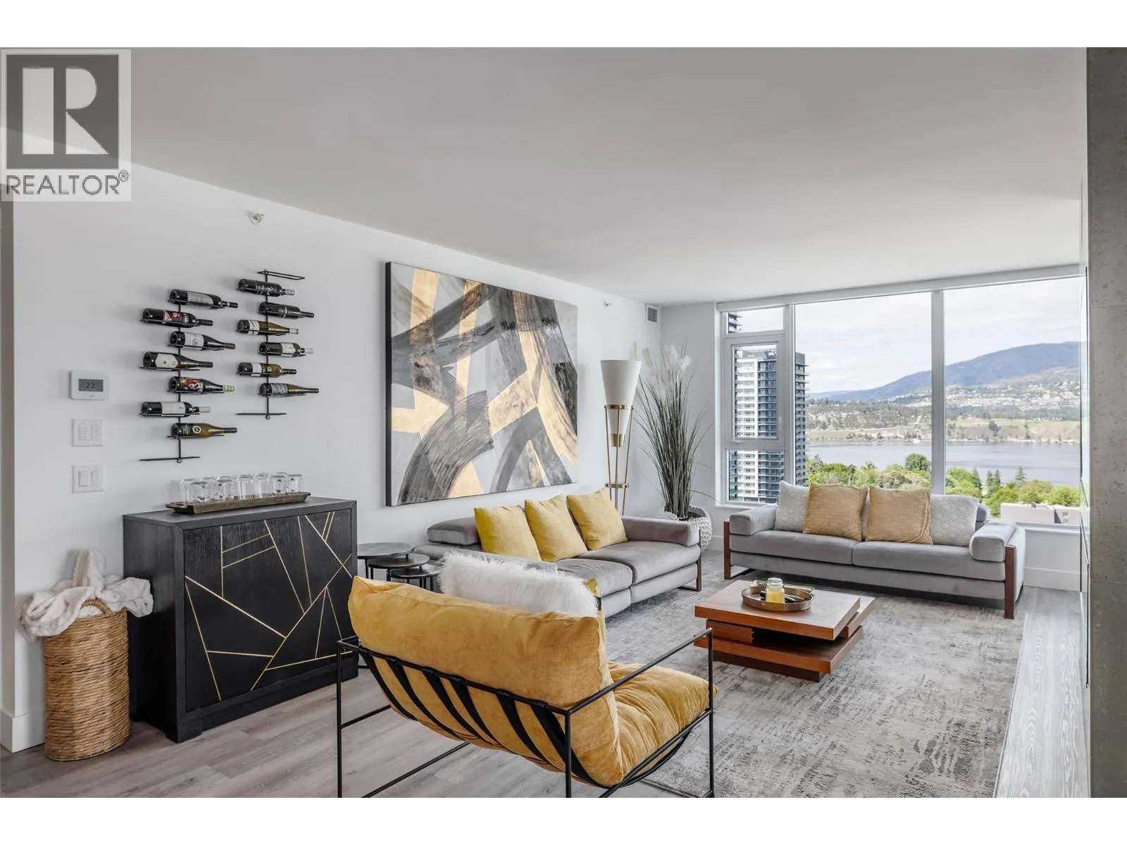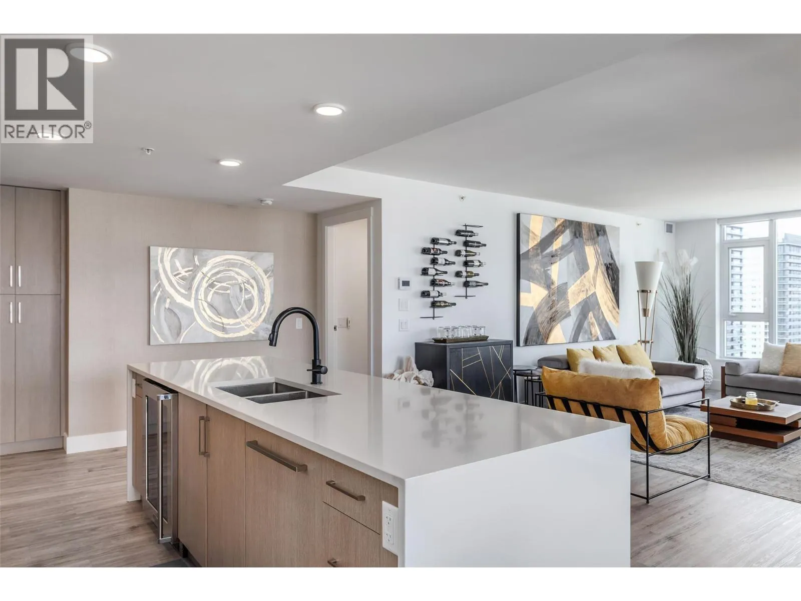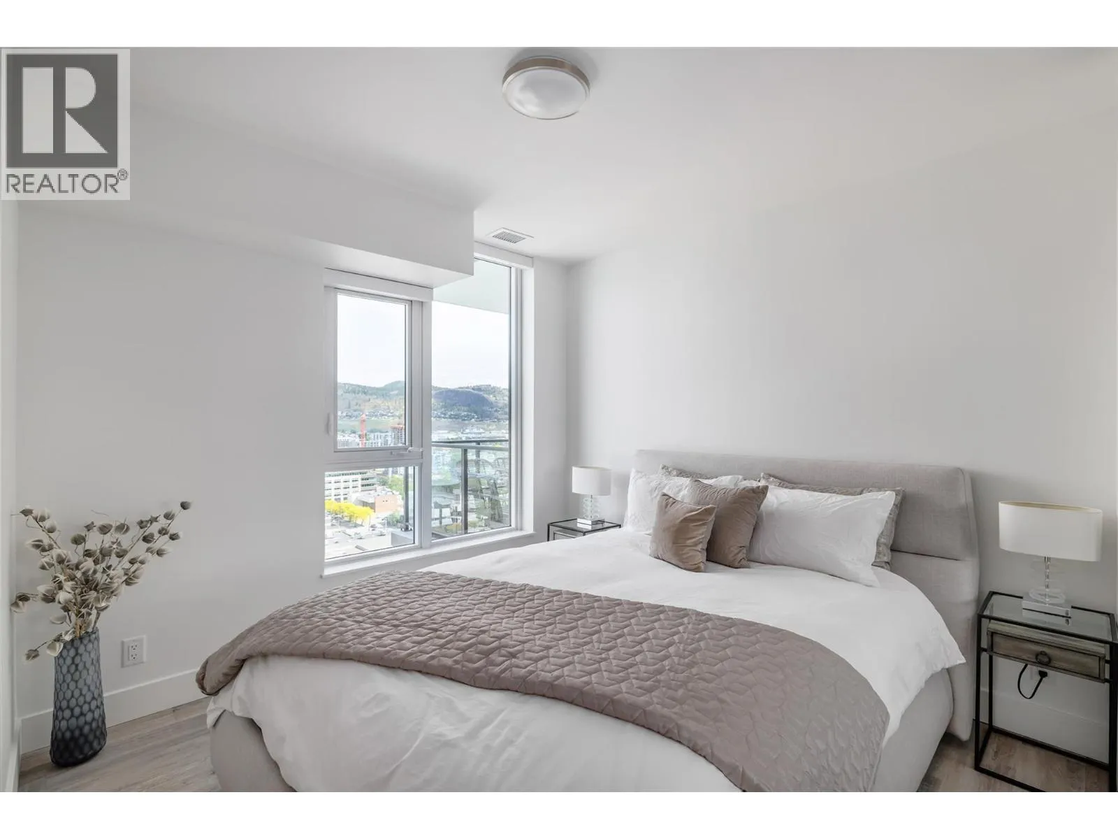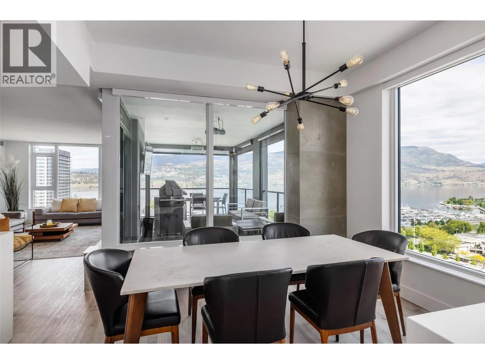Discover Sub-Penthouse luxury in the heart of downtown Kelowna. Welcome to ELLA, where elevated design meets urban convenience. Perched on the 20th floor, this 2 BEDROOM +DEN, 2.5 BATH. Sub-penthouse showcases breathtaking lake, city, and valley views. Thoughtfully upgraded with over $140K in custom features including Control4 automation, remote powered blinds, and a stunning floor-to-ceiling fireplace, this residence offers the best in modern living. The chefâs kitchen boasts integrated appliances, quartz countertops, a Marvel beverage fridge, and an expansive island with seating for 4. Entertain effortlessly in the open-concept living and dining areas, or take the party outdoors on your 19'x11' covered terrace, complete with infrared heaters, privacy screens, a wall mounted tv and panoramic vista views. The spacious primary suite features a walk-through closet and a spa-inspired 5-piece ensuite with heated floors, a soaker tub, and a glass enclosed shower. A private den with built-in desk, a second bedroom with full ensuite bath, and premium extras including 3 SIDE BY SIDE PARKING STALLS & 2 LOCKERS. This truly is the complete package. Prime location, located steps to Kelownaâs top dining, shops, Waterfront Park, and the marina. (id:27476)
